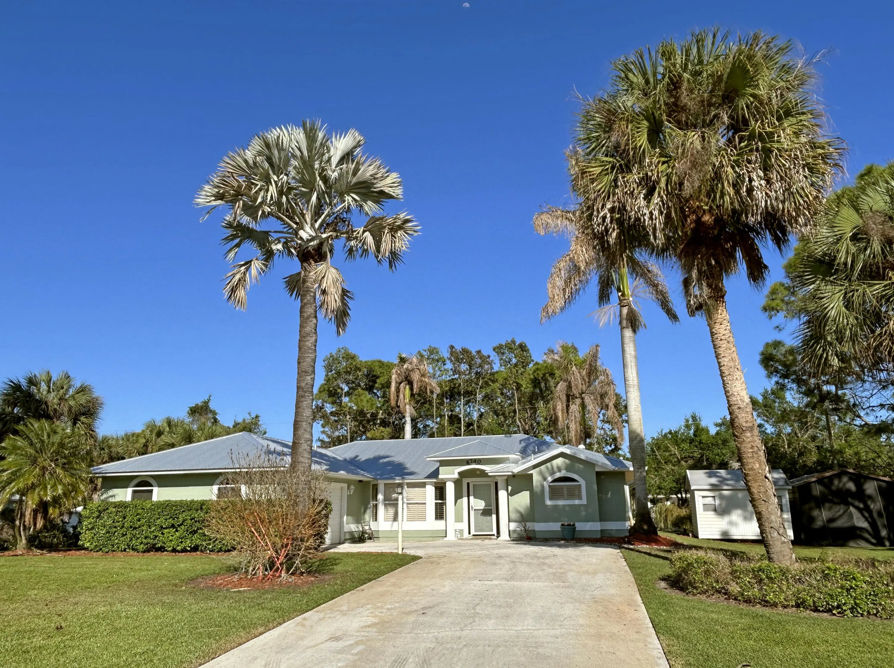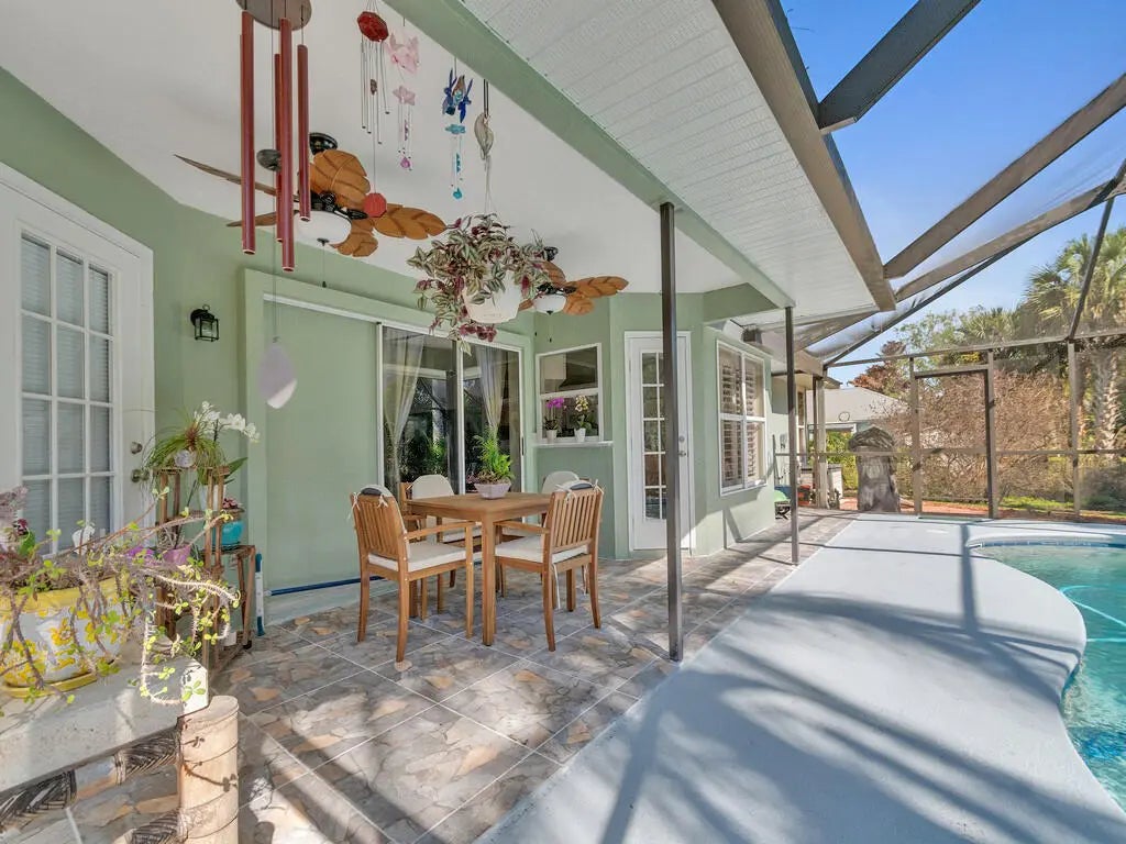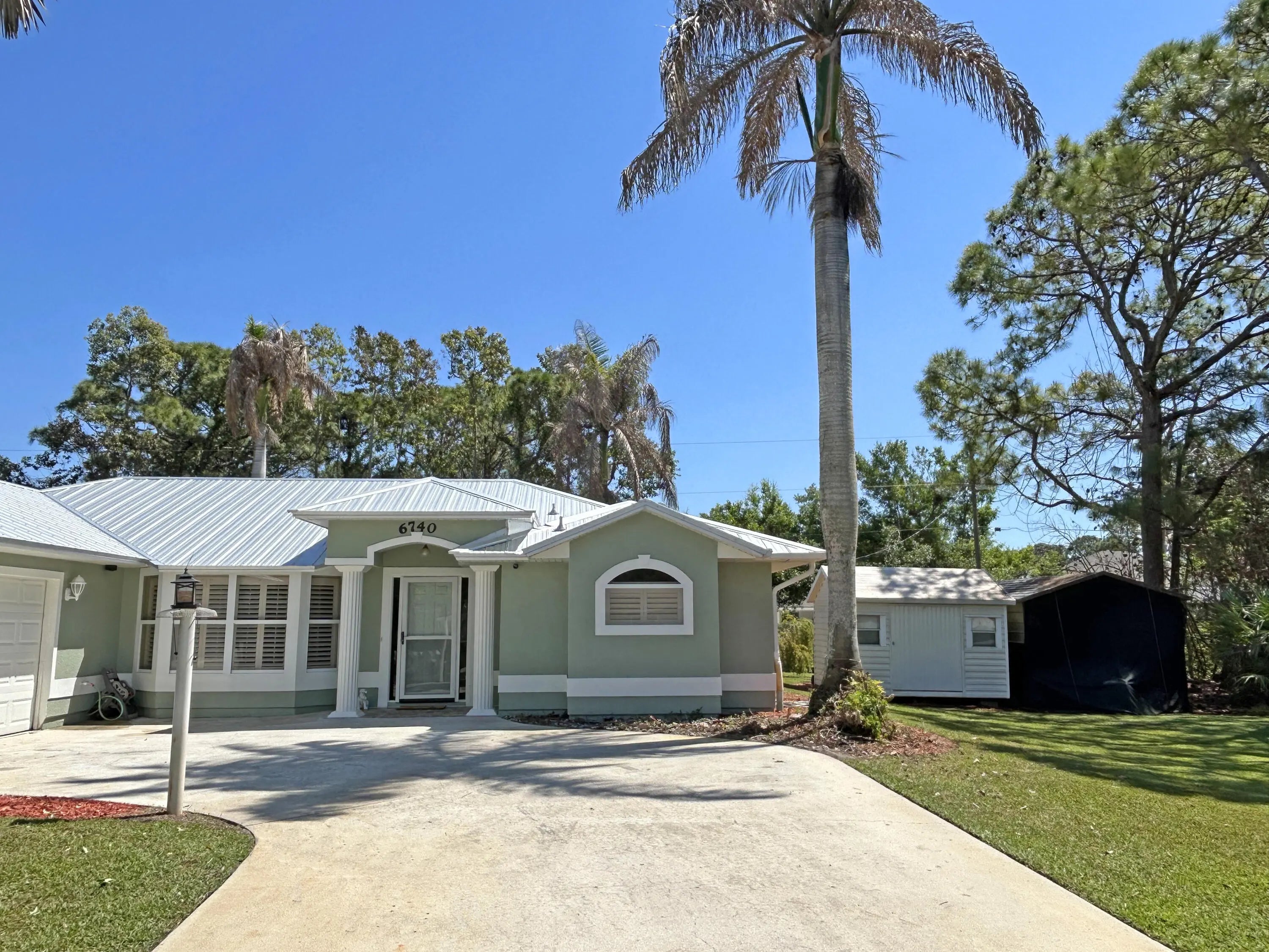Enjoy the country lifestyle in this 3bed/2bath pool home on 1/2 acre lot with lovely mature trees and palms! Highlights include new paint inside & out, nearly new (2023) metal roof, vaulted main areas, spacious side-entry garage with workshop area & exhaust fan! Split floor plan plus pool bath are perfect for guests. Kitchen offers plenty of cabinet storage plus pantry and 2nd closet! Ideal county water, well for irrigation, plus multiple storage options onsite for your boat, toys & equipment make this a highly desirable home option! Enjoy relaxing in the peaceful, screened pool area! No HOA! Please note: There is inside Laundry space. Original design had W/D inside and is probably plumbed inside wall.