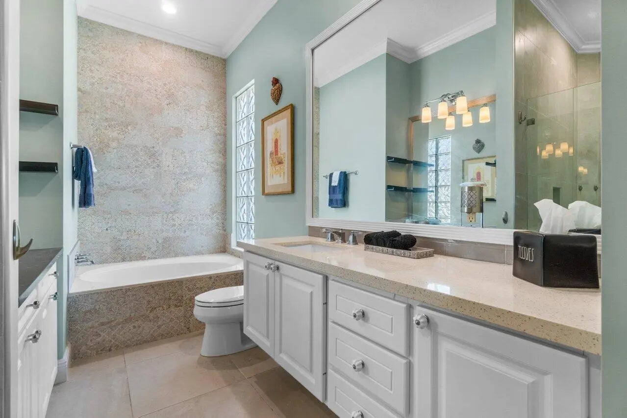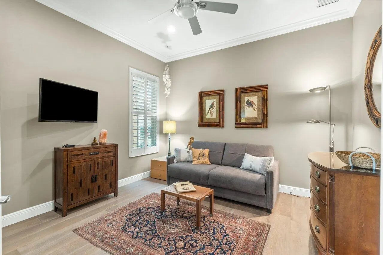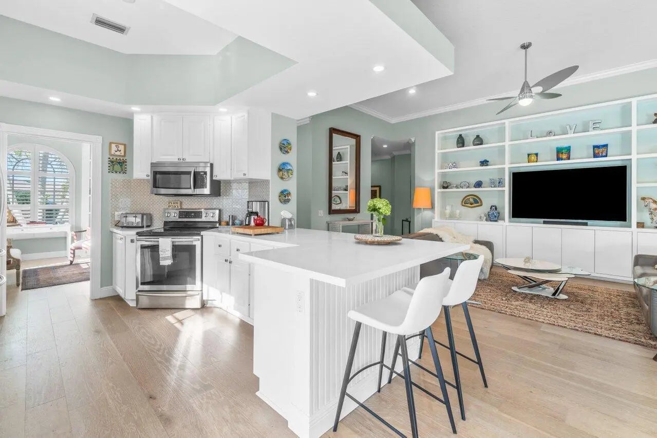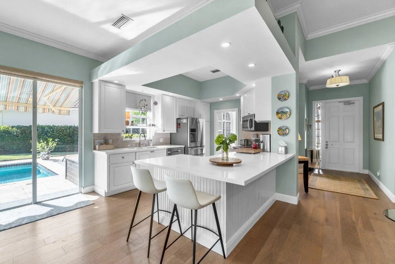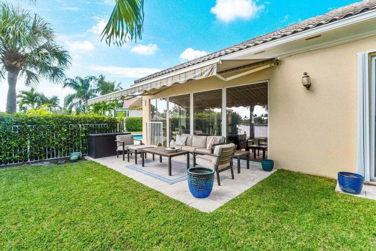 This exquisite home, w/ 24-hour manned security-gated community of Villagewalk, is nestled at the end of a cul-de-sac for max privacy. This beautiful home has 2 separate & fully gated gardens overlooking the lake, w/ a fabulous saltwater pool, & a full summer kitchen w/ fridge & gas grill. Inside, the 3-bedroom, 3-bathroom home (the main suite has 2 separate bathrooms) boasts an open-floor plan ideal for family living & entertaining. Ideally located 8 mins from Wellington Equestrian Center showgrounds, 10 mins from Polo. The beaches are 30 mins away & only 20 mins to the Airport. Other amenities include free cable, wi-fi, gym access, interior walking paths, 4-lane heated lap pool, 6 tennis courts, central post office & beautiful lake surroundings.