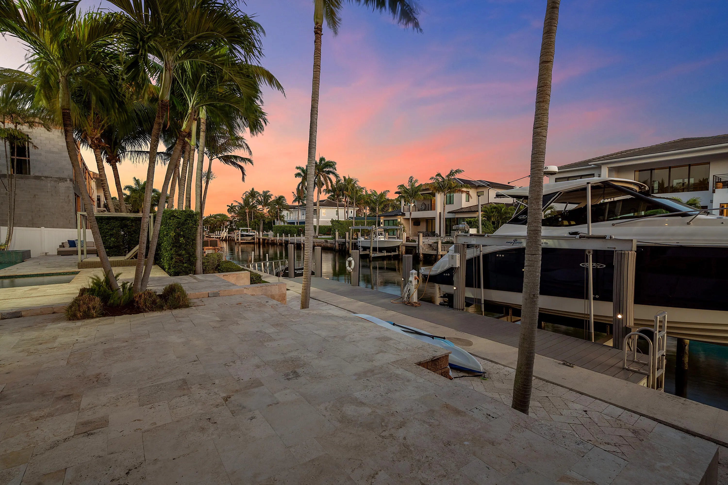 Experience the pinnacle of waterfront living in prestigious Tropic Isle, featuring 4 spacious bedrooms, 4 full and 2 half baths. This home blends timeless elegance with modern upgrades throughout. Perfectly positioned with coveted southern exposure, the residence is filled with natural light and showcases stunning water views. The chef's kitchen is a true showpiece, featuring top-of-the-line Wolf, Sub-Zero, and Miele appliances, dual dishwashers, a veggie sink, pot filler, steamer, and coffee maker-ideal for effortless entertaining. Enjoy seamless indoor-outdoor living with a resort-style pool, spa, and sun shelf. The newer dock is complete with boat lift and floating platform ideal for water toys. Additional features include a full house generator. Ideally located just minutes from the pristine beaches of Delray and only 2 miles from vibrant Atlantic Avenue, offering world-class dining, shopping, and nightlife. Enjoy the best of South Florida waterfront living!