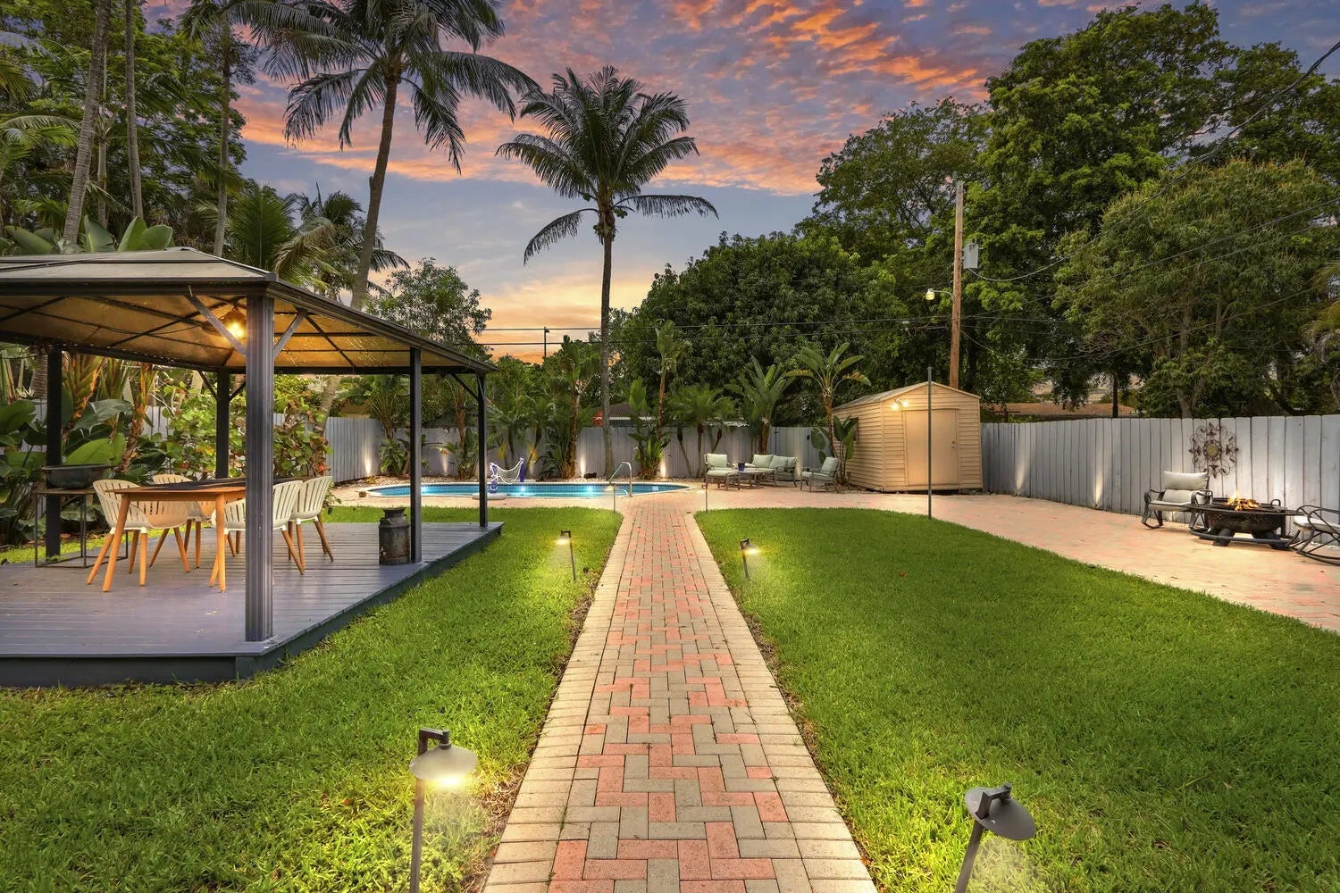 Awning(s), Lighting, Outdoor Shower, Storage, Custom Lighting, Pool Bathroom