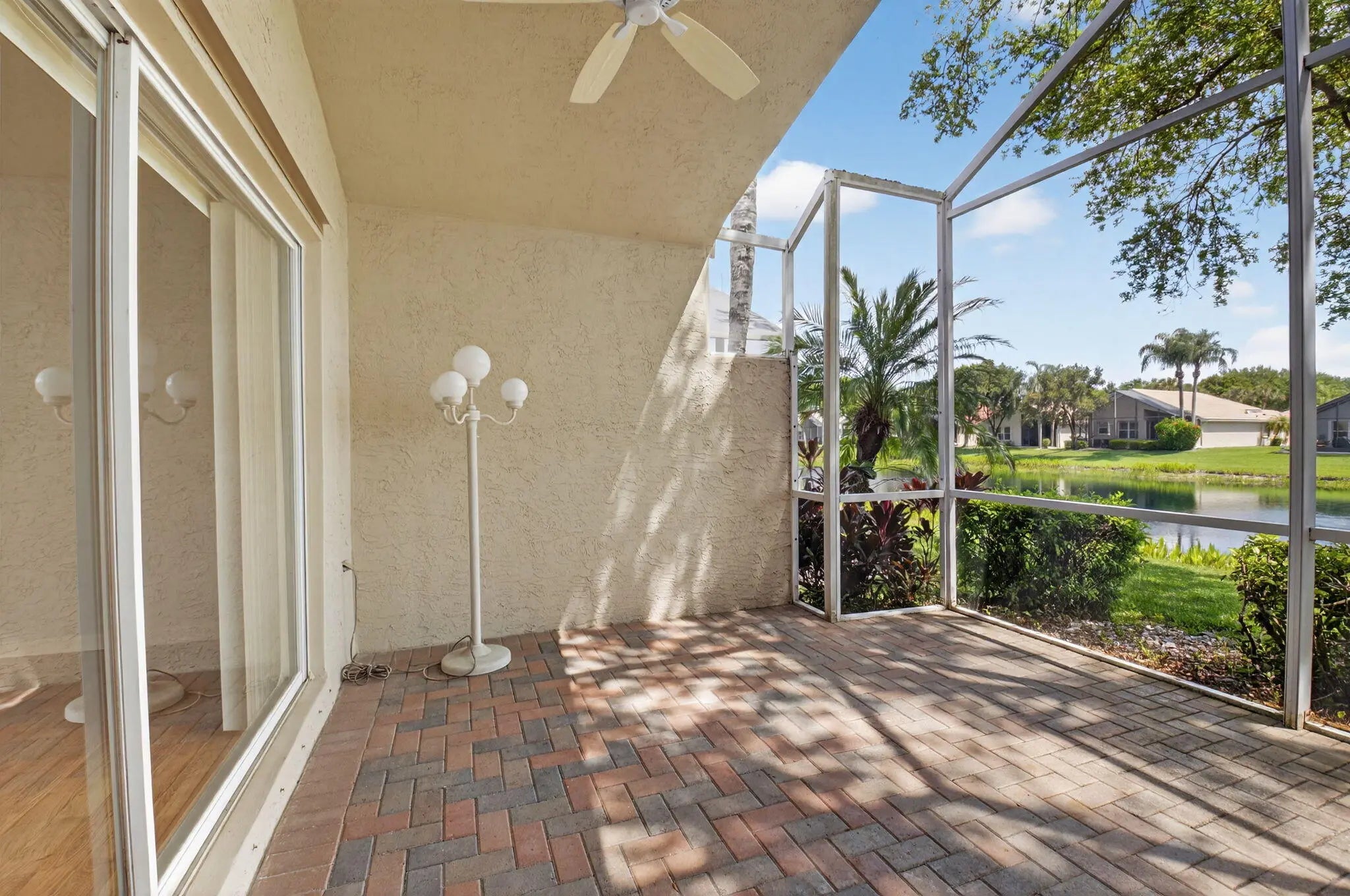 Bright, immaculate,1 story home with 3 bdrms/2 baths and 2 car garage. This spacious lakefront home is a split bedroom floor plan with many upgrades: newly renovated quartz counters in kitchen and bathrooms, new appliances (including water heater), high ceilings, fans, walk-in closets, and more. This home is ready for your decorating touches! Enjoy the serene lake view from your screened paved patio and kitchen.The tranquil lakefront backyard is perfect for you to enjoy a day in paradise. Come live the life style of Valencia Falls. State of the art amenities: Recently renovated clubhouse, card rooms, resort style pools, social hall, fitness center, cafe, pickleball, tennis, and much more. Close to highways, beach, restaurants, & downtown. Move in ready!