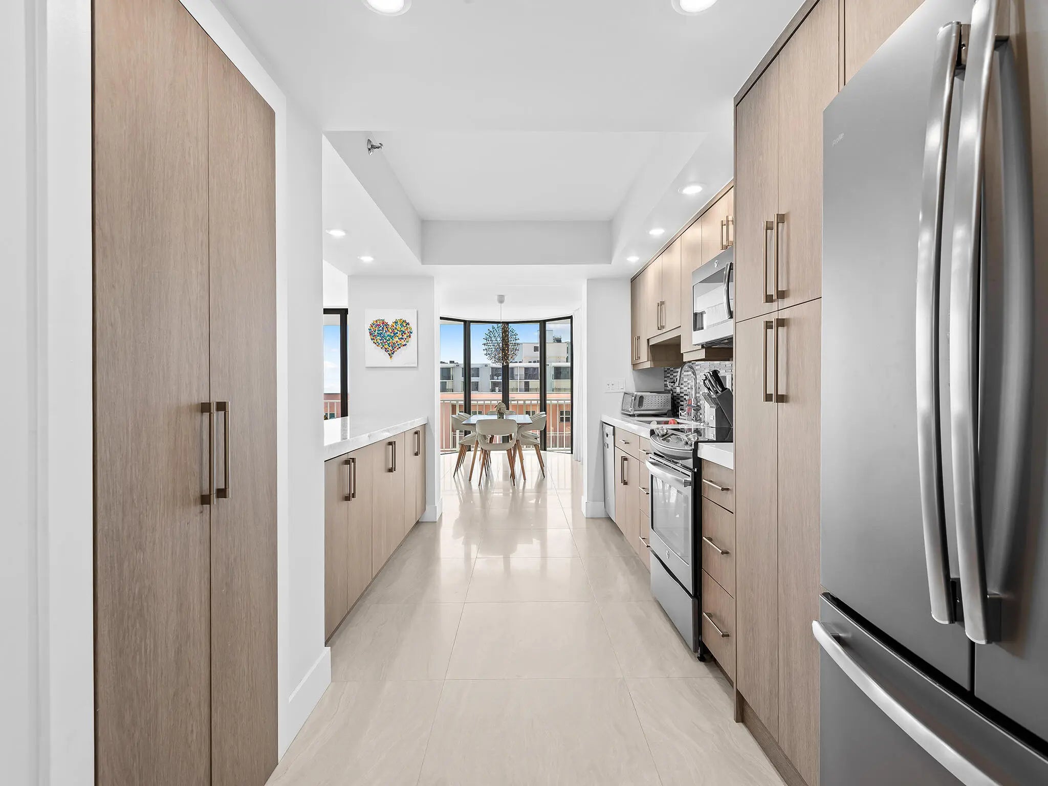 Beautifully renovated contemporary oceanfront condo with ocean views, offering sunrises along with city and Intracoastal views and sunsets! The large balcony offers and inviting space to relax, entertain & enjoy the coastal lifestyle! Split-bedroom layout provides privacy, complemented by sleek pocket doors with frosted glass and updated bathrooms. The modern kitchen showcases an illuminated quartzite countertops, combining style and functionality. The building has recently completed major improvements, including concrete restoration and a new roof, and is fully funded for SIRS requirements.Additional upgrades include impact glass throughout, renovated corridors, and a stylish new social room. Resort-style amenities, including a pool, sauna, Spa/hot tub, fitness center & bike storage.