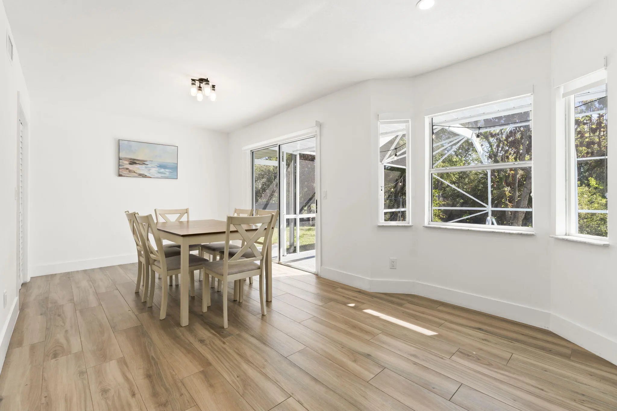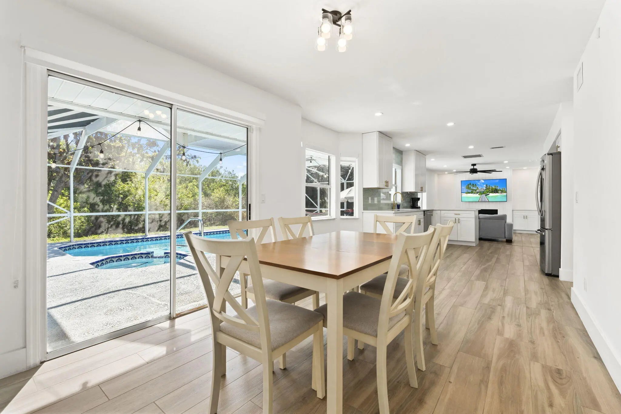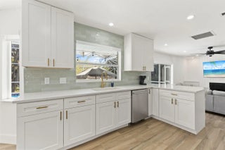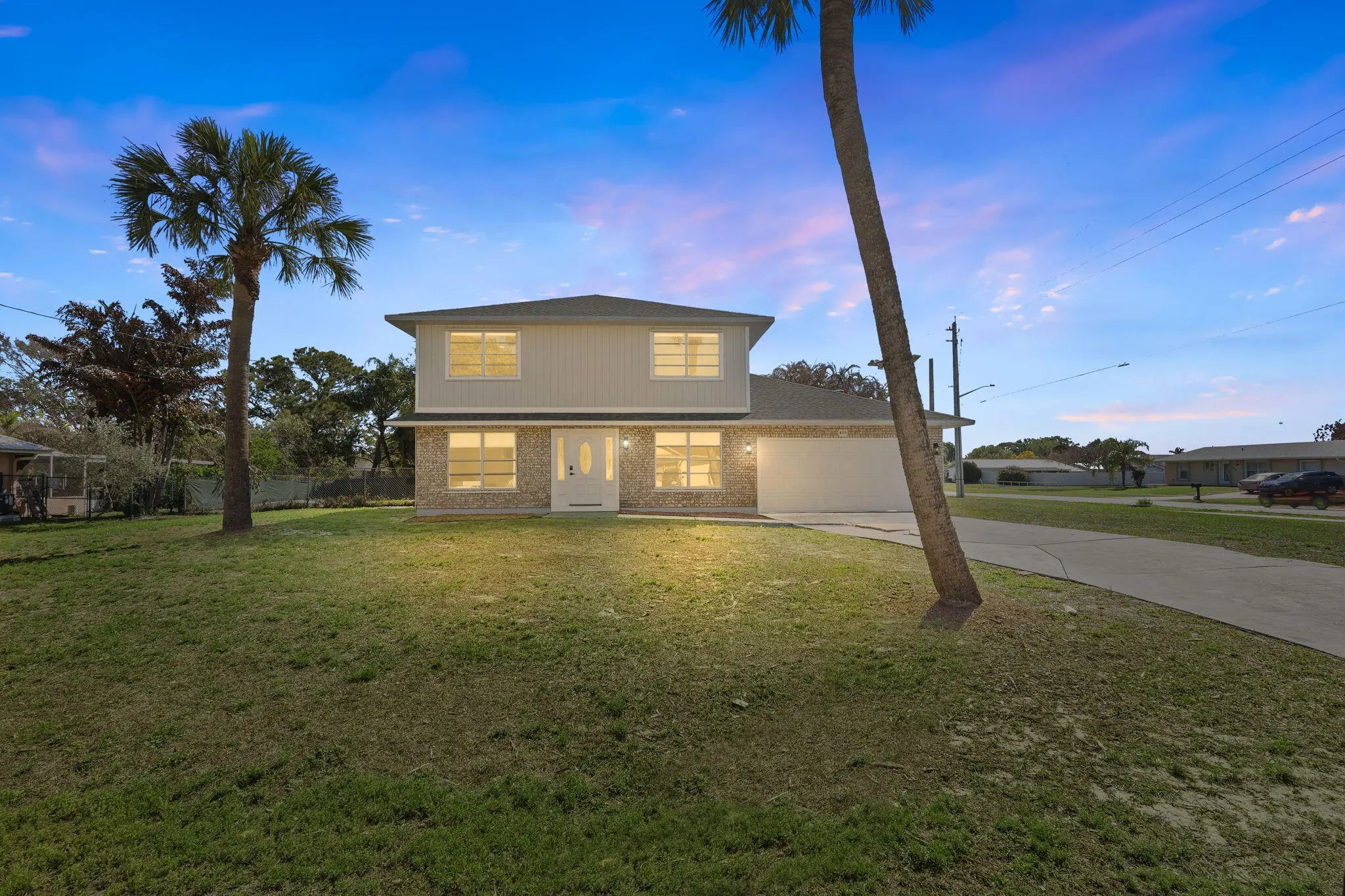 Positioned on a navigable finger of the St. Lucie River with ocean access, this fully updated two story home has 5 bedrooms, 3 bathrooms, a den, and nearly 2,000 square feet of living space, the layout is both functional and flexible for a variety of needs. The main level includes a bedroom, full bath, and den perfect for guests, a home office, or multi-generational living, while four additional bedrooms and two bathrooms are located upstairs. The living area features a wood burning fireplace with a modern design, and cabinetry on each side. Recent 2025 upgrades include a new roof, A/C system, and water heater, providing peace of mind for years to come on the big ticket items. The interior has been thoughtfully modernized with soft close cabinets and quartz countertops in both the kitchen and bathrooms. Situated on an oversized 16,000 sq ft corner lot, the outdoor space is designed for both relaxation and entertaining, featuring a private pool, screened-in patio, and a partially fenced yard. Conveniently located just 10 minutes to the Florida Turnpike, 15 minutes to I-95, under 10 minutes to shopping and dining at St. Lucie West, and less than 20 minutes to Tradition. Beaches are approximately 25 minutes away, making this home a rare opportunity to enjoy waterfront living with easy access to everything the Treasure Coast has to offer.