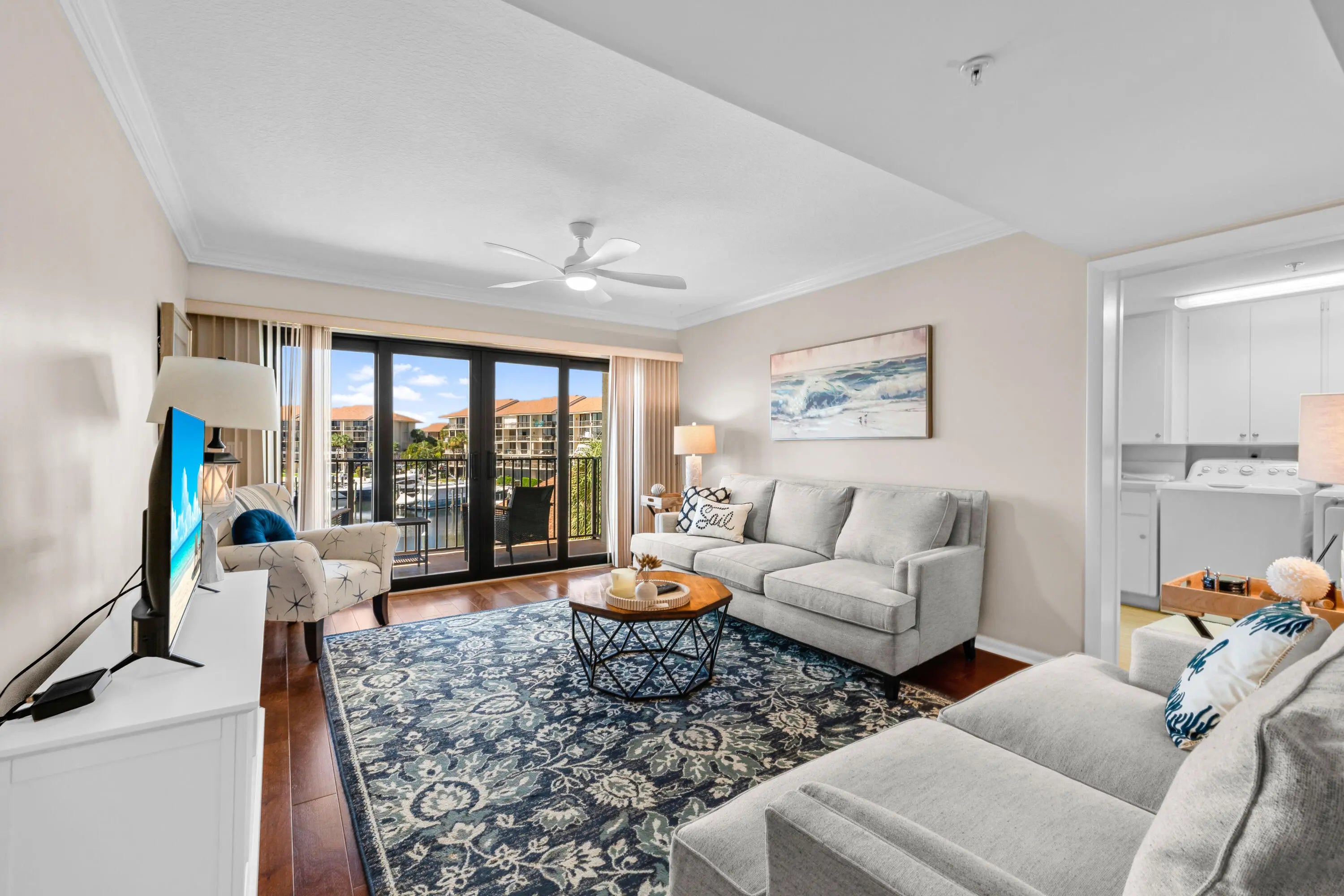 Come see this beautiful fully-furnished off-season rental featuring 2 bedrooms and 2 bathrooms - available 6/1/26. Minimum of 4 months (per association). Amazing views of the marina and pool. The Marina at the Bluffs offers residents 4 heated pools, tennis & pickleball courts, and bocce ball. Rent includes water, sewer and basic cable TV. The Marina at the Bluffs is located less than a mile from some of the best beaches in South Florida, great restaurants, shopping, world-class golf courses and only 30 minutes from Palm Beach International Airport! Sorry - no pets per the association.