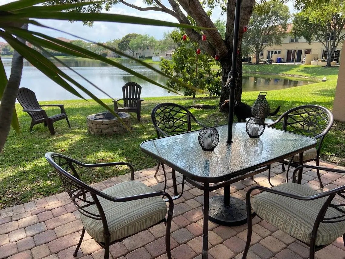 !LOCATION! Beautiful LAKE VIEW townhome in the gated community of Regalo at prestigious Riviera Isles. Fully renovated with Italian-style kitchen cabinetry, stainless steel appliances, and new central A/C (2022). Features crown molding, ceramic flooring on the first floor, and elegant laminate flooring throughout the second floor. Renovated bathrooms with modern finishes. Spacious primary suite with walk-in closet, soaking tub, and separate shower. Bedrooms include blackout roller shades and wood blinds; living room has sliding solar screen panels. Includes full-size W/D, large storage room, 1-car garage, double paver driveway, and guest parking. Resort-style pool, playground, near shopping, I-75, A-rated schools. Photos reflect property prior to being rented. Move-in ready.