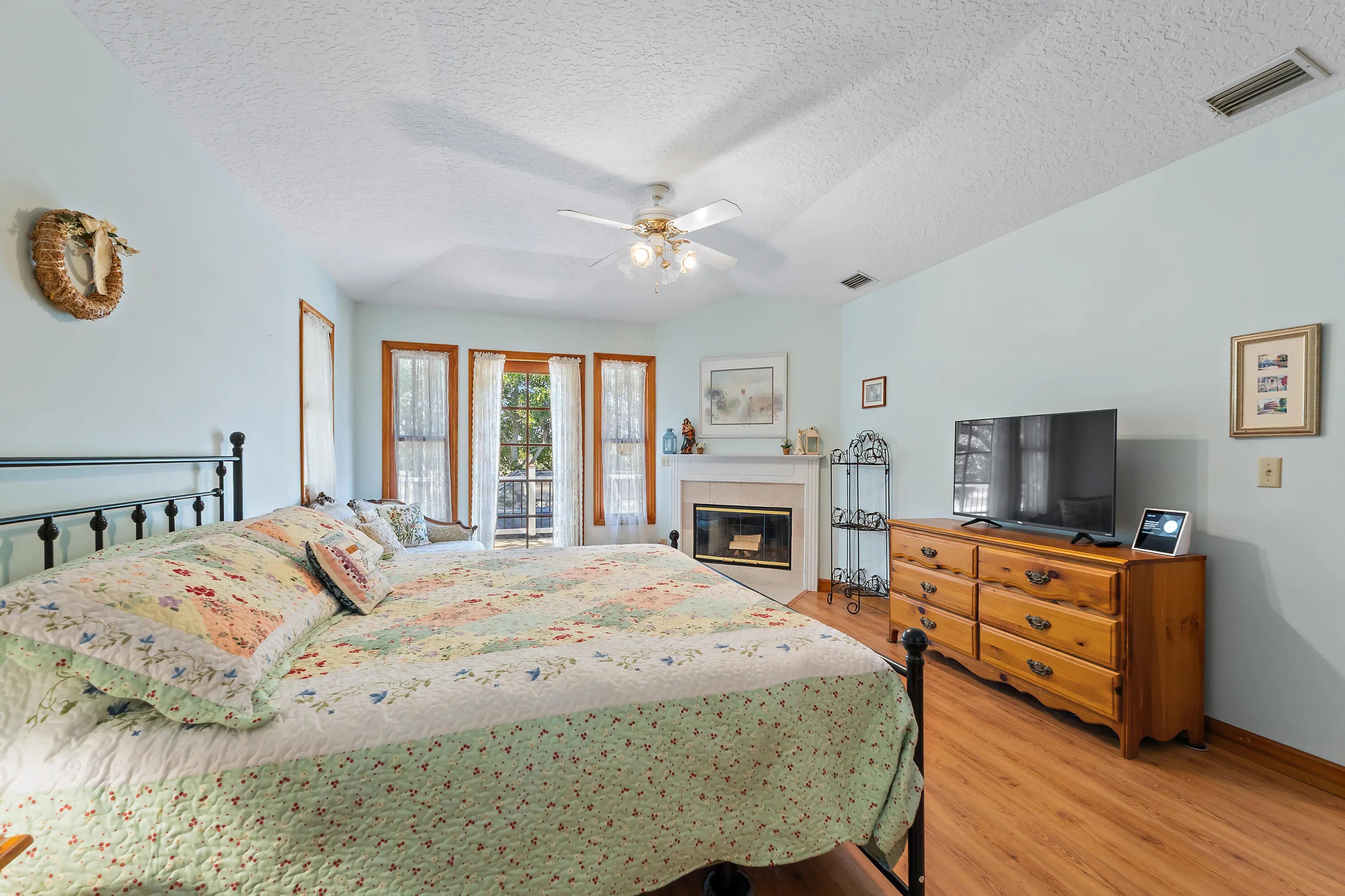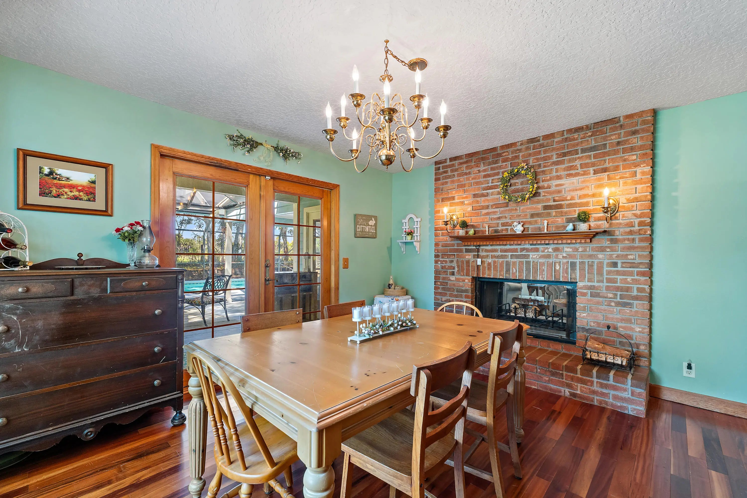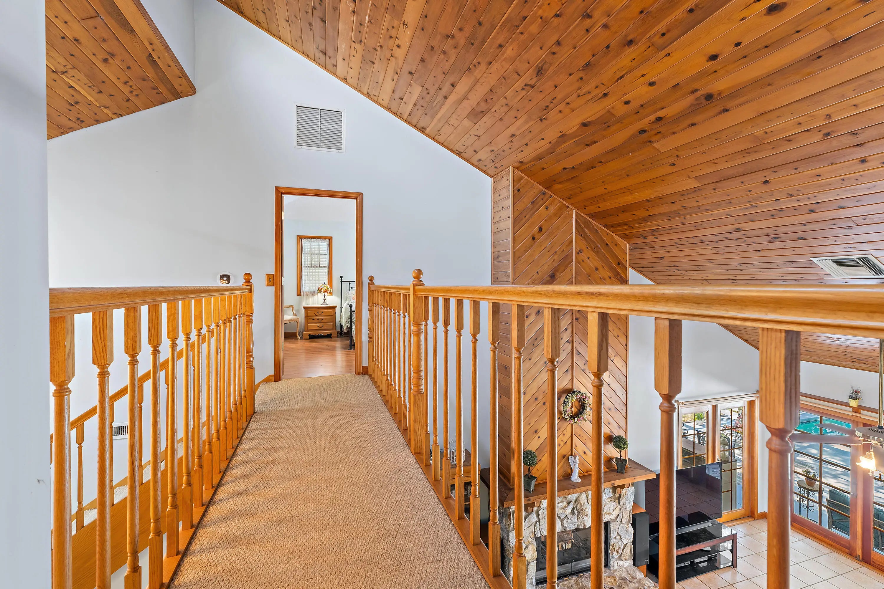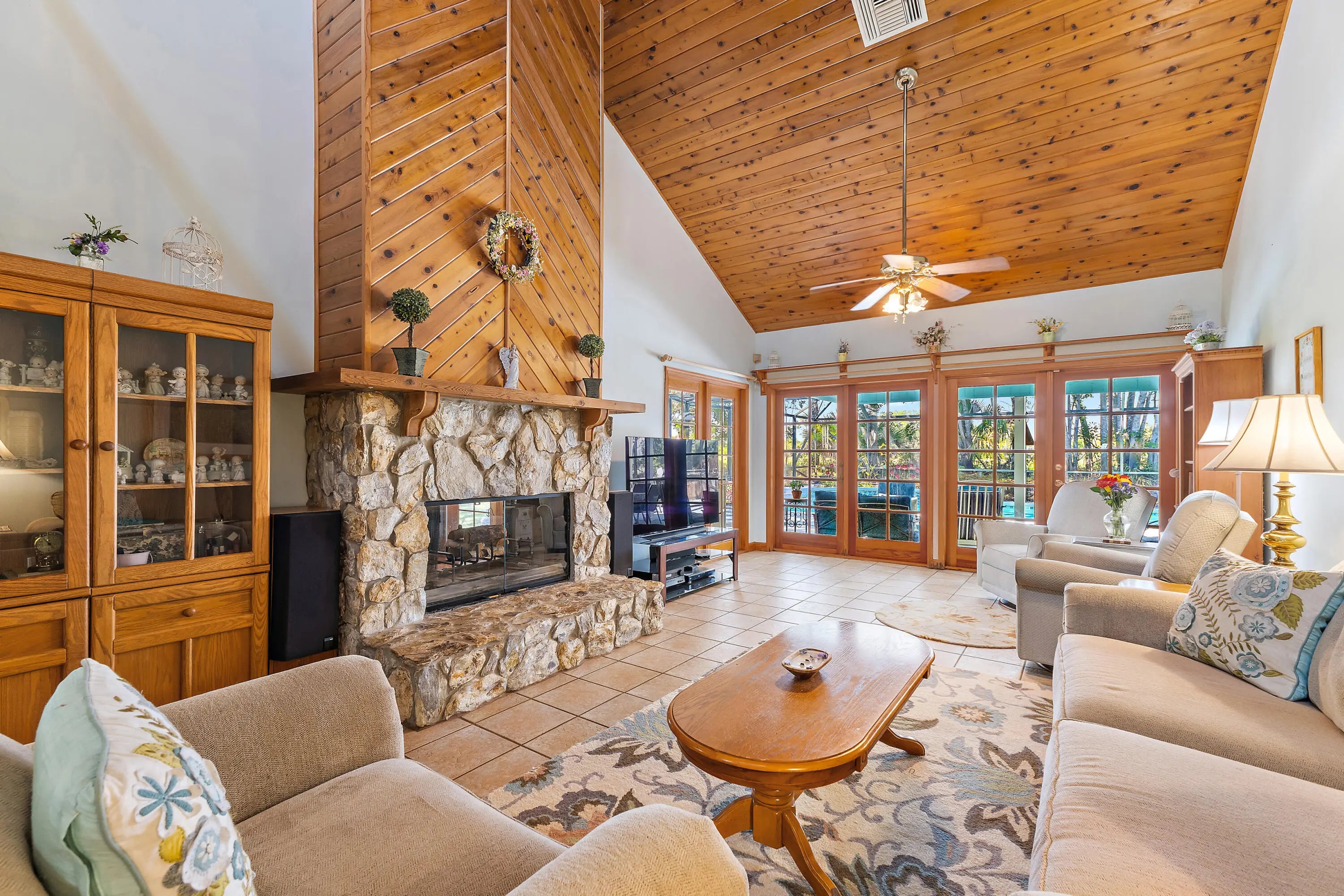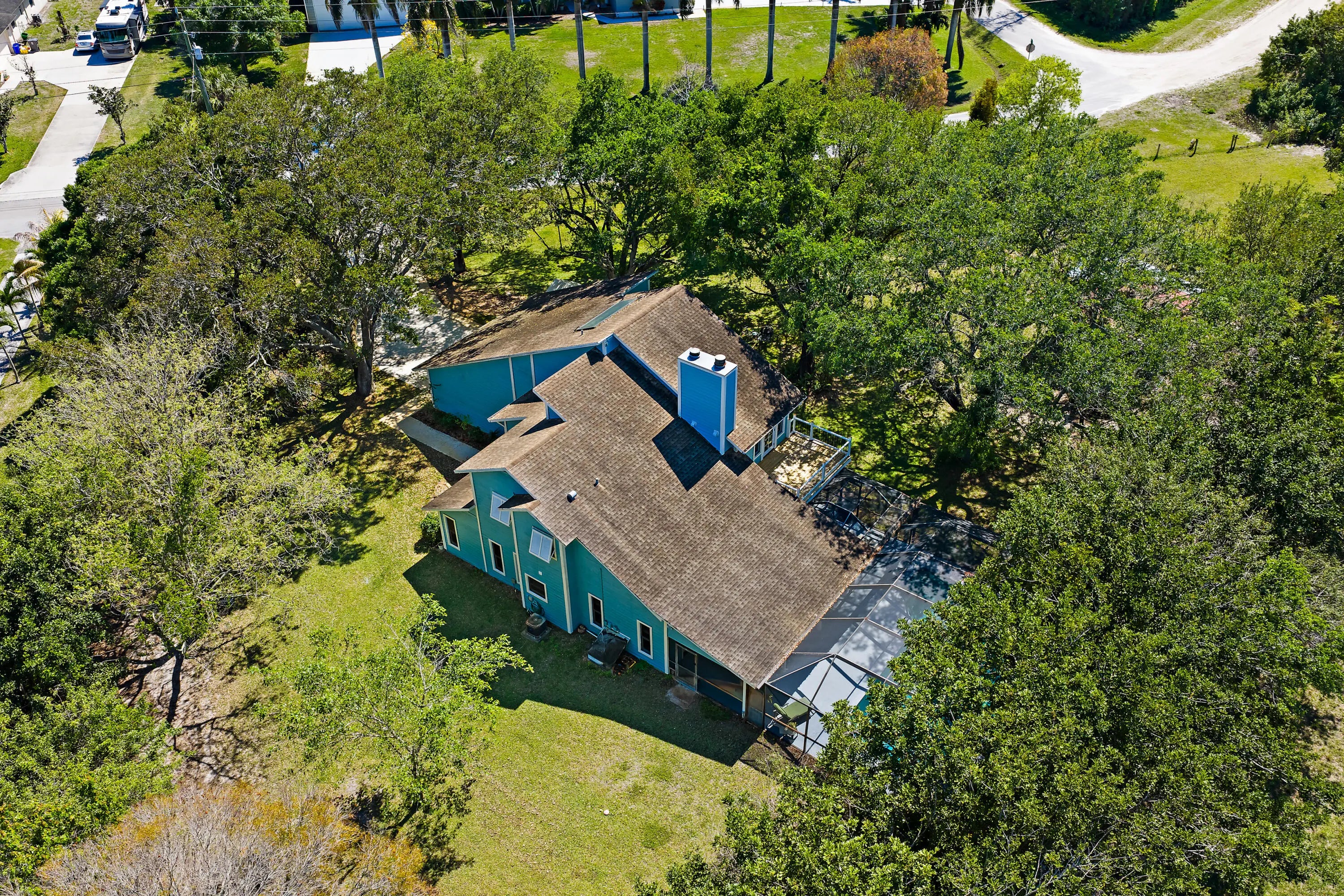 Tucked away on a private 1.2-acre lot in Palm Beach Country Estates, this two-story, 4-bedroom, 3-bath home offers a rare blend of natural beauty, space, and understated farmhouse-inspired charm. Backing to the C-18 canal, the property enjoys a peaceful, secluded setting with serene views and exceptional privacy. Inside, warm architectural elements set the tone, including pecky cypress ceilings and a striking two-sided fireplace connecting the living and dining areas—creating a cozy, inviting focal point. A second fireplace in the primary bedroom adds to the home's character, while a private balcony off the suite captures tranquil views of the canal and surrounding landscape. The cedar-sided exterior enhances the home's natural, farmhouse-inspired aesthetic, while the expansive lot provides endless possibilities—whether you envision a more refined modern farmhouse look or prefer to bring your own unique design vision to life. Additional features include partial impact glass protection, a 2019 HVAC, 2022 water heater, 2012 roof, and a two-stall pole barn stable, offering flexibility for equestrian use, hobbies, or additional storage. A rare opportunity to enjoy privacy, land, and lifestyle in one of Palm Beach Gardens' most desirable acreage communities.