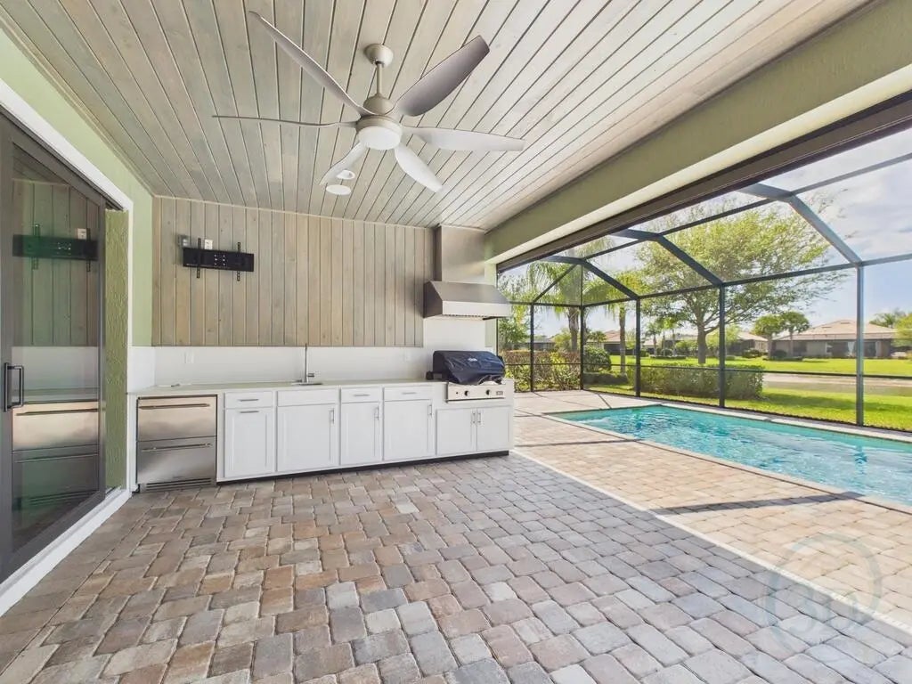 This is an amazing house. It checks all the boxes with high end upgrades. See attached Features list. Enjoy the Real Virtual Tour and notice the crown molding, high end appliances, electric fireplace, outdoor kitchen, etc. What you can't see is that the windows and doors are impact resistant, there is a whole house generator, the impact screens for the patio portion are electric and a small manual one. This house is amazing with custom closets in every bedroom. Seller has not lived in the house, but has had an inspection completed with no issues.