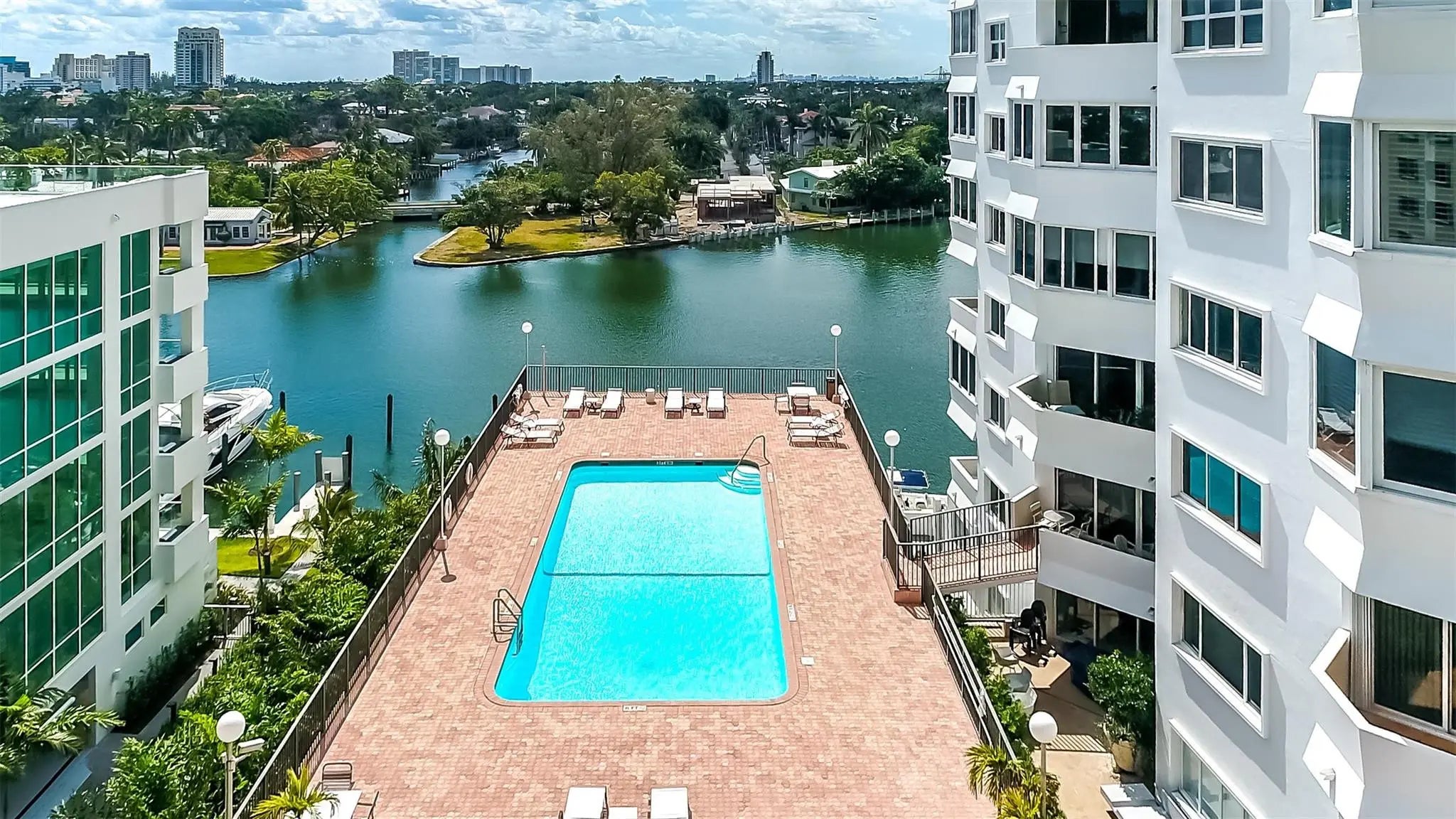 Amazing Views with immediate dockage for your boat. This magazine quality total renovation of the 4th floor end unit has views in 3 directions. Water and tree top view in daylight. Lit Skyline at night. Chef inspired custom kitchen with tons of storage. 2 Large Master Suites one w/dedicated waterfront balcony. 3rd Bedroom nestled in the trees. Recessed lighting throughout enhances the light, bright finishes of this fresh remodel. Wood plank look Porcelain Tile Floors. The historic Four Seasons is standing tall with all 40 and 50 year inspection points addressed. Reserves in place. Just completed 1yr+ exterior refurbish project. Dock to 50+ available now @ $11/ft/month. Any size dogs welcome. Come enjoy the Las Olas lifestyle in this brand new, stand-out, waterfront condo unit masterpiece.
