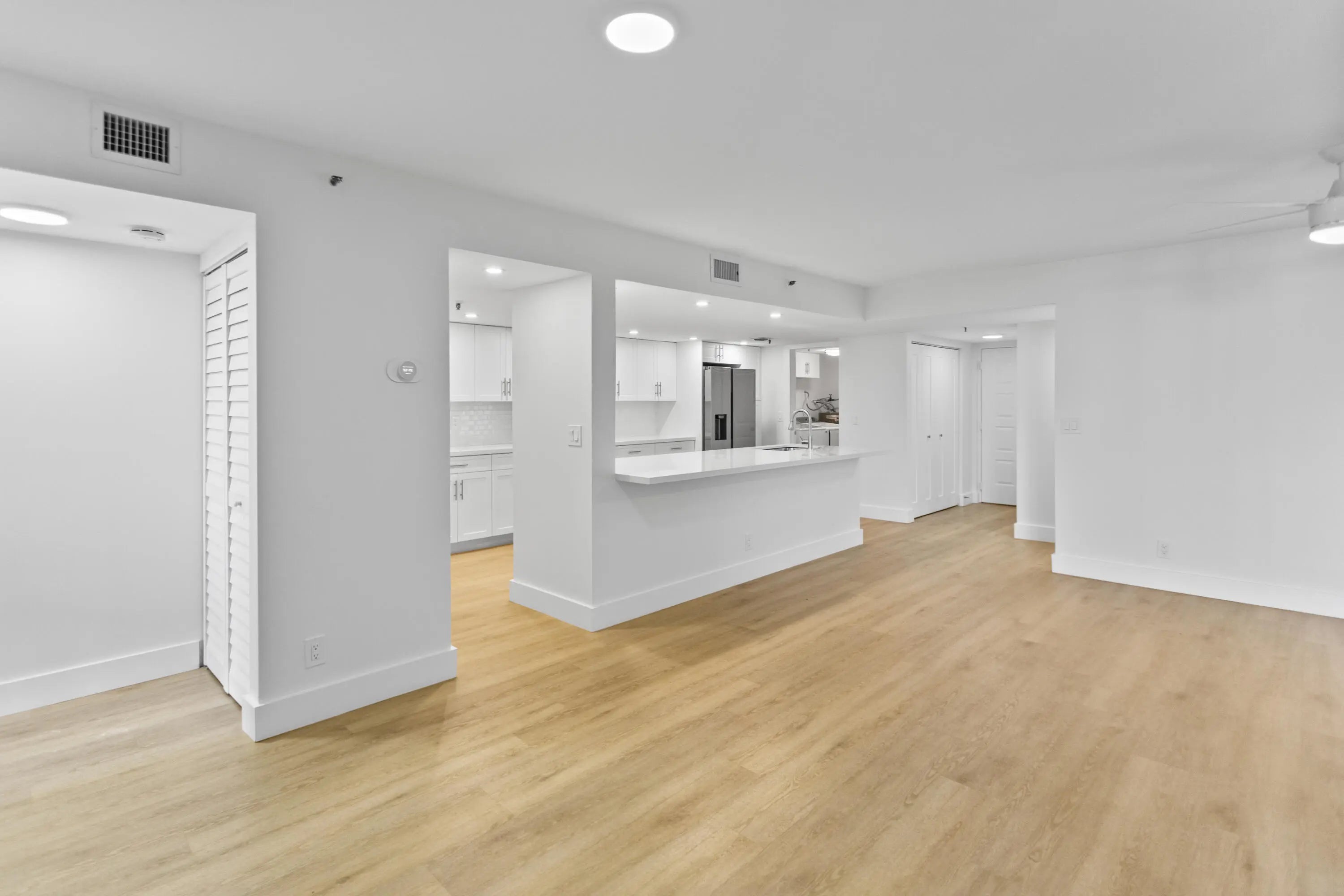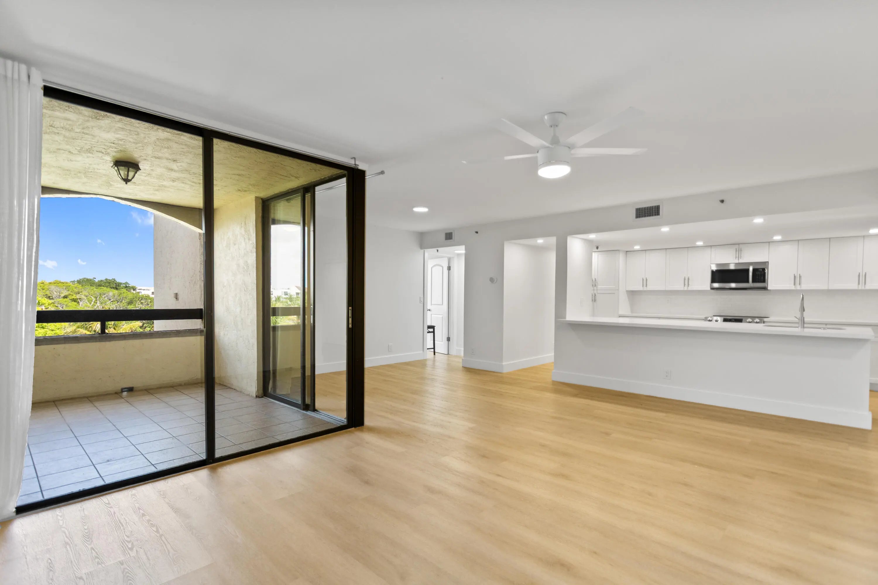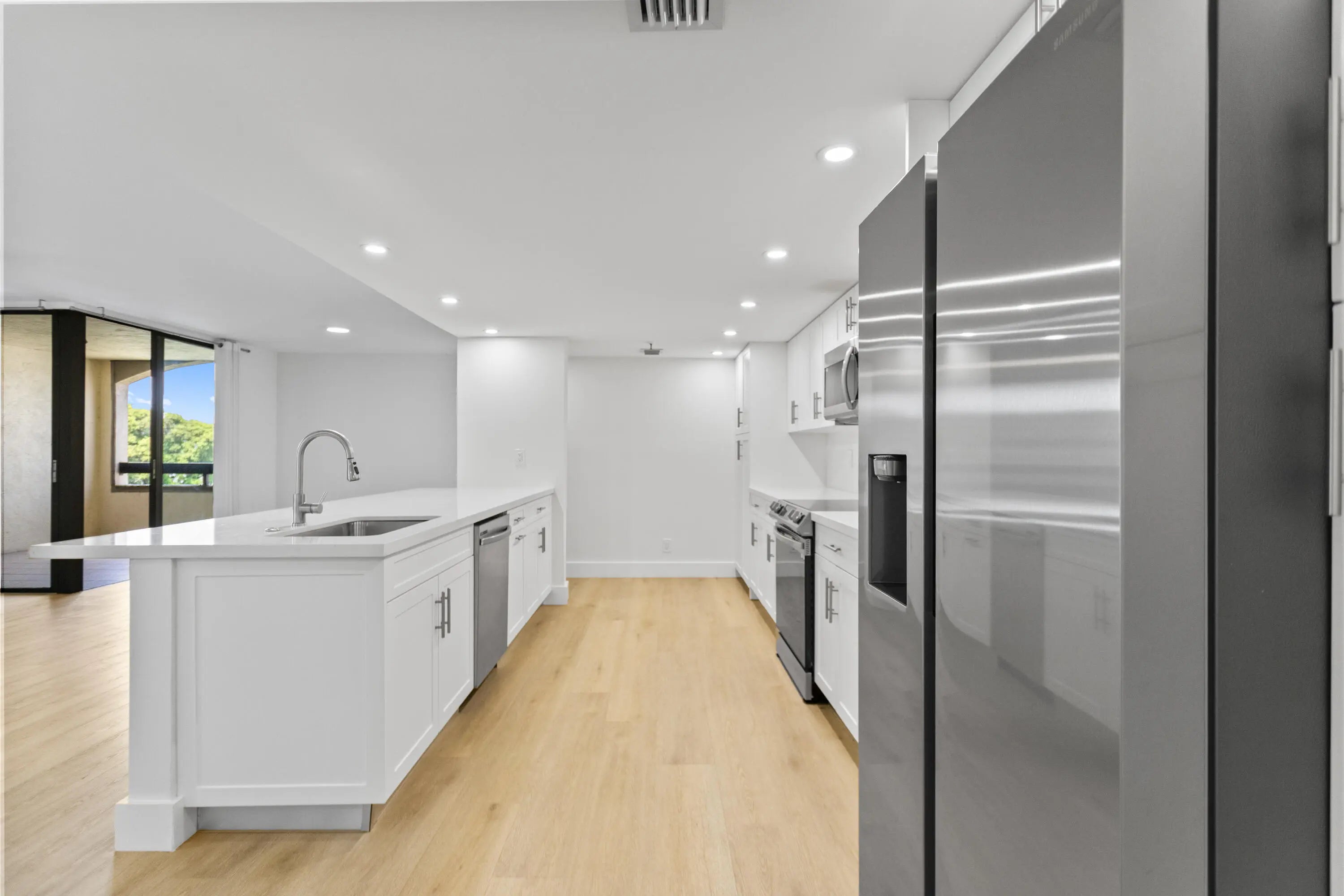 Beautifully renovated and spacious 2-bedroom, 2-bath condo featuring serene lake views and resort-style scenery from a private balcony. The open concept kitchen boasts brand-new appliances, elegant quartz countertops, and ample space for entertaining. A large laundry room includes a full-size washer/dryer adding convenience and functionality to this stunning condo. Lobby is a secure lobby with phone access. Pet Friendly! Did I mention Location is minutes to beach, shopping, and finest restaurants.
