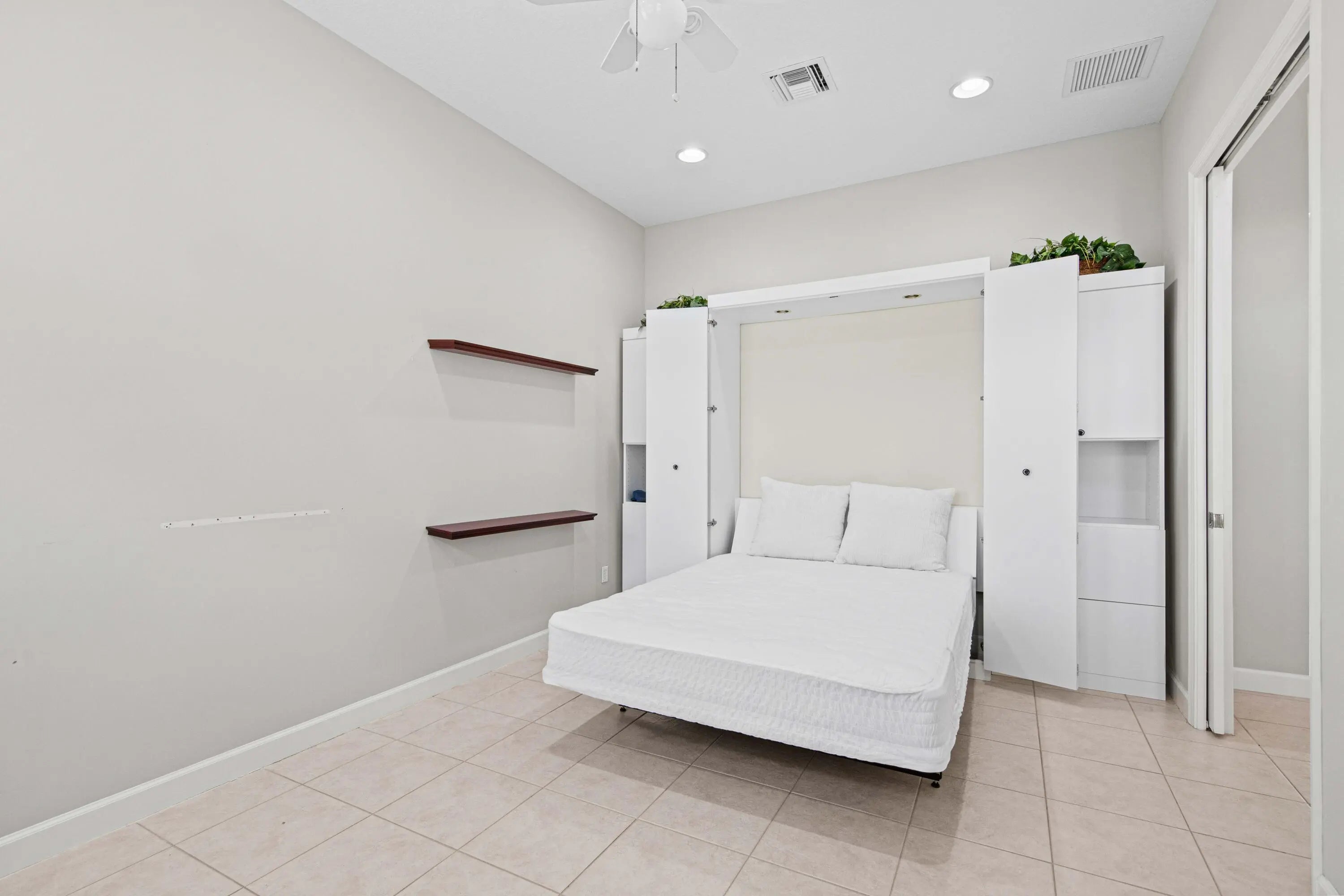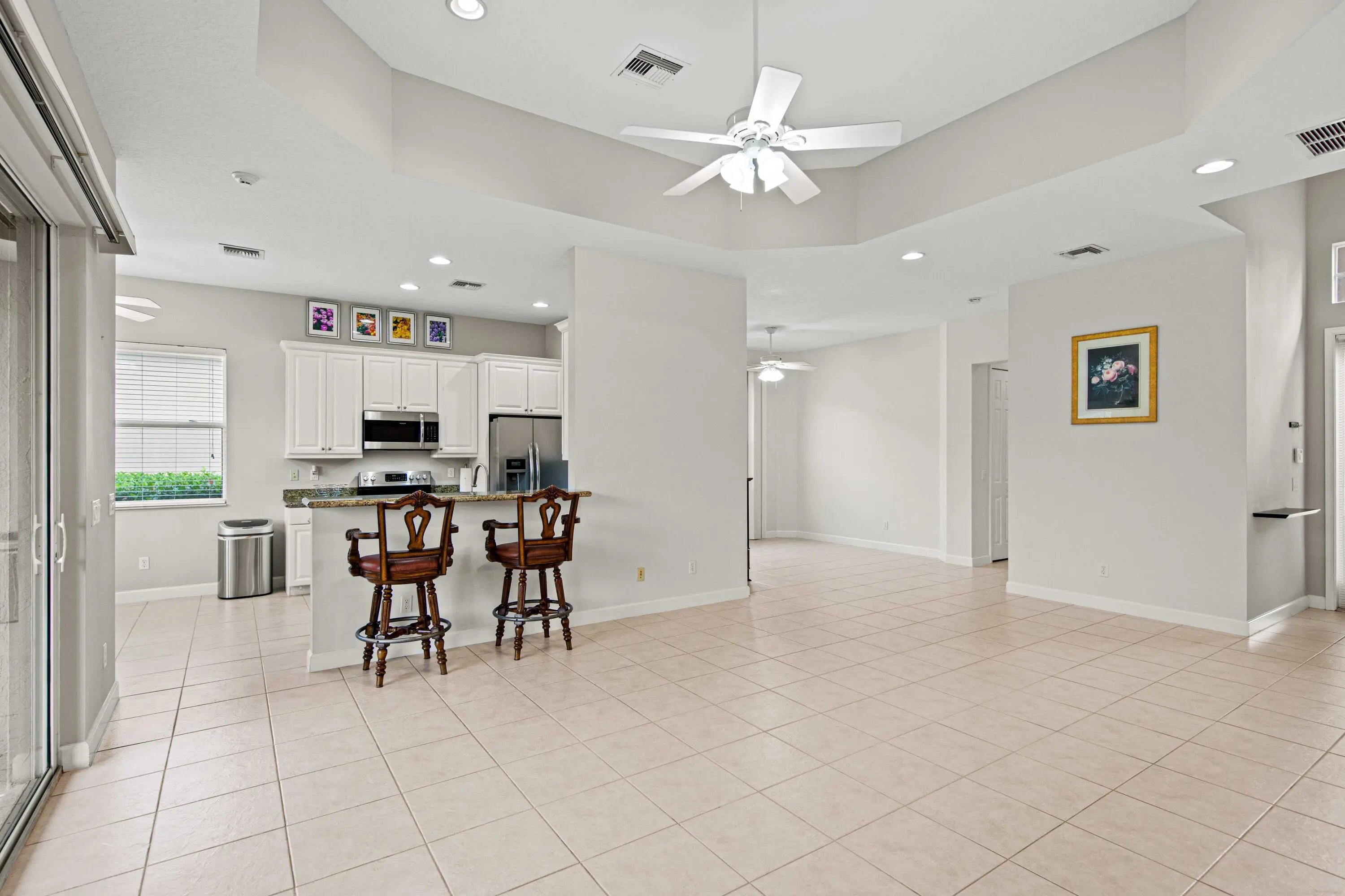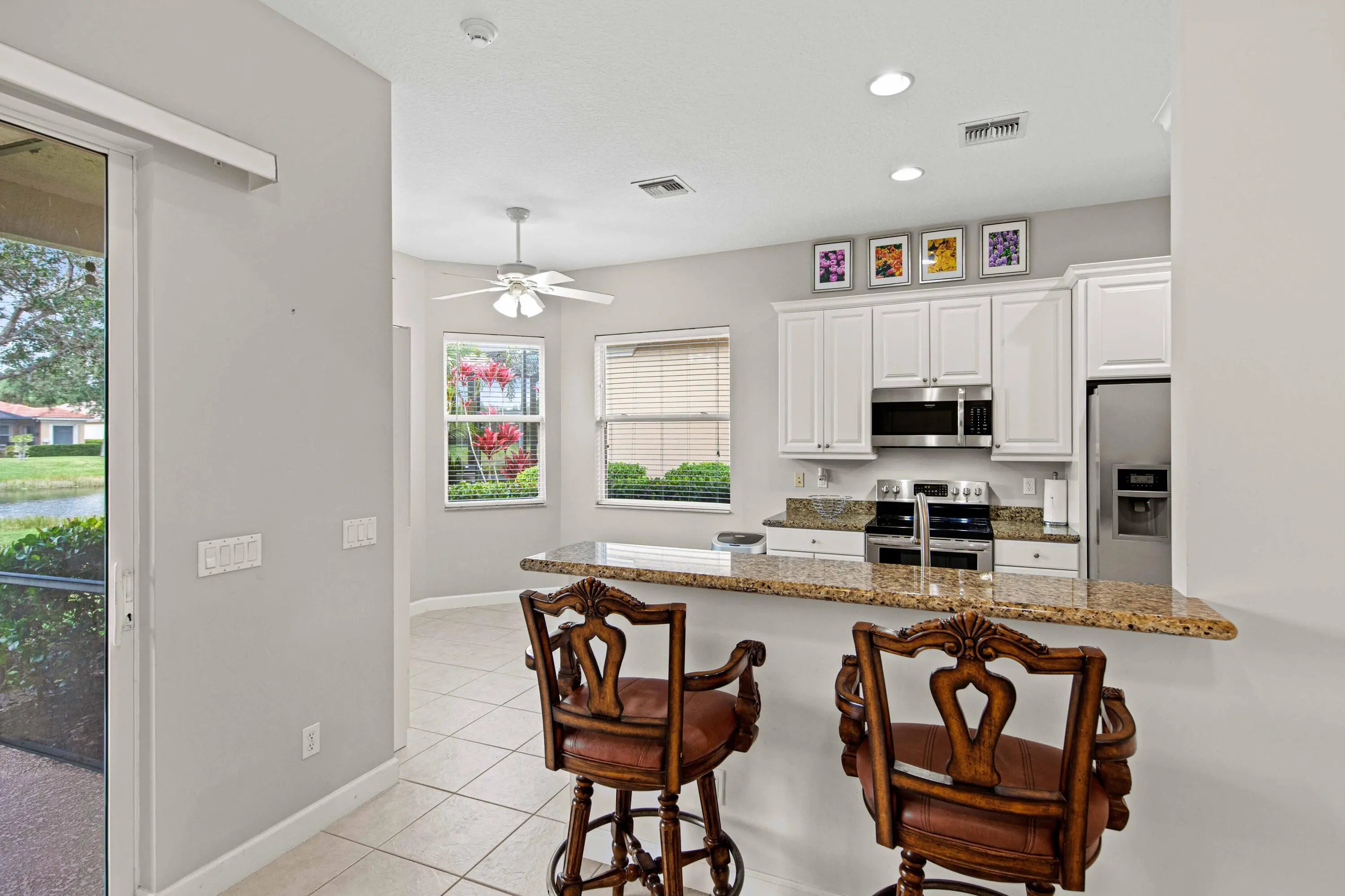 Introducing this charming 3-bedroom, 2-bath home nestled in the picturesque PGA Village. Boasting a generously sized open living area, this residence offers a fully equipped stainless steel kitchen with a cozy breakfast nook and a convenient bar. The versatile third bedroom features a convenient ''Murphy bed,'' perfect for use as an office. Additional amenities include a dedicated laundry room with washer and dryer, a double garage, and a serene screened rear porch overlooking a tranquil lake. Situated on a peaceful cul-de-sac, this property offers a tranquil retreat for its lucky occupants.