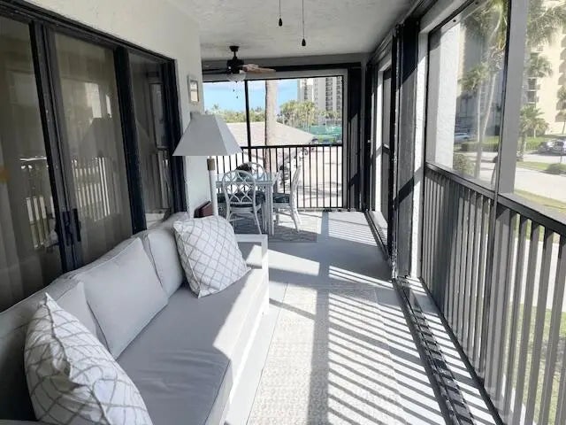 **Direct Oceanfront Community** Available Jan-April 2027. Located on the beach in Jupiter, this beautifully renovated 2nd floor residence is locates steps to the beach, pool & tennis courts. Light & bright condo offering 2 large bedrooms, 2 updated baths, custom kitchen with quartz c-tops & stainless steel appliances; full sized washer & dryer, plantation shutters & tiled floors. Relax on the screen wrap around porch while listening to the sounds of the Ocean & experiencing amazing sunrises. Walk miles of beach, fishing on the jetty at the Jupiter Inlet, pool, hot tub, tennis, pickleball, fitness center, 24 hr manned gate. Golf next door at Jupiter Dunes GC. Walk to numerous waterfront restaurants & shops. A perfect beach retreat in a lovely resort setting in the sand on Jupiter Beach