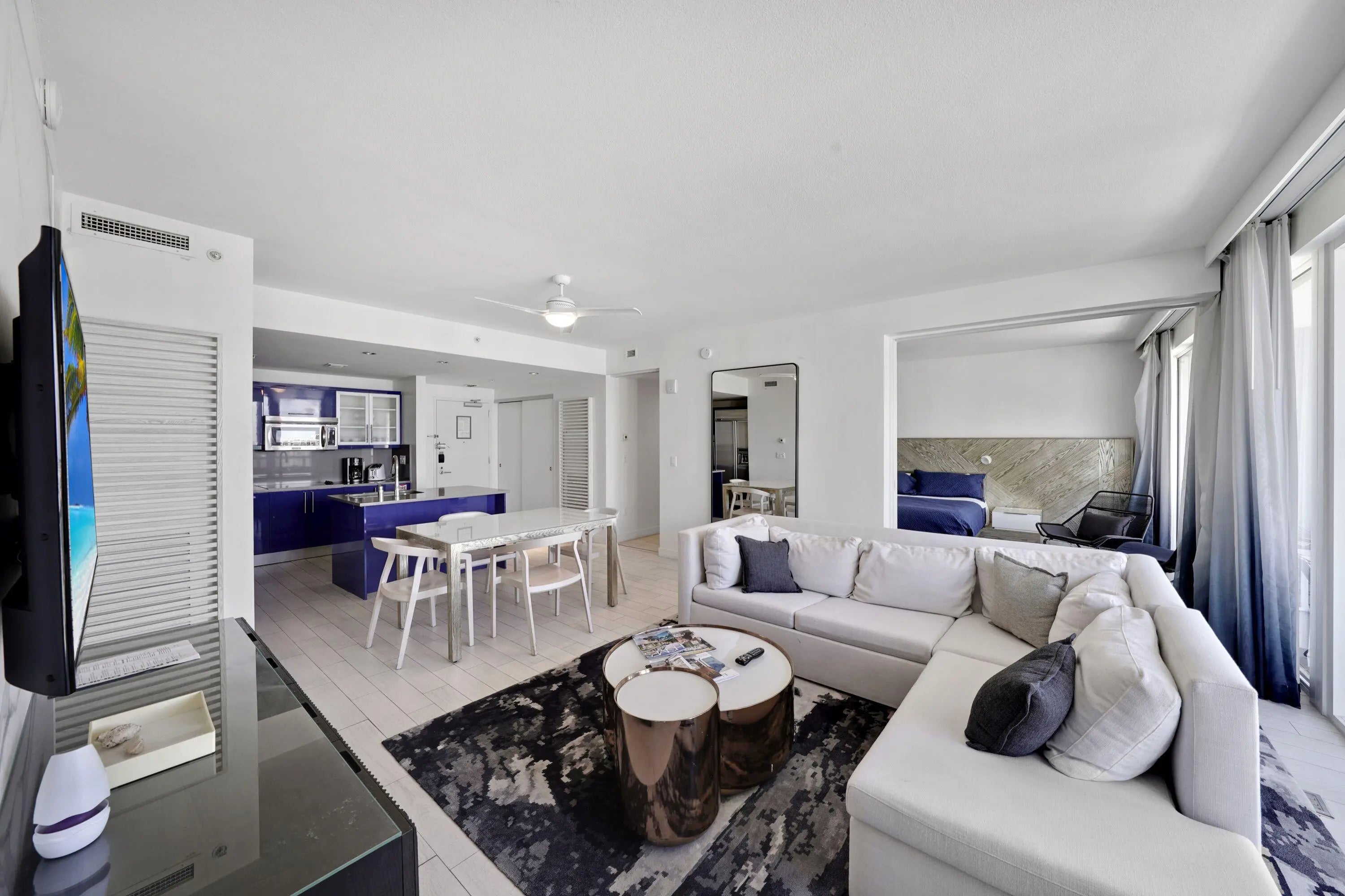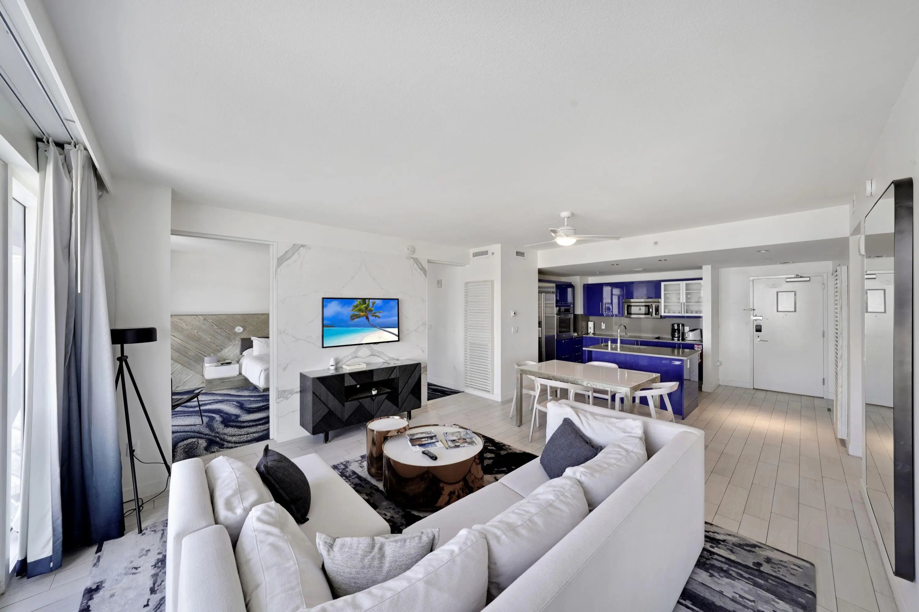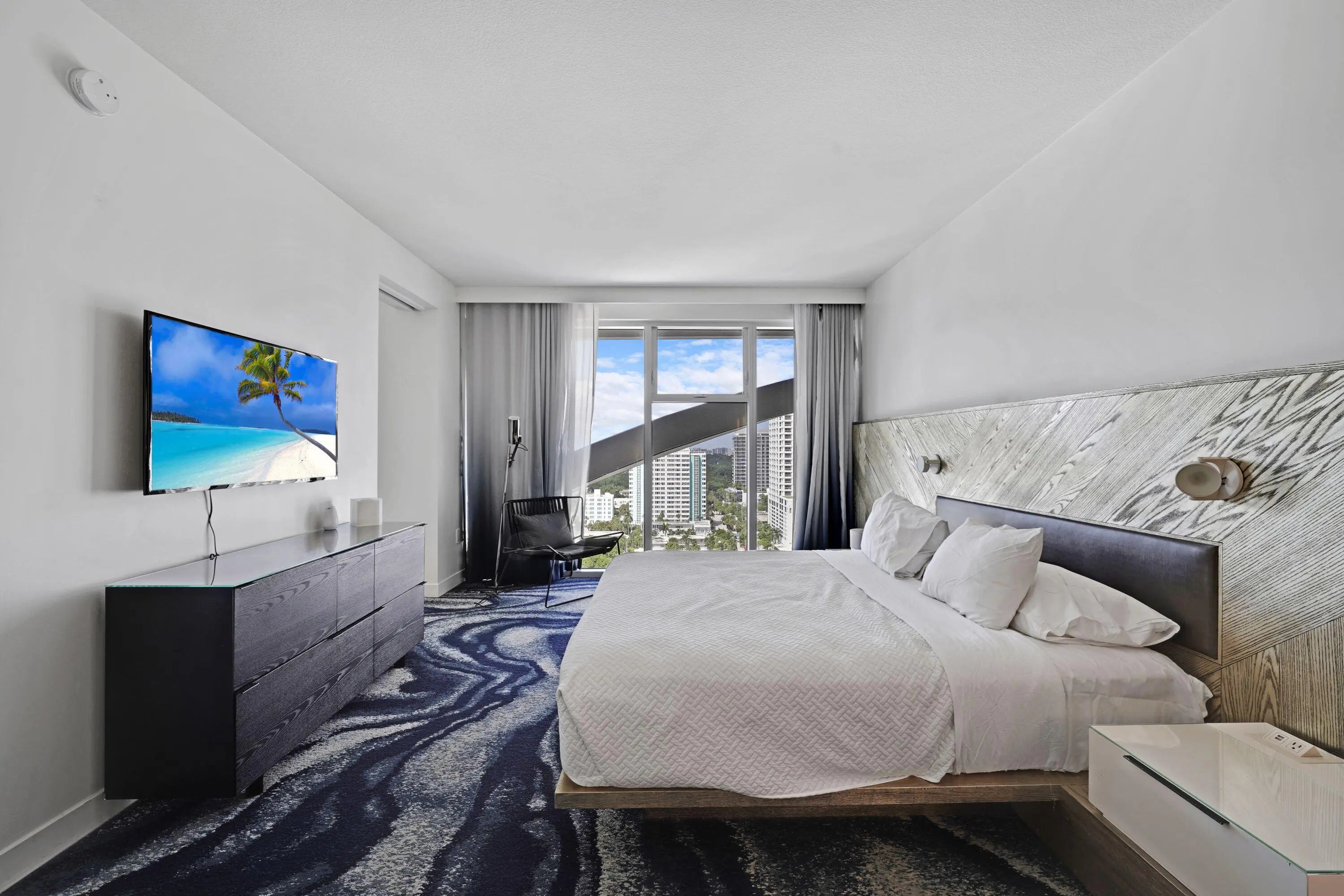Turn-key and fully furnished 2-bedroom, 2-bath residence at the W Residence, offering comfort and style with accommodations for 6+ thanks to a queen sleeper sofa. Enjoy resort-style living with no rental restrictions and access to world-class amenities including two pools, 24-hour fitness center, on-site restaurants, day spa, and valet parking. This spacious unit features a large open balcony with stunning water views, a full-size kitchen with stainless steel appliances, and in-unit washer and dryer hook up available. Beach club access and one valet parking space are included