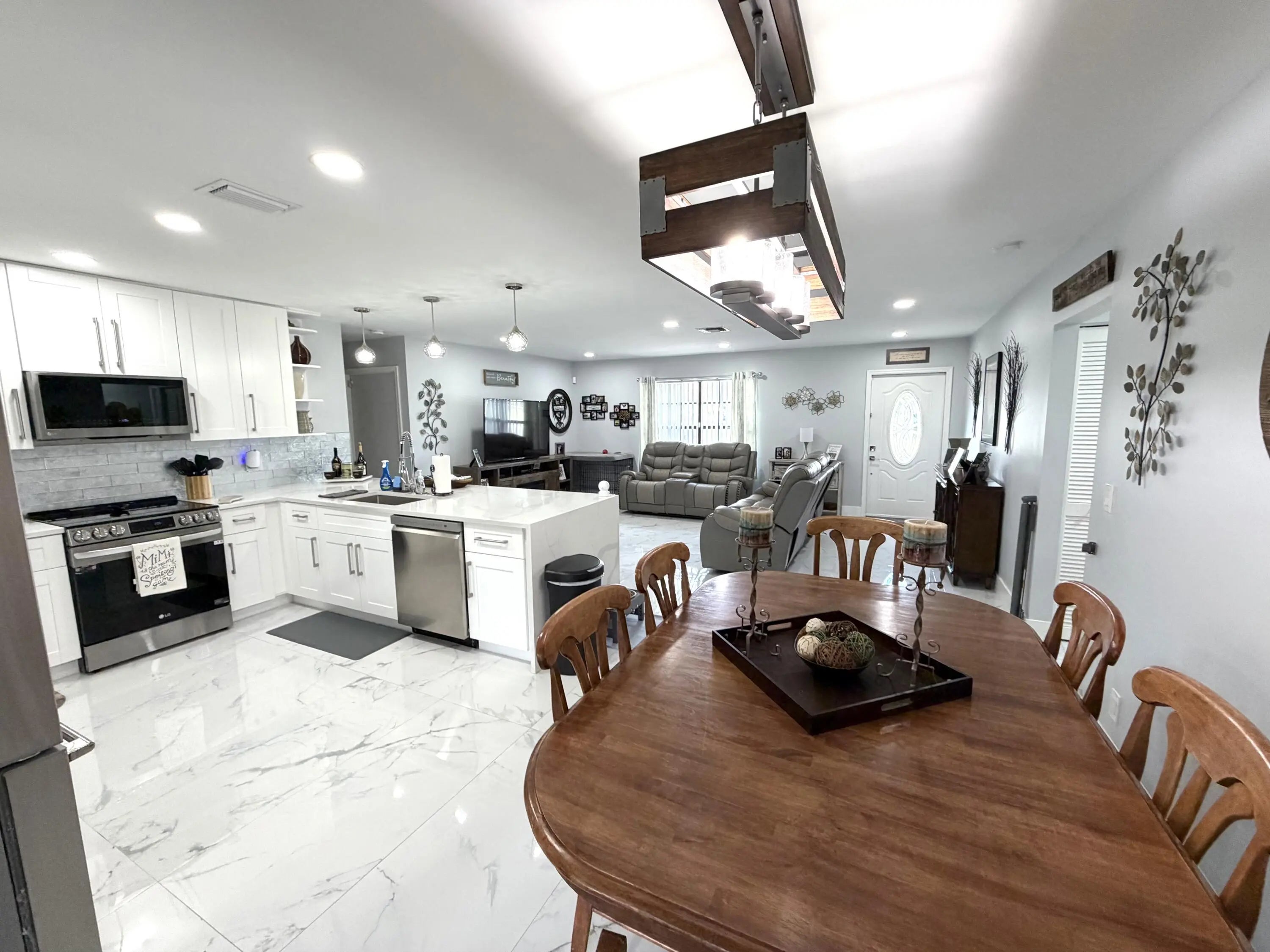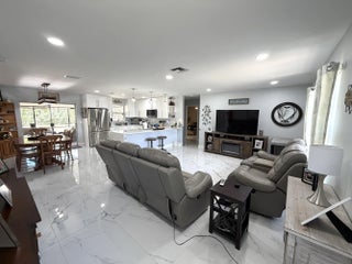 Beautifully updated home featuring an open kitchen & a 2022 roof, located in La Mancha comm just a few houses away from the neighborhood park. Home improvements in the last couple of years, including newer kitchen appliances, WD, toilets, an impact-rated garage door, seamless gutters, & a Nest thermostat. Both the interior & exterior have been freshly painted, the AC has been recently serviced, & exterior cameras stay. Over a quarter of an acre lot, the yard is fully fenced, offering privacy and plenty of room to design your own outdoor retreat or entertainment space. Even better, there will never be neighbors behind the home, as the land is owned by FPL providing lasting peace and privacy and with no HOA! Seller says let's negotiate to buy down that interest rate!