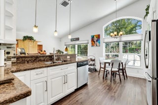 Welcome Home to this 3 Bedroom 2 1/2 Bath Two Story Home In The Woodlands At Carolina. Interior Features Include Updated Kitchen With Granite Countertops and Wood Cabinets, Stainless Steel Appliances, Eat In Kitchen Area. Primary Suite With Walk In Closet, Sitting Area, Vaulted Ceilings. Open Living Room With Custom Stone Wall, Plantation Shutters, Vaulted Ceilings. Updated Primary Bathroom With Spacious Shower, Dual Sinks, Granite Countertops. Exterior Features Include Impact Windows, Impact Sliding Doors, Oversized Pie Shape Lot, Lush Landscaping, 2 Car Garage, Exterior Lighting, Low HOA.