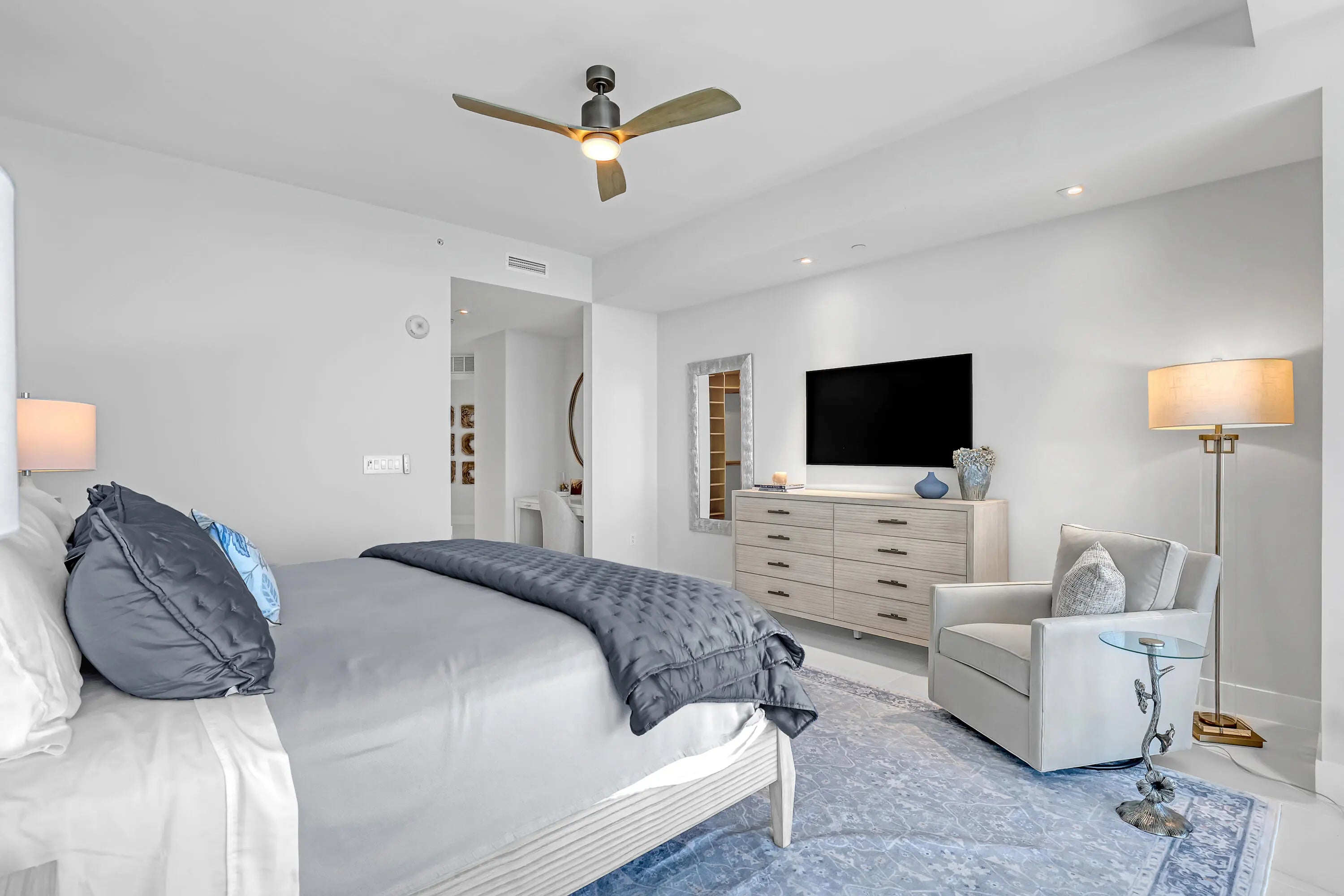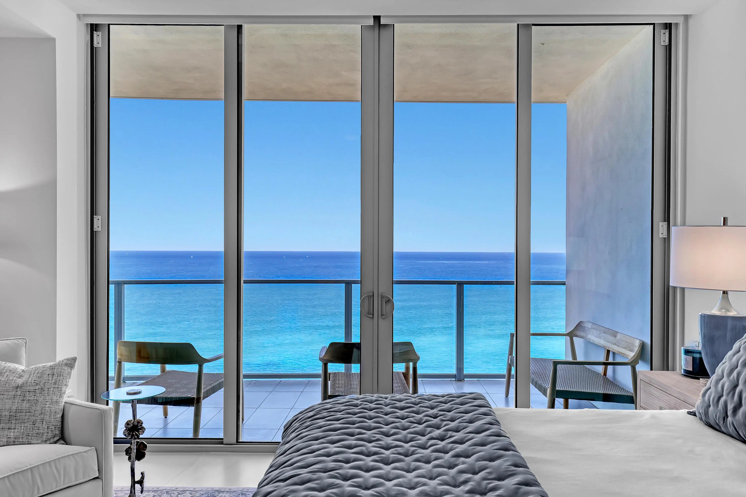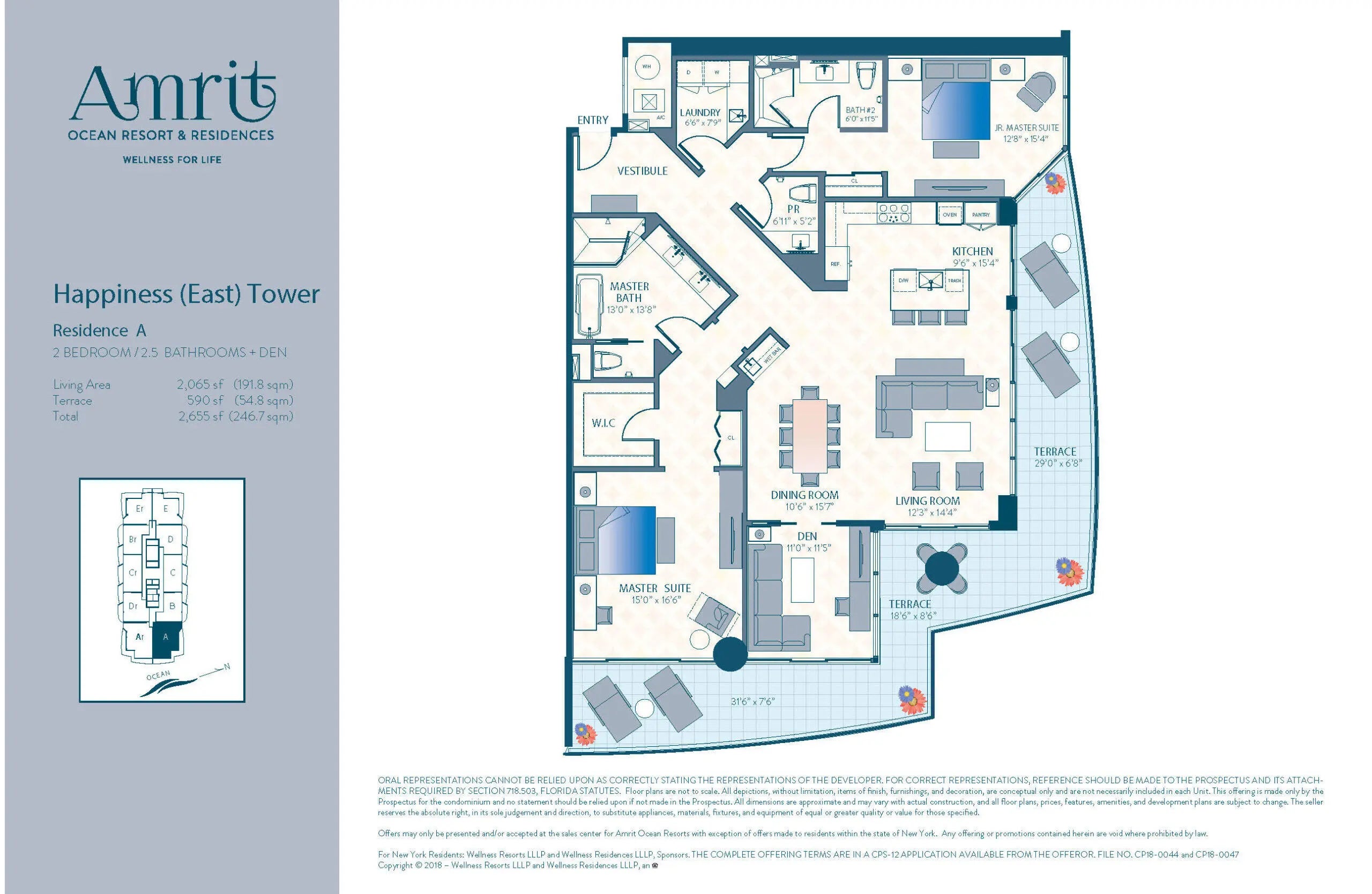 Welcome to Amrit Ocean Resort & Residences, an extraordinary oceanfront community on Singer Island where luxury living meets a world-class wellness lifestyle. This beautifully appointed 2-bedroom, 2.5-bath residence spanning 2,065 square feet offers a rare opportunity to enjoy breathtaking Atlantic Ocean views from a higher vantage point within one of South Florida's newest and most innovative resort residences. Upon entering, the home immediately opens to sweeping water views through floor-to-ceiling impact glass, filling the living spaces with natural light and connecting seamlessly to a spacious private terrace overlooking the ocean. Designed for both comfort and entertaining, the residence features a sleek European-style kitchen equipped with premium Miele appliances, quartz countertops, a wine refrigerator, and a fully integrated wet bar. Life at Amrit is centered around wellness, relaxation, and elevated resort-style service. Residents enjoy access to multiple oceanfront pools, spa pools and hot tubs, beachfront cabana service, and a serene outdoor yoga terrace overlooking the Atlantic. The property's expansive spa and wellness center offers advanced treatments and cutting-edge therapies designed to enhance health and well-being. Beyond the wellness offerings, Amrit delivers a true five-star resort experience with four on-site dining venues, 24-hour security, valet service, EV charging stations, and a fully staffed lobby with concierge services. Residents also enjoy private amenities including a heated ocean-view pool, daybed lounges, whirlpool spa, state-of-the-art fitness center, meditation garden, social lounge with bar, catering kitchen, billiards and entertainment space, private card room, and outdoor social terrace with grilling area. Don't miss this incredible opportunity to own the best residence in all of the Amrit.