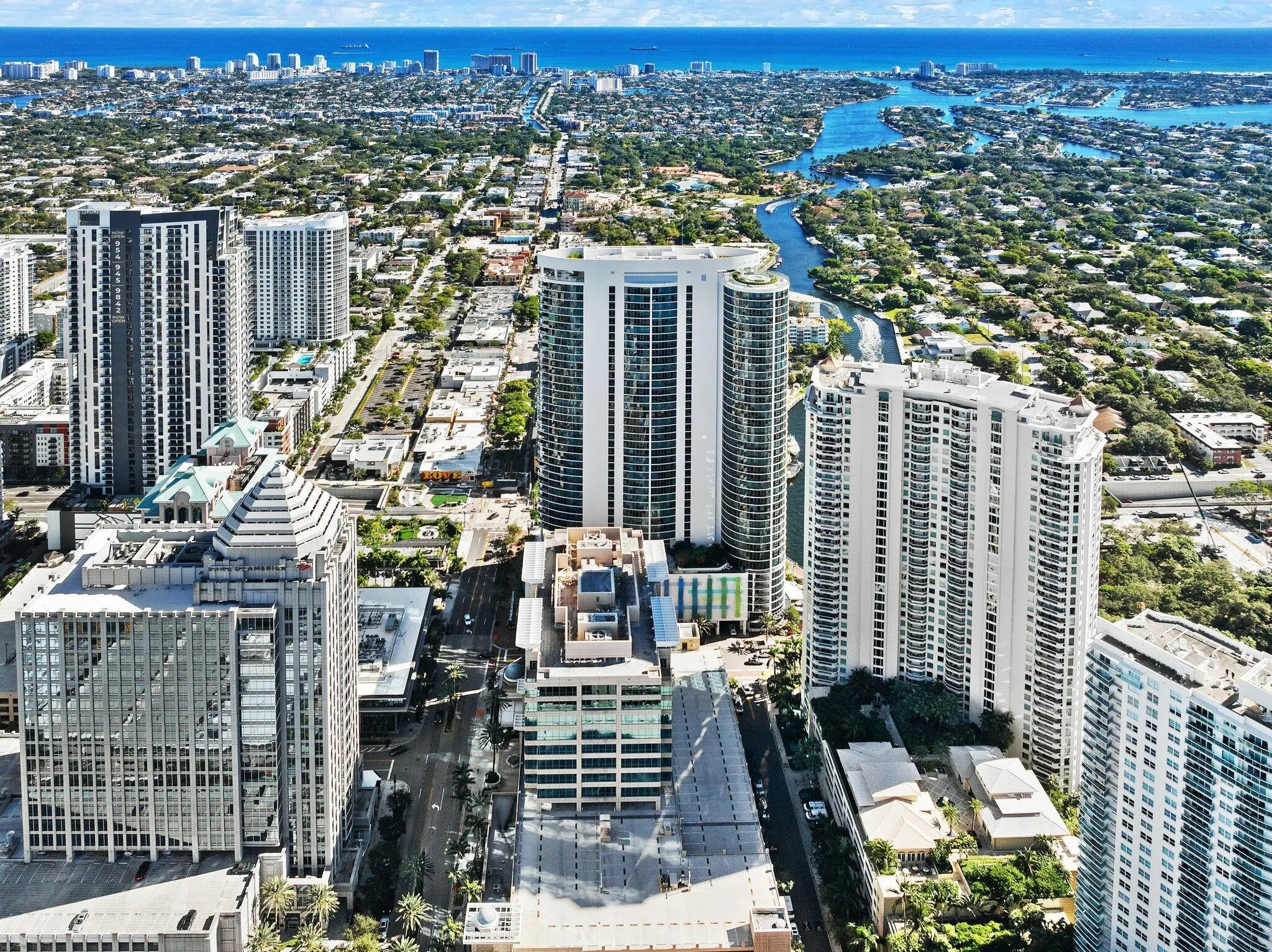 Experience vibrant city living at its finest, enjoy front row views of the boat parade right from your balcony. This completely remodeled residence features sleek white marble look porcelain tile throughout and a European inspired kitchen with modern cabinetry, marble countertops, and brand new stainless steel appliances. Elegant bathrooms boast LED lit mirrors and stylish finishes. 2 DEEDED PARKING SPACES upgrades include designer lighting,remote controlled blackout shades in the bedrooms, and custom closet buildouts. Multiple glass balconies off the kitchen, living room, & primary suite perfect for taking in the views. Full size washer and dryer. Located in a full service building offering 5-star amenities: concierge, tropical pool deck W/ hot tub, gym, business center.