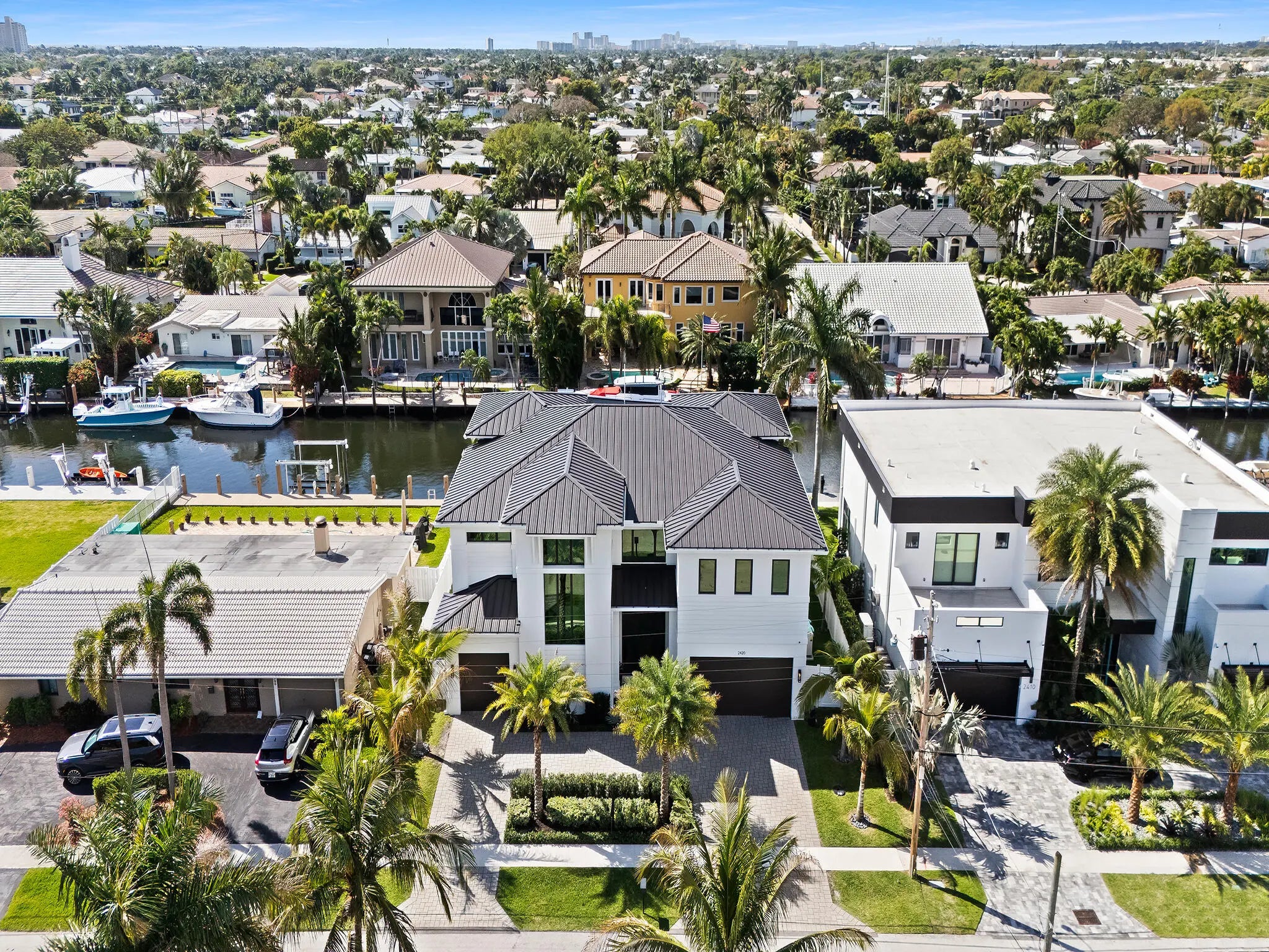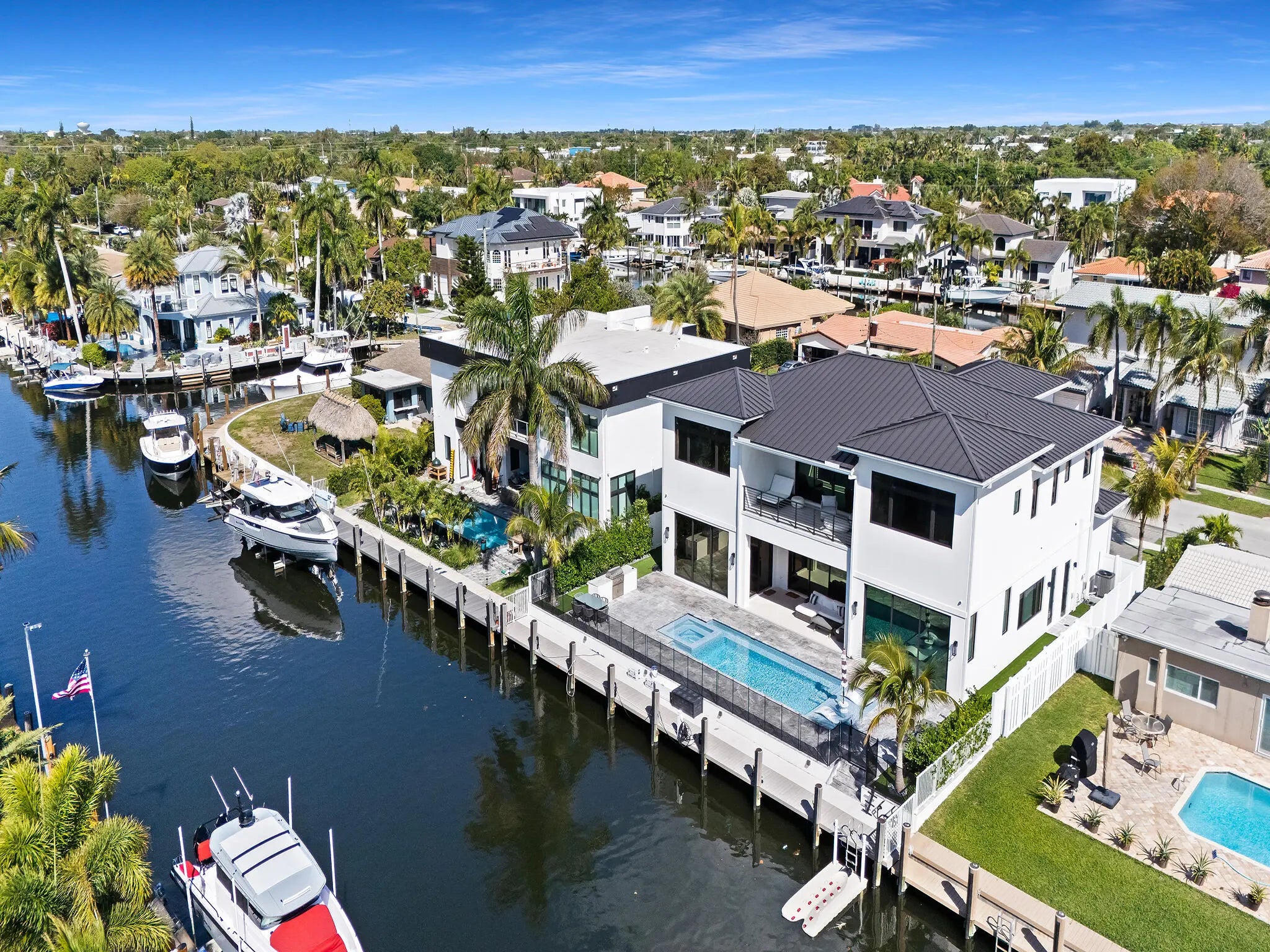 A newly built 2024 estate positioned on 80 feet of prime Lighthouse Point waterfront with no fixed bridges and direct ocean access. Offering 5,250 SF of thoughtfully designed interiors, including 5 bedrooms, 6 baths, a dedicated office, and an elevator. Walls of impact glass, tile and wood flooring, custom built-ins, and refined finishes carry throughout. Outside, the estate rivals a private resort with heated pool, spa, covered entertaining areas, built-in BBQ, and a private dock. All ready for the South Florida boating lifestyle. One of the finest waterfront values in Lighthouse Point. Schedule your private tour today.