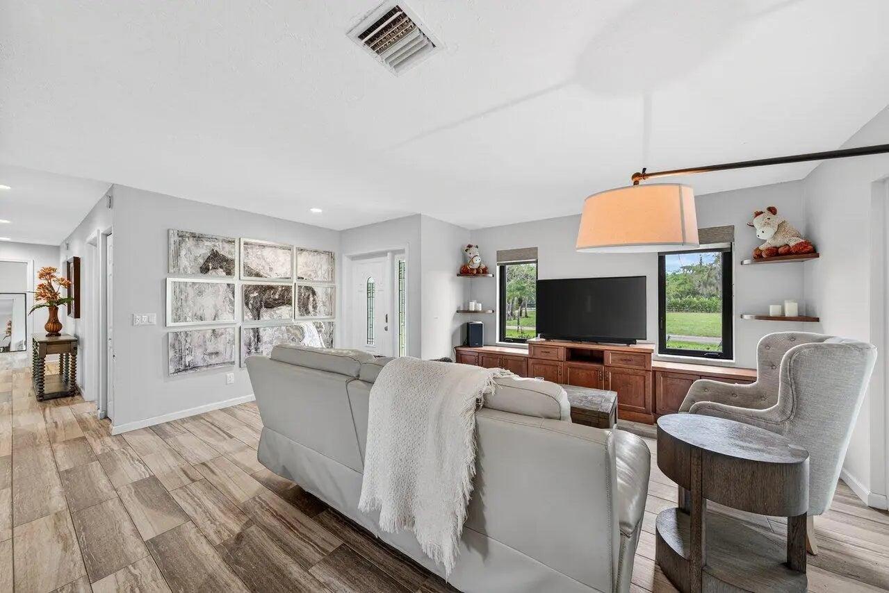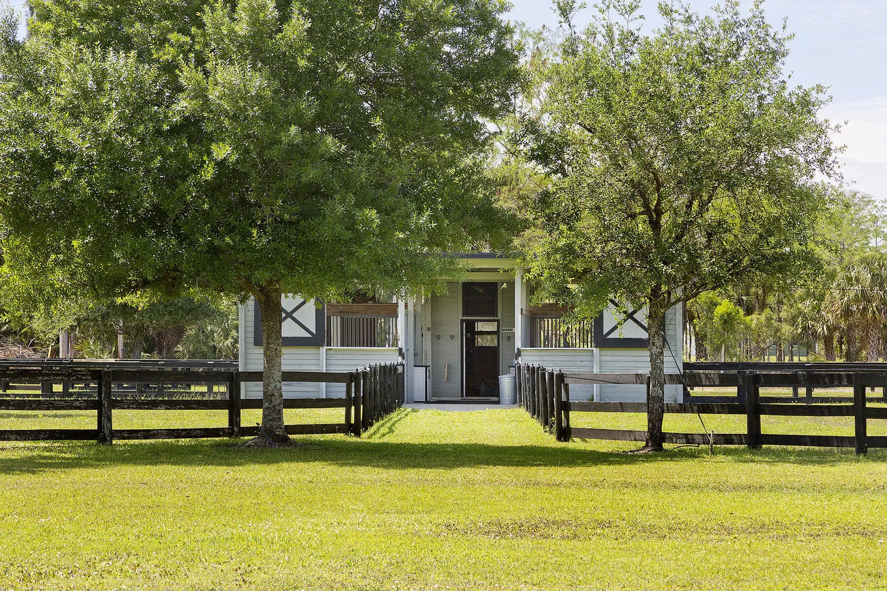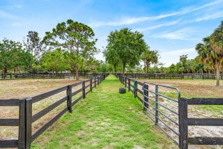 If you are seeking the ultimate in tranquility and privacy, look no further. Tucked away within the gated equestrian community of Deer Run, this exceptional 10-acre property offers a rare blend of comfort, functionality, and premier equestrian amenities. The beautifully renovated 3-bedroom, 2-bathroom home features wood-look tile flooring, granite countertops, stainless steel appliances, and impact windows and doors throughout. A large screened patio provides the perfect setting to relax and take in sweeping views of the lush, green acreage. Designed for the serious equestrian, the property is exceptionally well-equipped with an attached 6-stall barn featuring a tack room, half bath, and washer/dryer, as well as an additional 4-stall barn with tack room. Two recently added 5-stall barns, each with their own dedicated tack rooms, further enhance the functionality and flexibility of the setup. The grounds include 13 paddocks, a fully irrigated jumping field, and multiple riding arenas, highlighted by a regulation mirrored dressage arena with brand new GGT fiber footing. Additional features include full perimeter fencing, a large parking area, storage shed, and a whole-house generator. Ample space remains to expand even further if desired. A true equestrian paradise offering privacy, versatility, and top-tier amenities.
