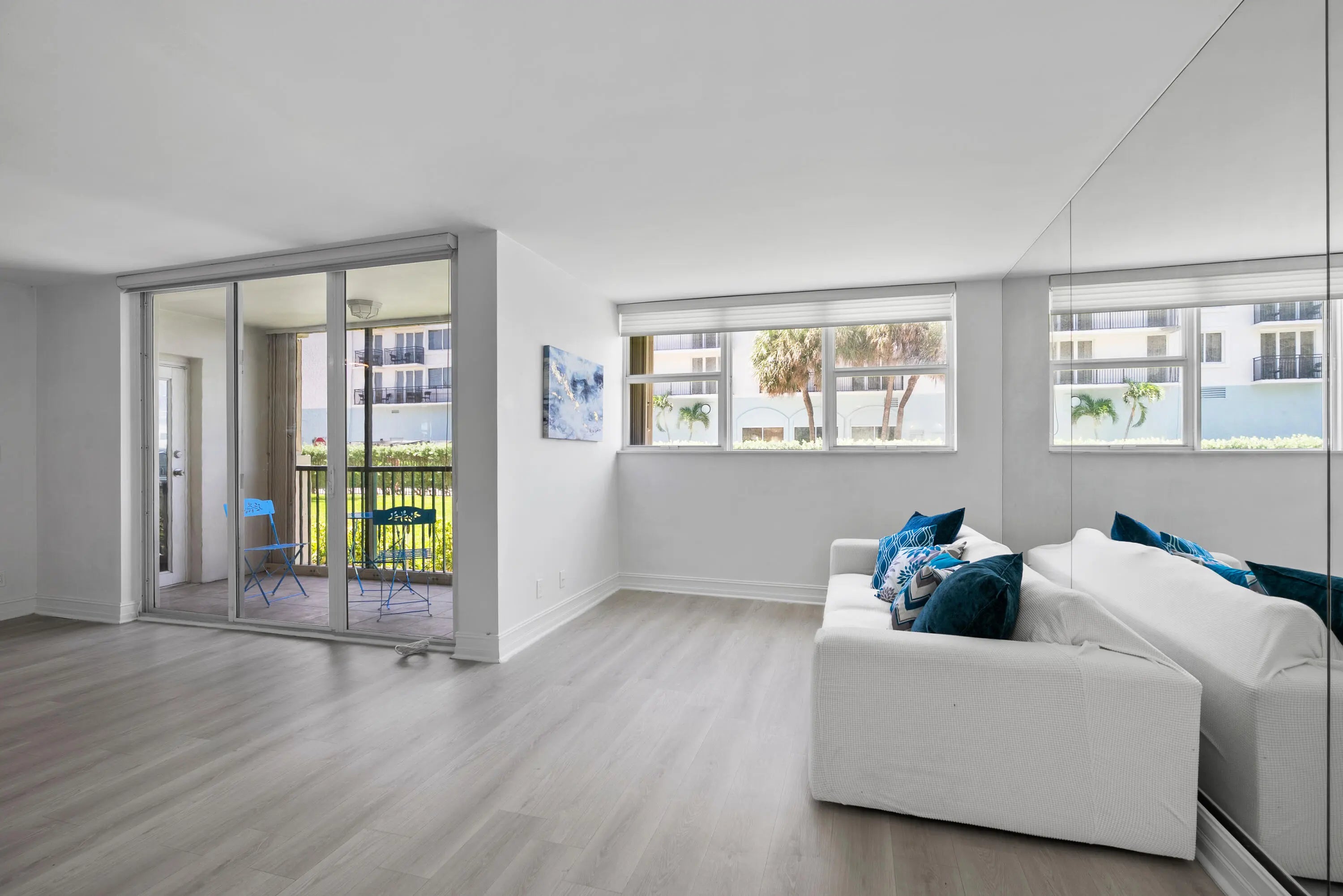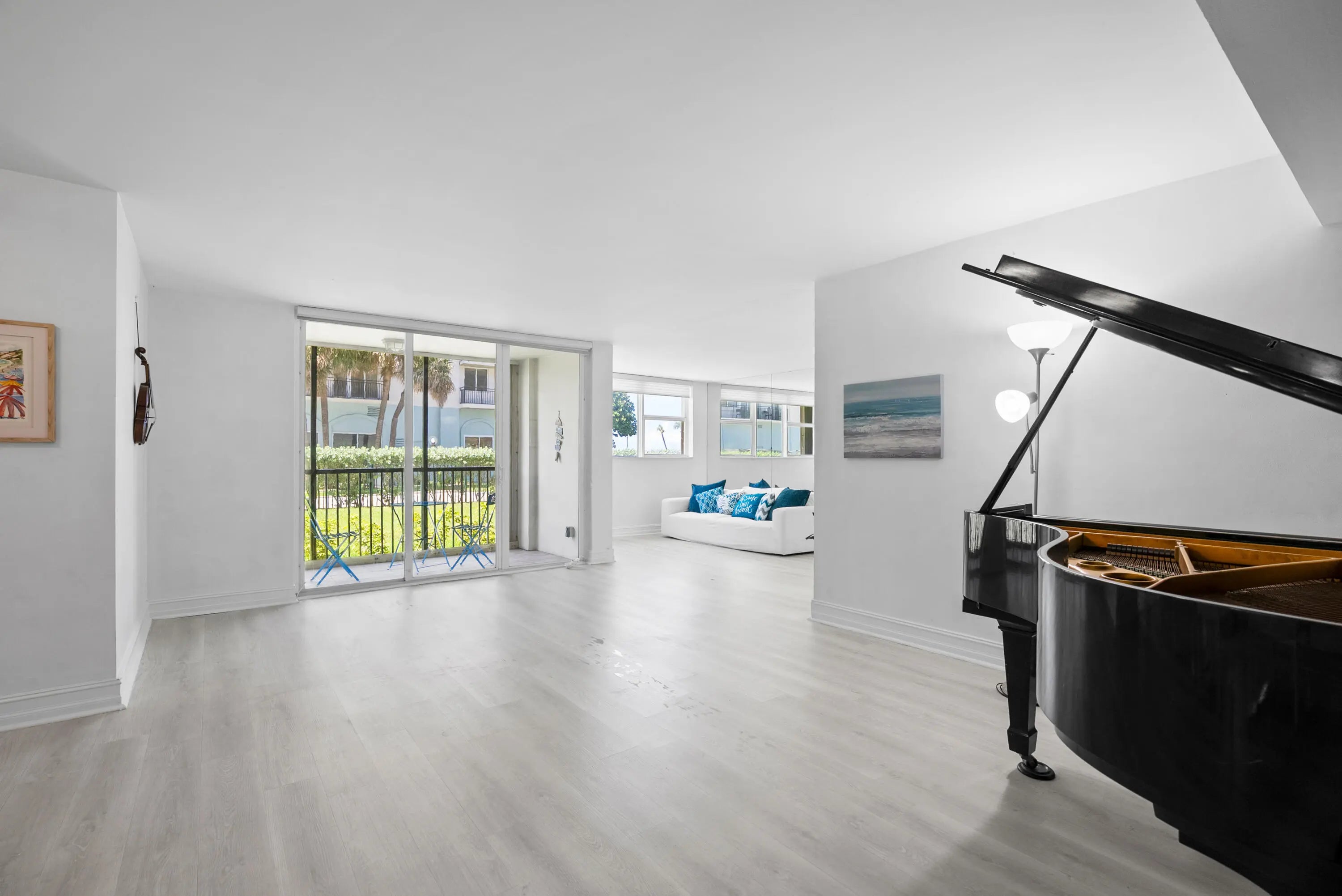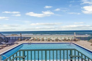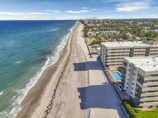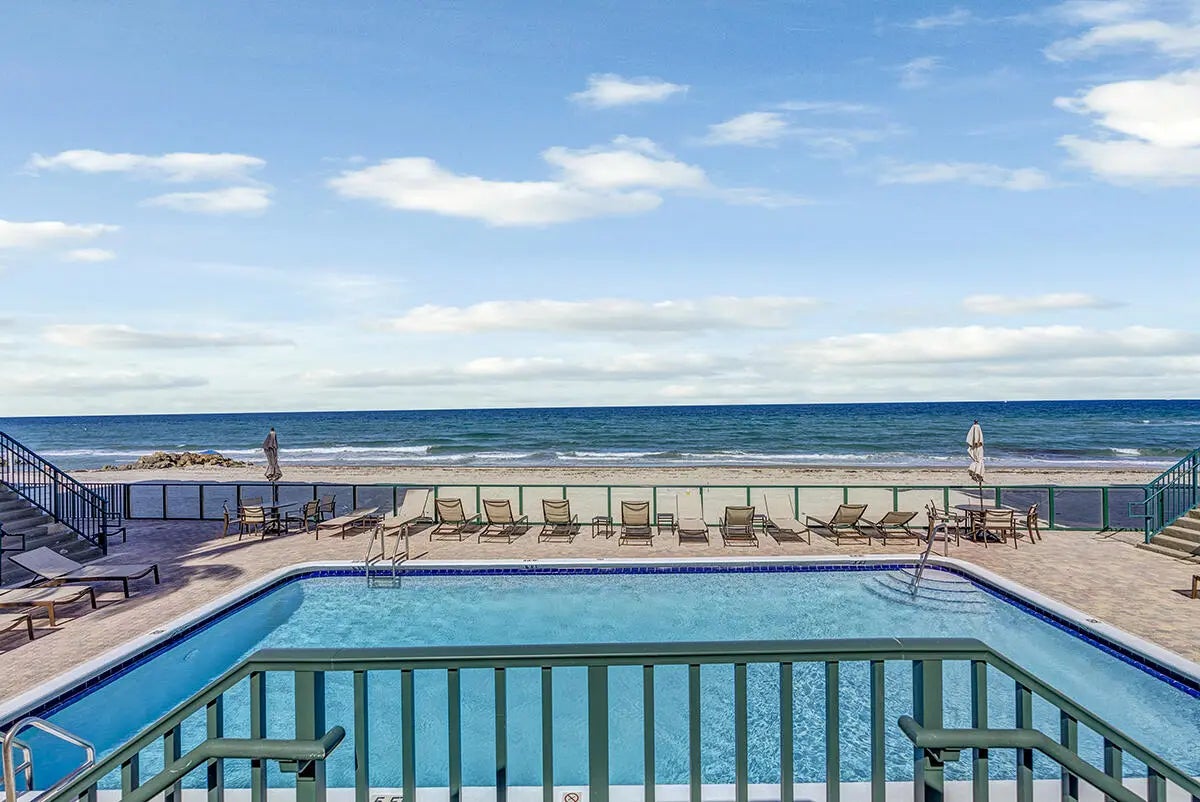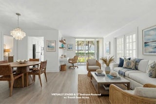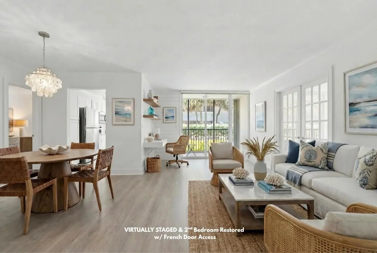Welcome to easy first-floor living in this bright, open-concept condo in Port De Mer's coveted oceanside 1239 building. Light plank flooring & soft neutral walls give this unit a clean, modern coastal feel. Enjoy a peek of the ocean & beautiful garden view from the screened patio. Original second bedroom can easily be restored, converting the unit back to a full 2/2. Kitchen features stainless steel appliances, window for natural light & patio access. Spacious primary bedroom, two large walk-in closets & updated bathroom vanities & lighting. Port De Mer is a gated, pet-friendly community w/ two pools, BBQ area, garage parking, & extra storage. The building completed all structural requirements & upgraded lobbies & elevators, owner paid assessments. Steps to Deerfield Pier, & restaurants.
