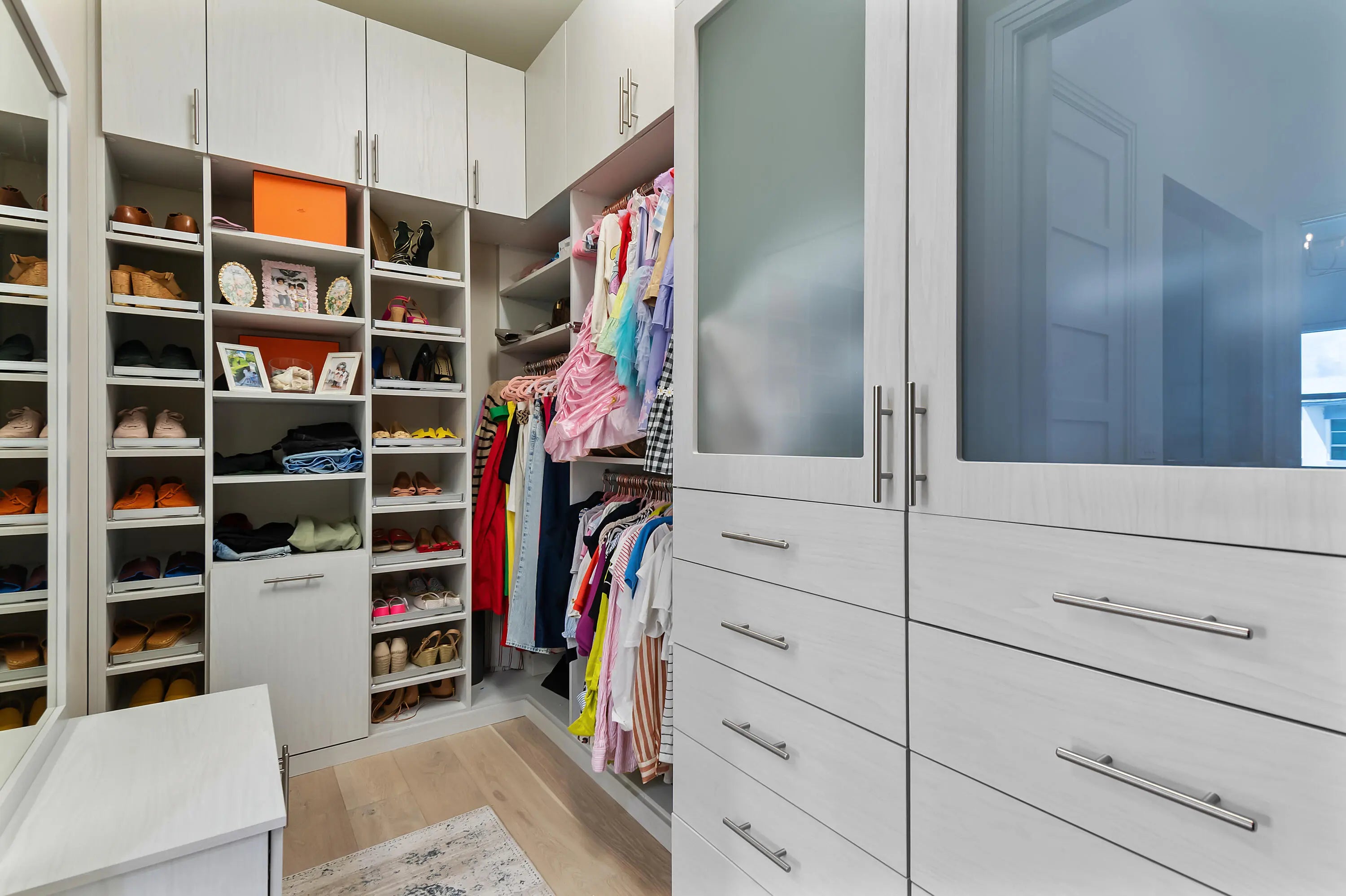 Built-in Features, High Ceilings, Kitchen Island, Pantry, Walk-In Closet(s), Bedroom Layout - Split, Closet Cabinetry, Storage