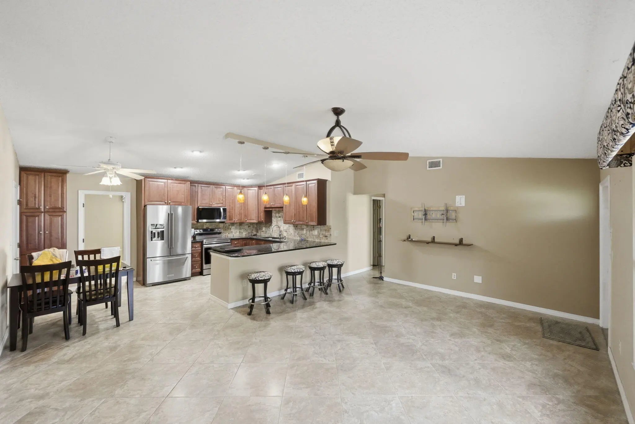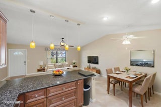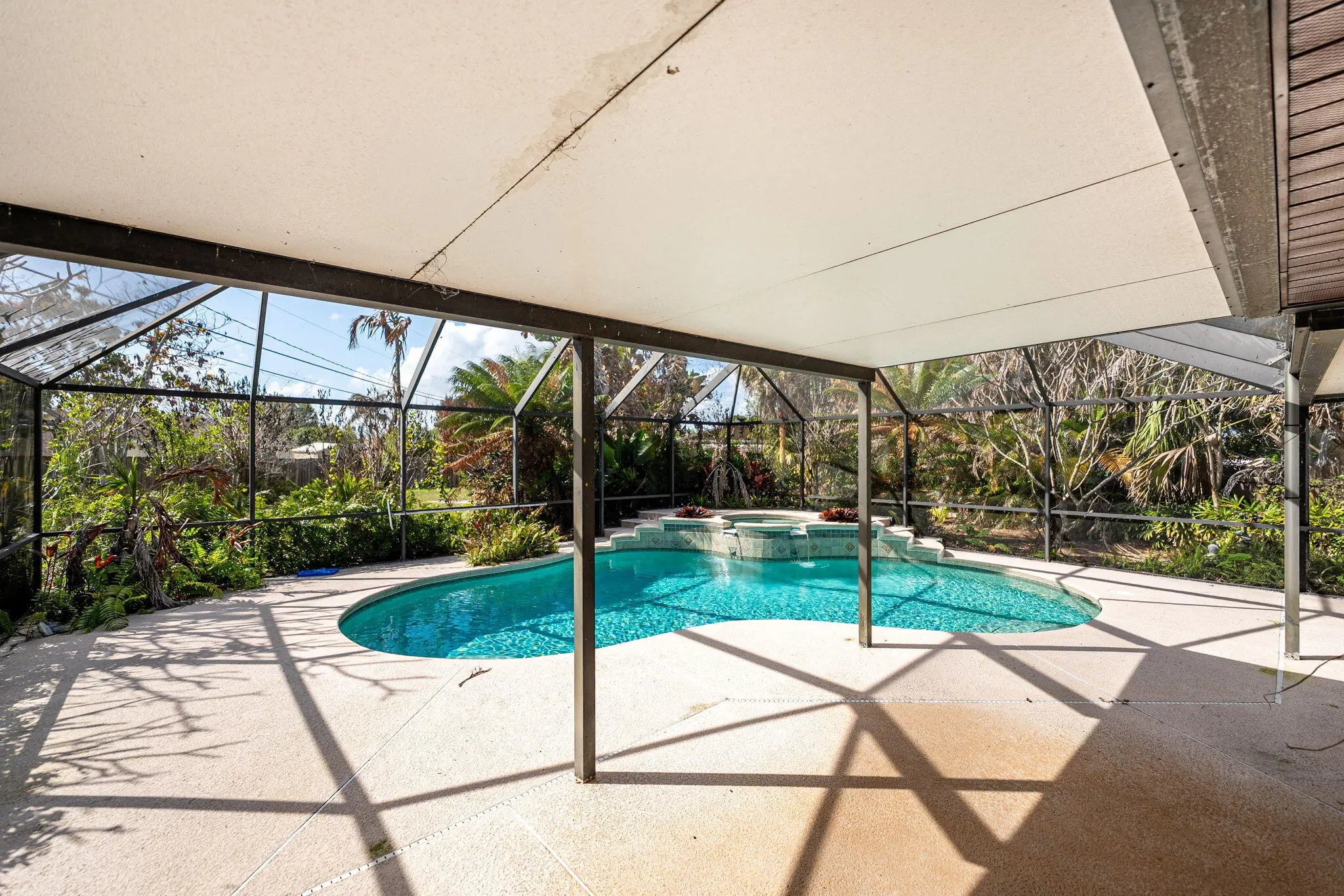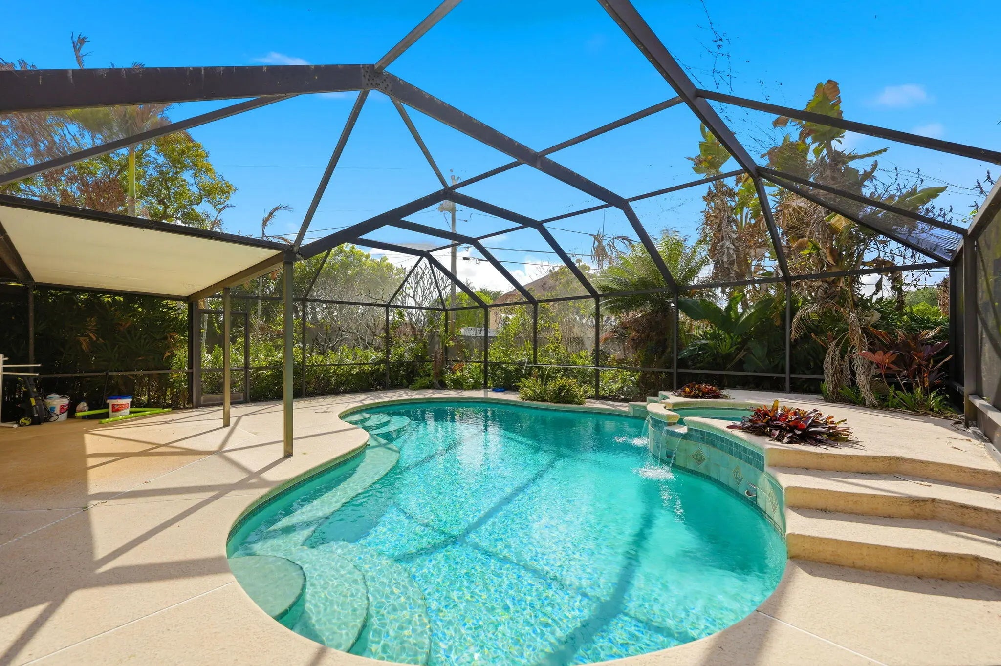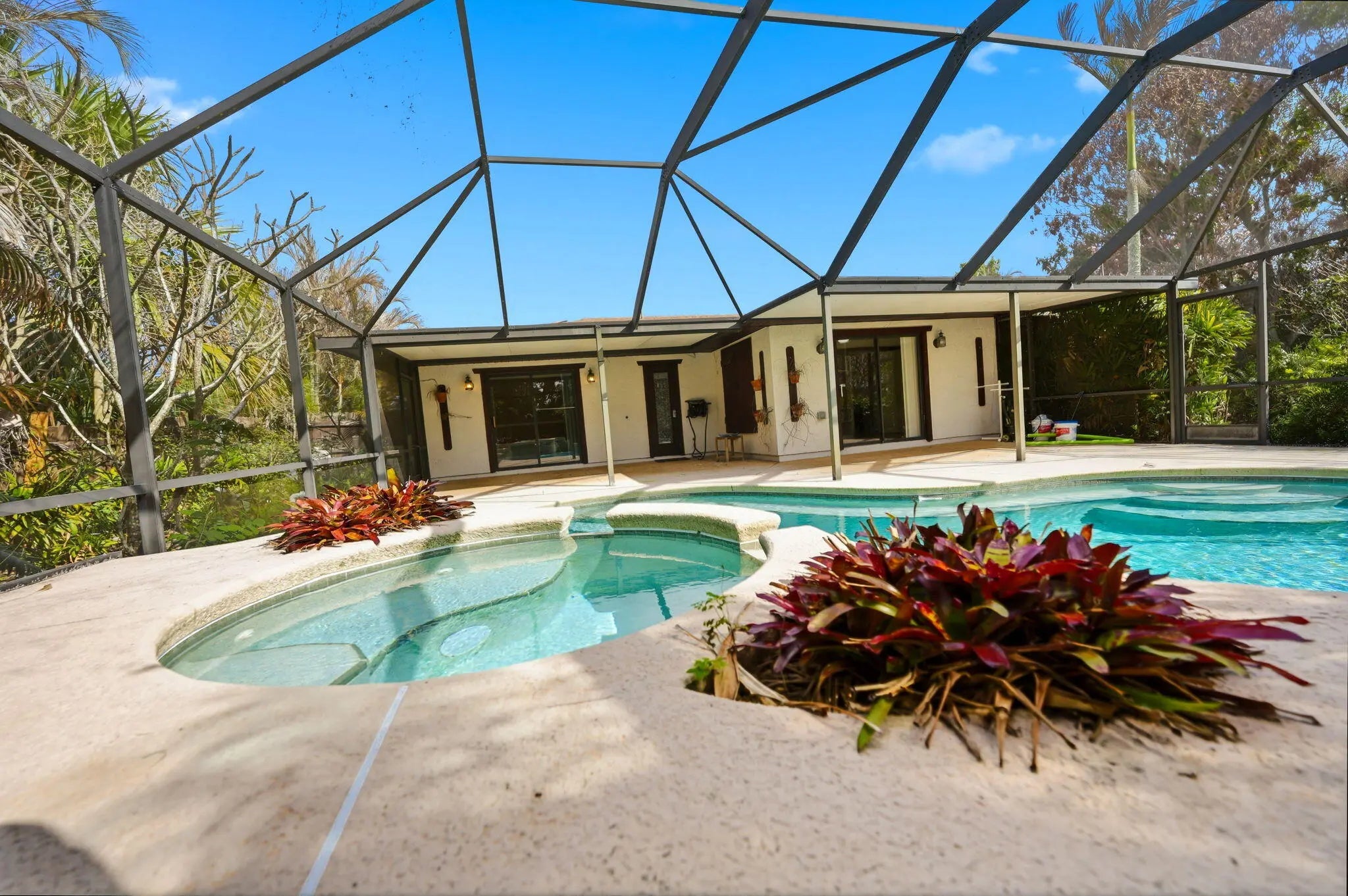 Discover this very rare 2BR/2BA ranch-style home on an oversized, half-acre corner lot in Port St. Lucie! The home features a beautiful granite kitchen with wood cabinets, stainless steel appliances, and a breakfast bar. Spacious open layout with vaulted ceiling, living room, dining, and a large family room/office with a built-in. Beautiful low-maintenance tile flooring throughout! Great outdoor space with a screened pool, raised spa w/ waterfall, porch, and patio, perfect for entertaining! The pool has a caretaker system for easy cleaning. Very rare and hard-to-find half-acre lot, fully fenced, with a s double gate, workshop, and a large backyard. Plenty of room for a boat or an RV. Beautifully landscaped with fruit trees & palms. ROOF replaced in 2023! Washer & dryer included. City water/sewer. No HOA fees! Conveniently located near parks, shopping, dining, I-95, and the Florida Turnpike.
