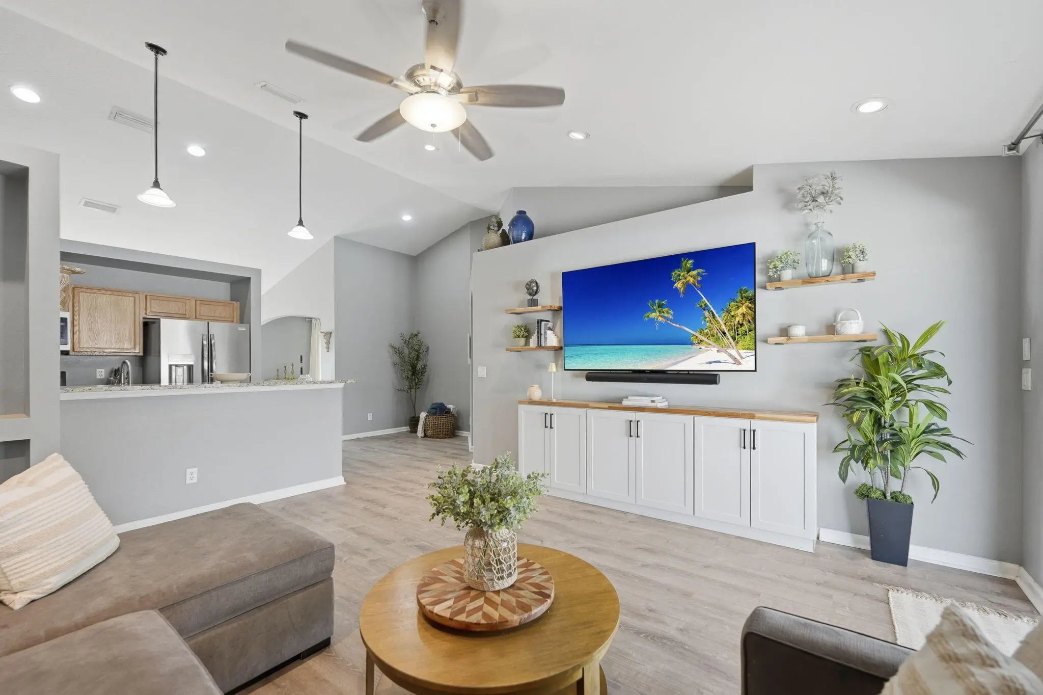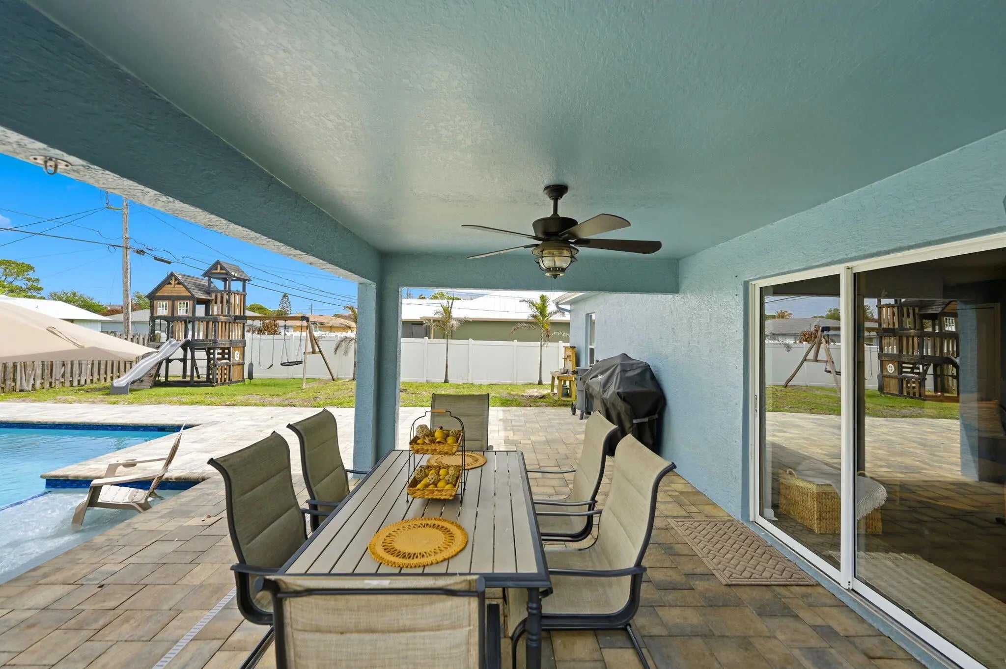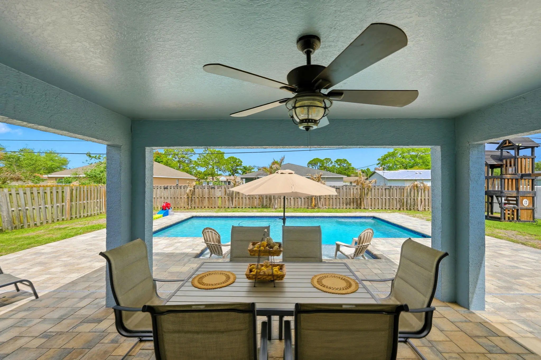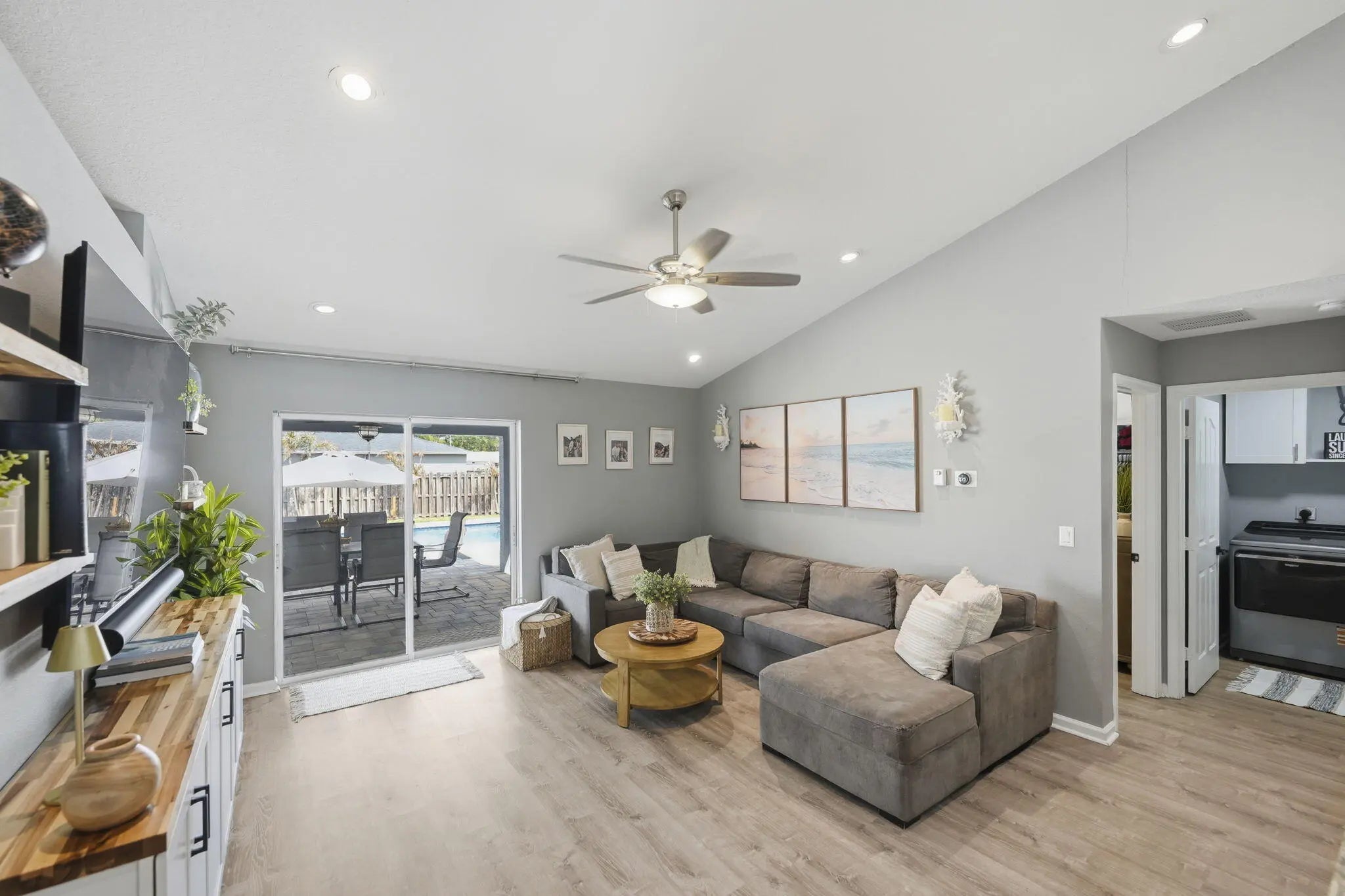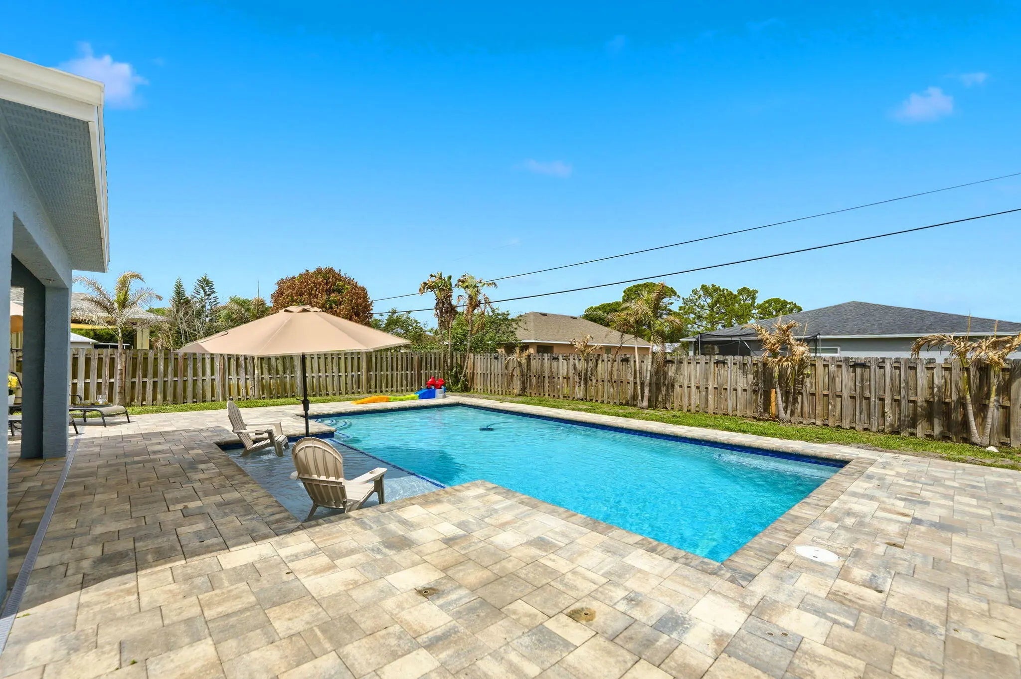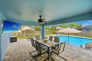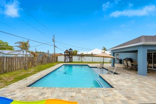 Welcome to your Florida dream home, where outdoor living takes center stage! Situated on a spacious .23-acre lot, this beautifully maintained 3-bedroom, 2-bath CBS home offers the perfect blend of comfort, upgrades, and resort-style living. Step outside to your NEW saltwater pool featuring a generous 15x30 design with an oversized 8x12 sun shelf, perfect for lounging, entertaining, and soaking up the Florida sunshine. The fully fenced backyard with lush landscaping and a safety gate offers both privacy and peace of mind, making it ideal for families, pets, and hosting unforgettable gatherings. Inside, you'll find thoughtful updates throughout, including custom built-ins in the living room, a beautifully renovated guest bathroom with a new vanity, tub/shower, and flooring, plus a completely updated laundry room with new flooring, shelving, and washer/dryer. Major upgrades provide confidence and value, including a brand-new roof (March 2026), A/C (2025), and water heater (2018). The home also offers NEW impact windows and front door, with shutters for the remaining openings, and fresh exterior paint (November 2024) for added curb appeal. This property truly checks all the boxes for Florida living: a large backyard, a new pool, and plenty of space to relax, entertain, bring ALL your toys, and enjoy the outdoors year-round.