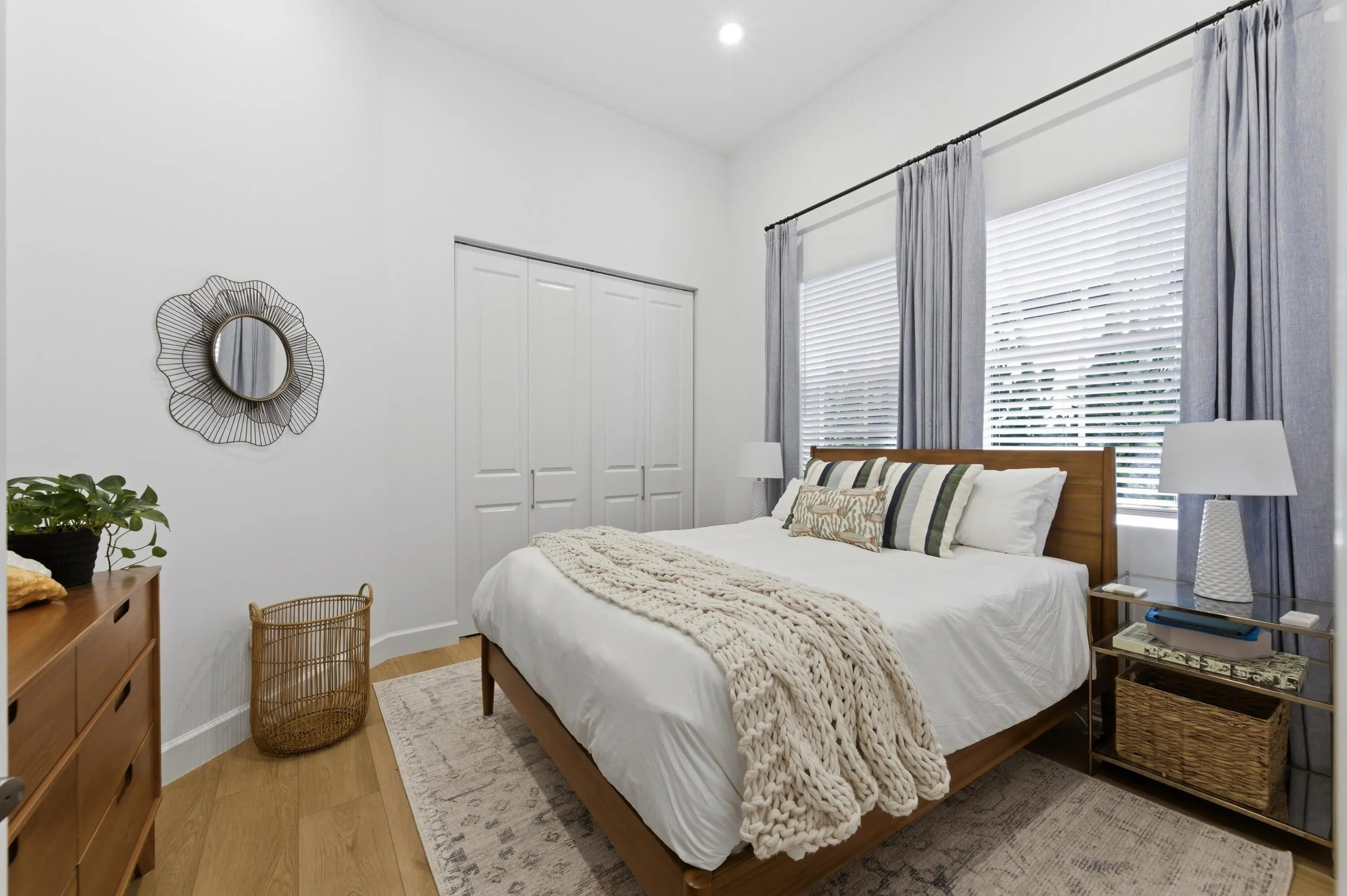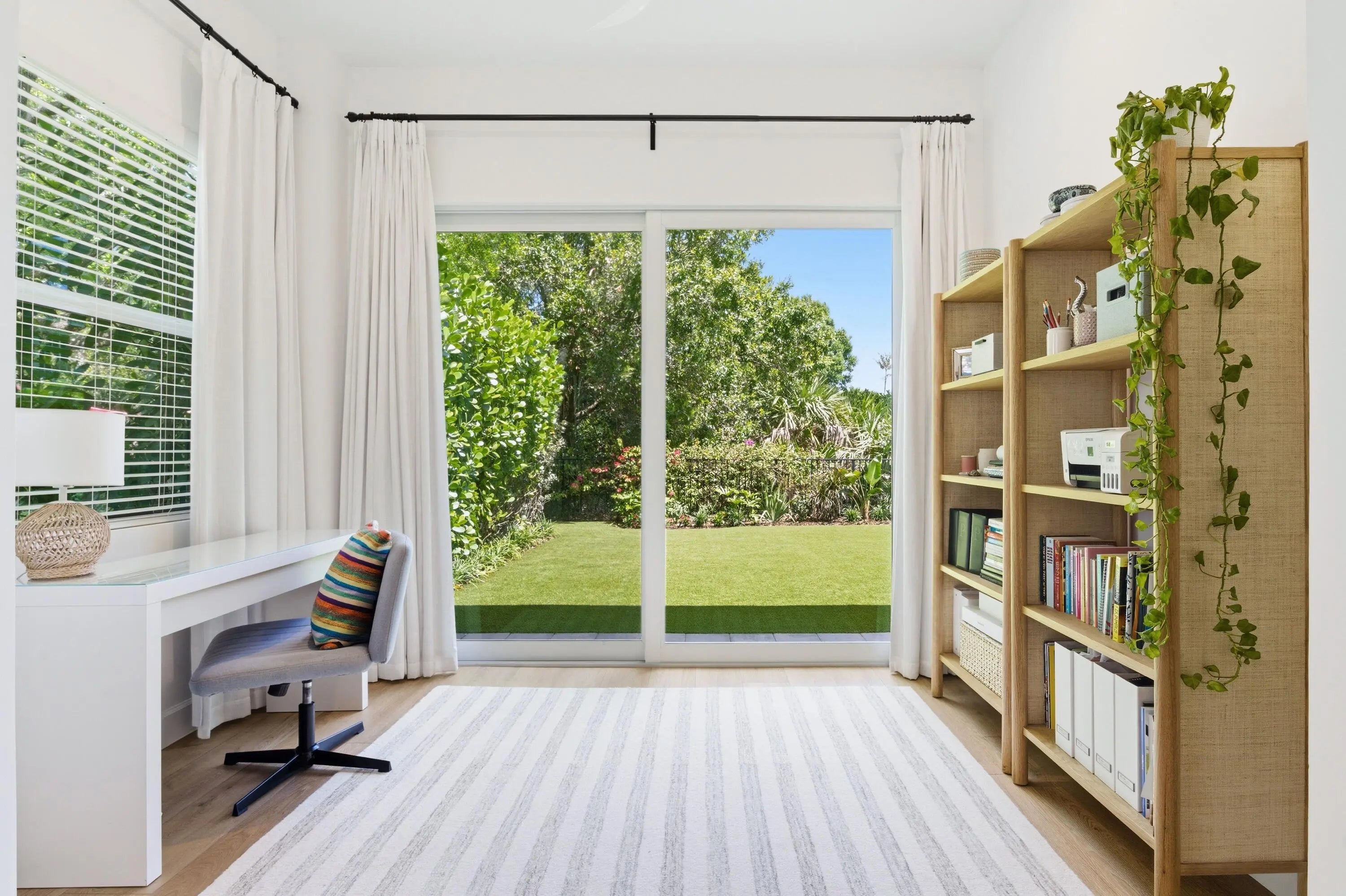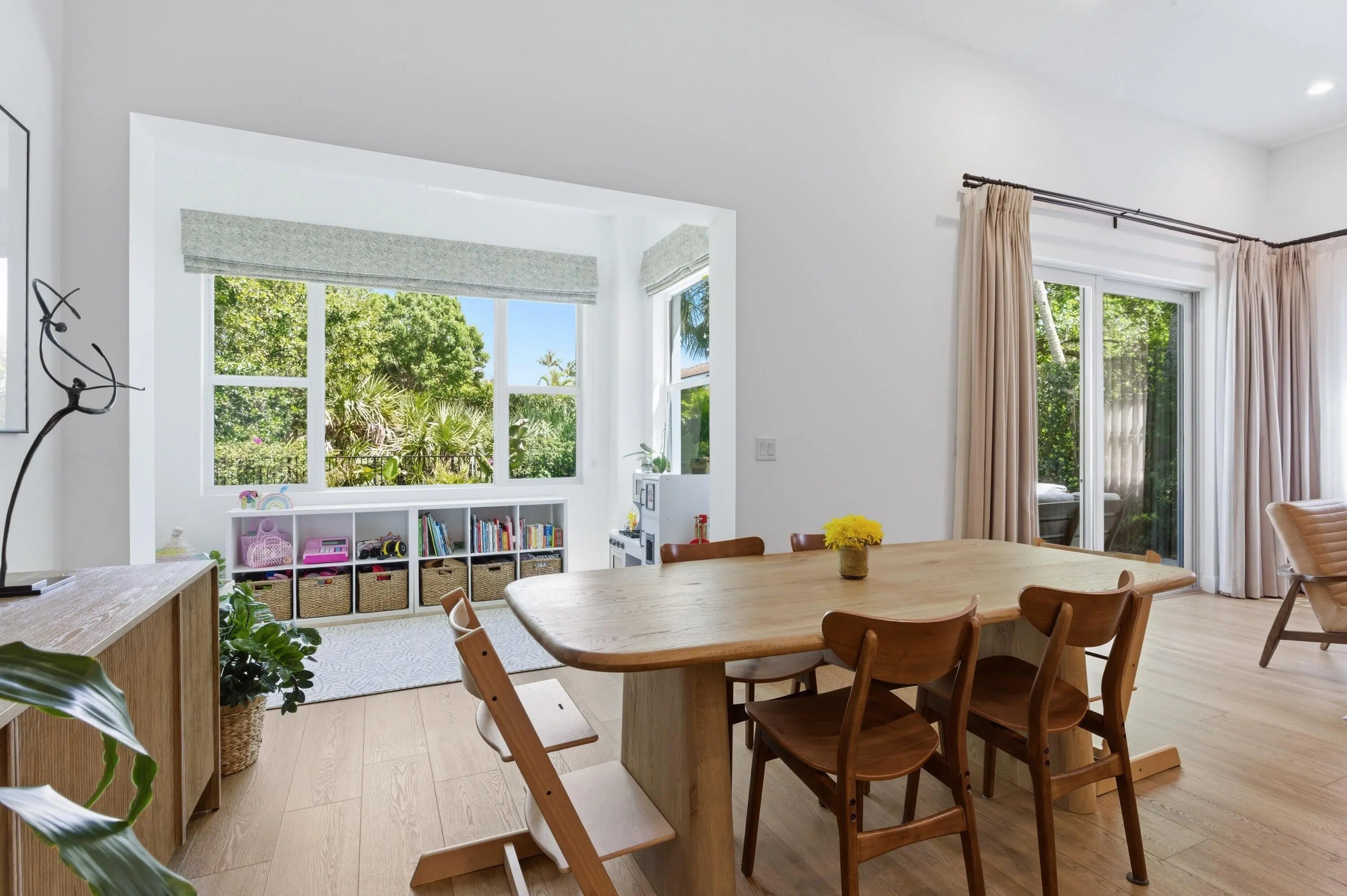 Welcome to this stunningly reimagined 3-bedroom, 2-bath residence with a 2-car garage, where elevated design meets effortless Florida living. Featuring a brand-new roof and soaring ceilings, this light-filled home is designed to feel open, airy, and inviting from the moment you walk in. Located within the highly desirable gated community of Evergrene, this immaculate home has been completely transformed with intention and style. The thoughtfully redesigned layout now includes a third bedroom along with versatile flex spaces perfect for a home office, fitness area, or additional lounge. Step inside to discover Hewn luxury wood-look laminate flooring, designer lighting, and custom window treatments that elevate every detail. The show-stopping kitchen is the heart of the home, featuring quartz countertops, a spacious center island with double stainless steel undermount sinks, a reverse subway tile backsplash, premium stainless steel Fulgor appliances, and a wine cooler—crafted for both everyday living and effortless entertaining. The open dining area flows seamlessly into a sun-drenched sunroom overlooking the backyard, enhancing the home's bright and inviting ambiance. A dedicated laundry room with front-load LG appliances and generous storage adds convenience and functionality. The expansive primary suite is a true retreat, offering private backyard access, dual walk-in closets with custom built-ins, and a spa-inspired en-suite bath complete with a soaking tub, separate shower, water closet, and double vanity. Two additional guest bedrooms share a beautifully updated bath with a tub/shower combination. Step outside to your own private oasis—a fully fenced, turfed backyard surrounded by lush tropical landscaping, featuring a covered patio with awning and tranquil preserve views for ultimate privacy. Just steps from the clubhouse, enjoy resort-style amenities including a fitness center, game room, billiards, basketball and pickleball courts, putting green, and a spectacular pool area. This home is completely move-in ready, impeccably upgraded, and truly one-of-a-kind—a rare opportunity to own a refined slice of paradise in Evergrene.