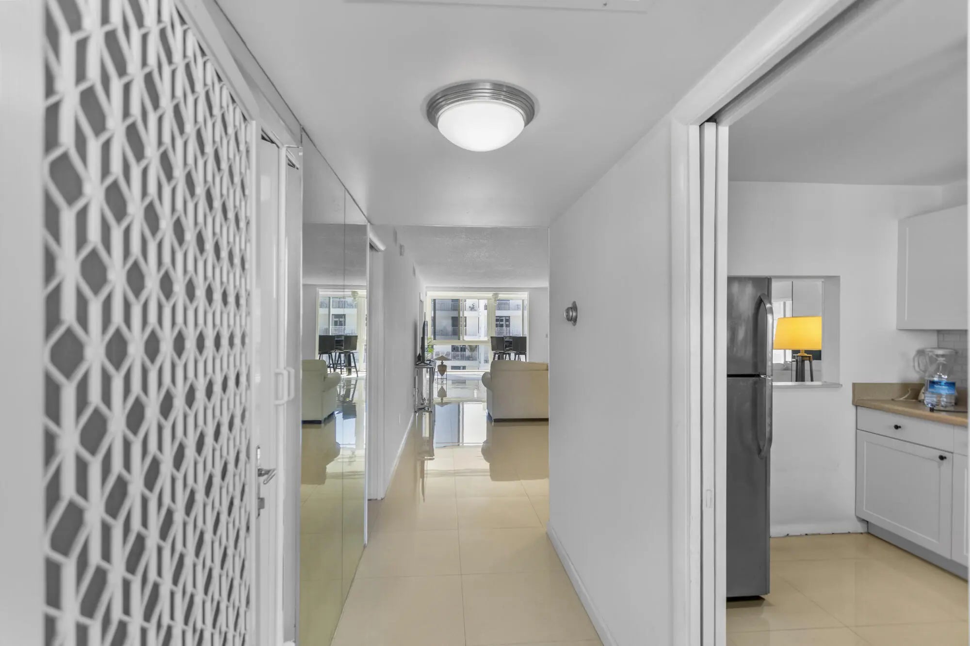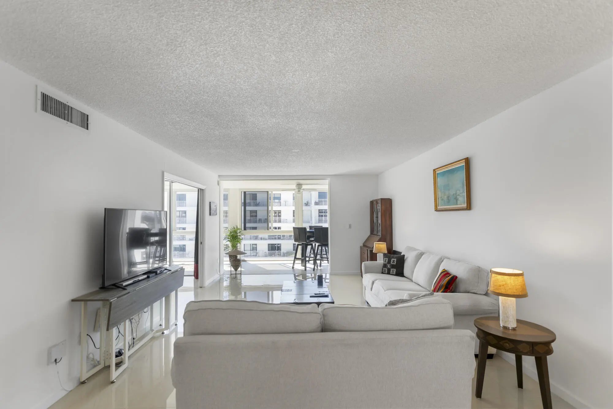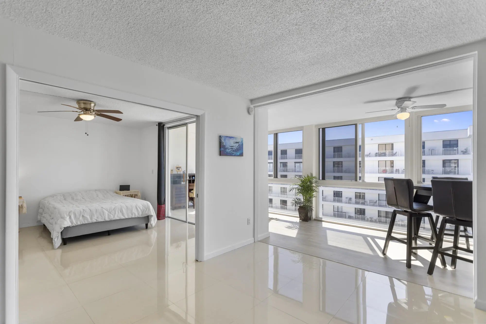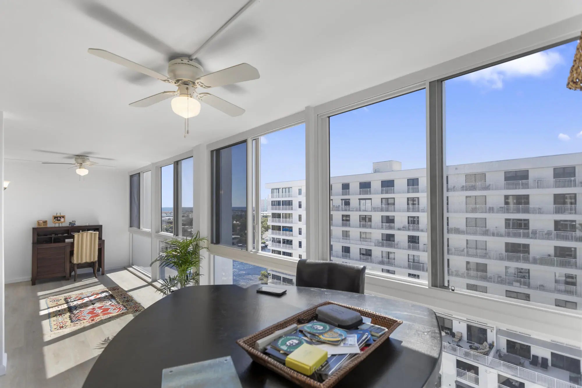 Amazing high floor, southern exposure, large 2/2 condo with floor to ceiling impact windows overlooking the canal below, downtown to the southwest and the ocean in the distance above 3 story height restricted, Lauderdale By The Sea. Porcelain floors, two walk-in closets, and each bedroom having an ensuite bathroom. Garage parking, fiber optic internet and television service through Hotwire included in the maintenance. 2 pets under 15 lbs are welcome. Super solid building with concrete block walls between every unit. New roof. Amazing walkability to 3 direct Intracoastal restaurants and just over the bridge from Lauderdale By The Sea.