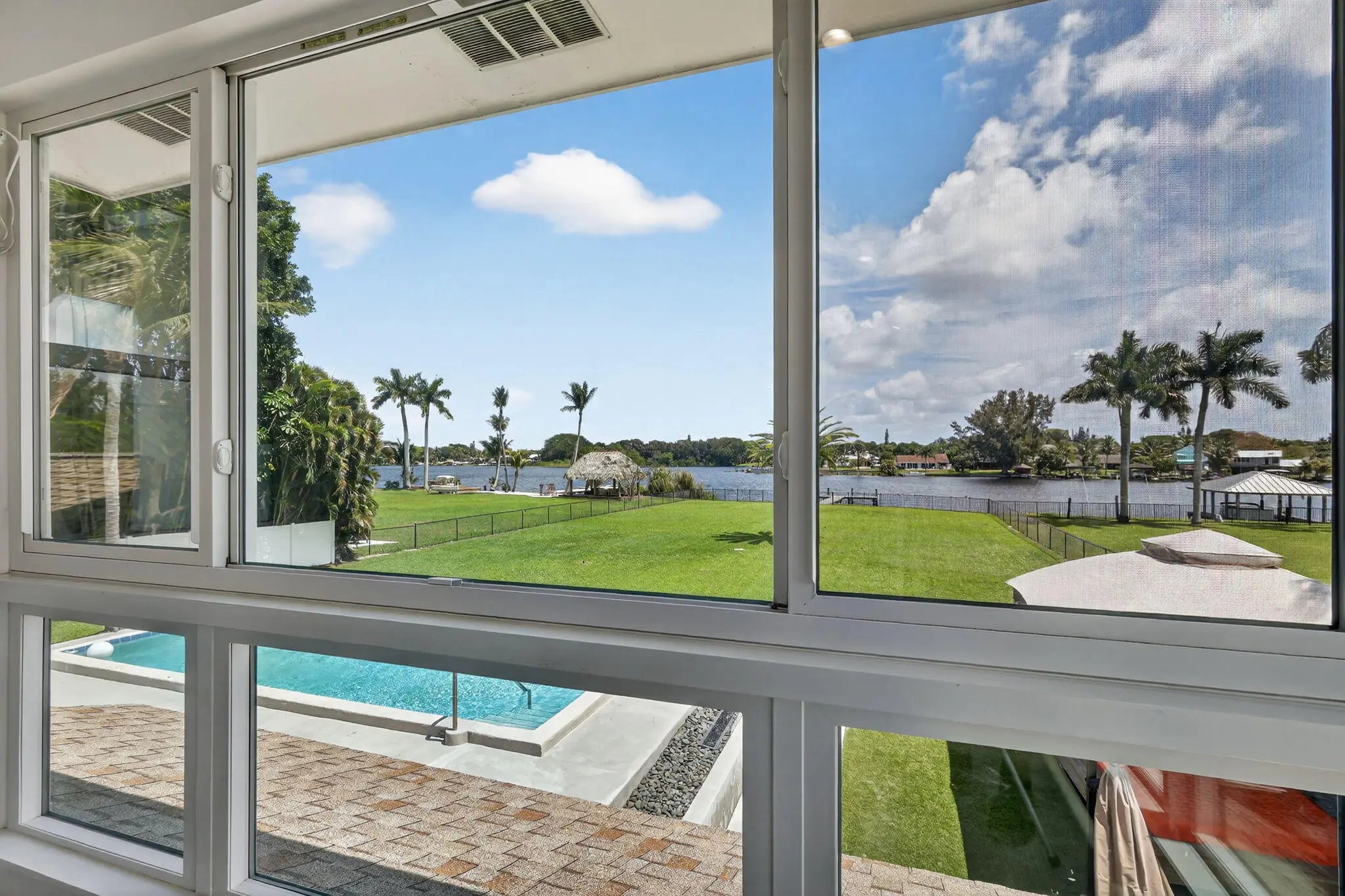 Enjoy the lake life this gorgeous recently updated 3 bed 2 bath 2 car garage on Lake Osborne. Perfect for entertaining on nearly 1 acre of fully fenced and gated privacy, this sanctuary boasts 102 feet of water frontage with a boat dock and breathtaking views from every room. This professionally landscaped exterior features just under an acre of land, a newly surfaced circular driveway, professional landscape lighting, a massive back yard and plenty of room for an RV. Interior features hurricane impact windows, whole home audio, a new kitchen with waterfall quartz counters with high-end appliances, redone bathrooms and luxury flooring. The entire second floor is dedicated to the primary suite, offering stunning sunrises, custom built in cabinets and much much more. Call for a showing now!