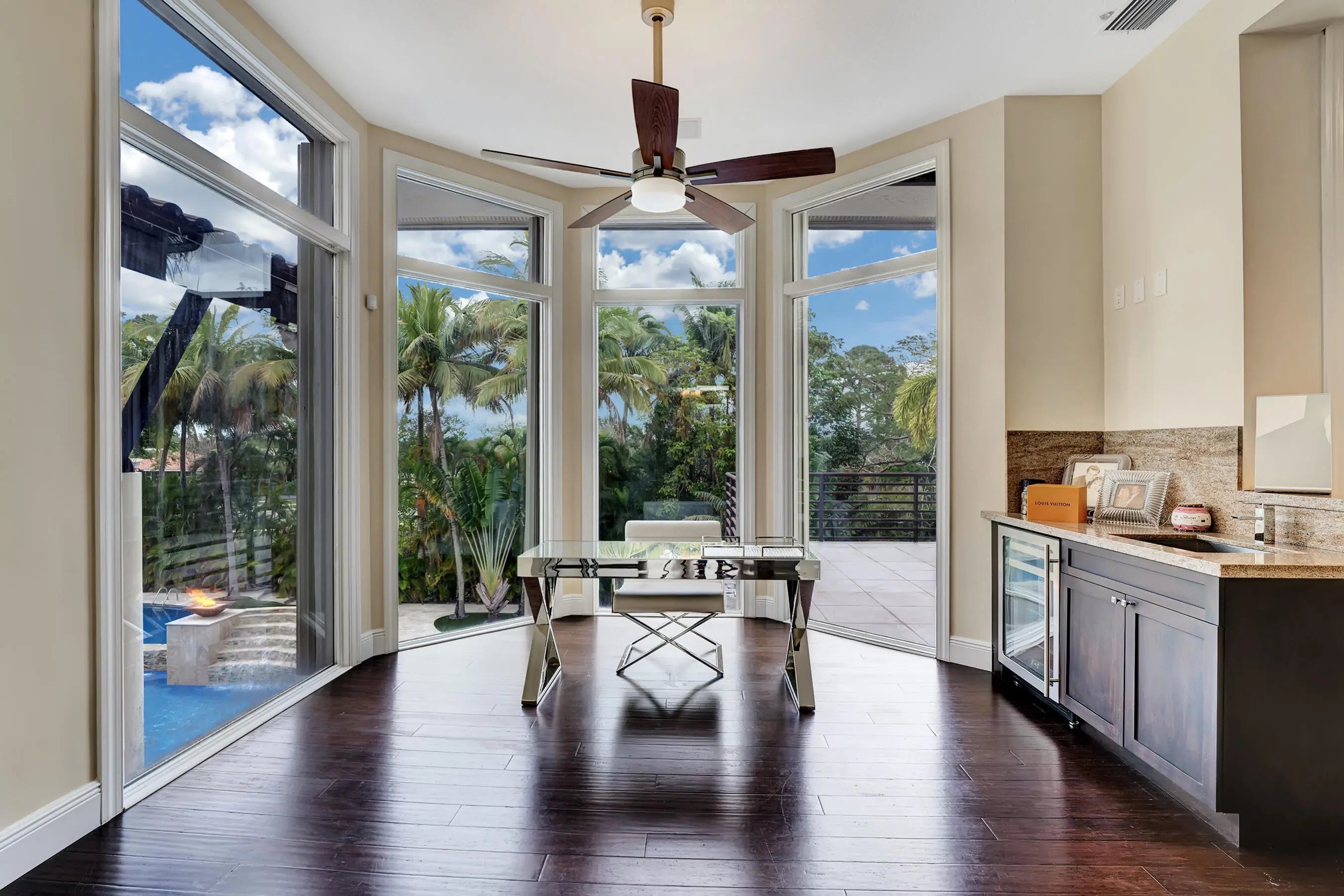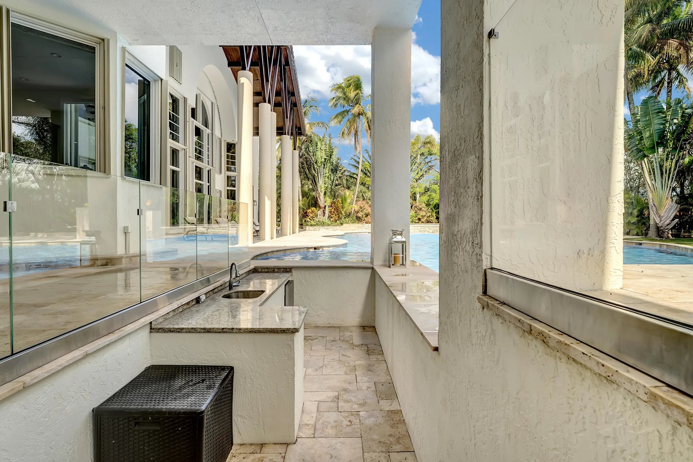 Magnificent mixture of mid-century modern and contemporary architectural masterpiece, 11,794 total square feet on 2.2 acres of private gated compound. Walk in the foyer to dramatic 30 foot ceilings and a 600 gallon jellyfish tank. Hi-end stainless steel appliances, gourmet kitchen, granite countertops, hardwood & marble floors throughout the living area! Large den, office & recreation room. Very nice in-law quarters completely separate from the main house with a full kitchen. The main attraction is the 140,000 gallon swimming pool, jacuzzi with waterfalls with a fire feature, & a swim-up bar. Large windows everywhere, sun filled in every room. Private patios w/ views of pool, land, basketball court, and much more. If you love to entertain this is the home for it, it is your own resort! 441 TO HOLMBERG HEAD WEST TO NW 62 TER - END OF THE STREET ON THE RIGHT.