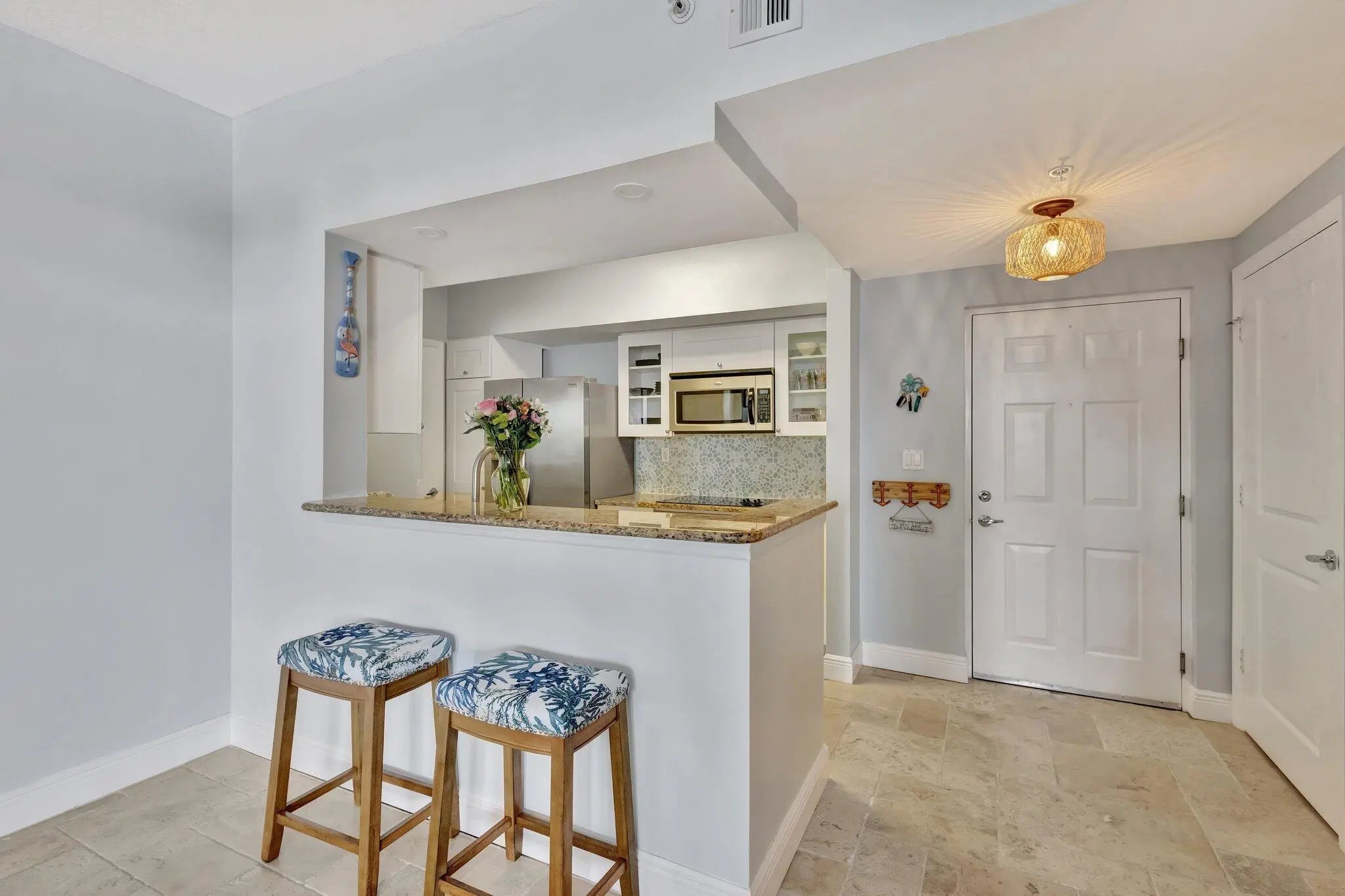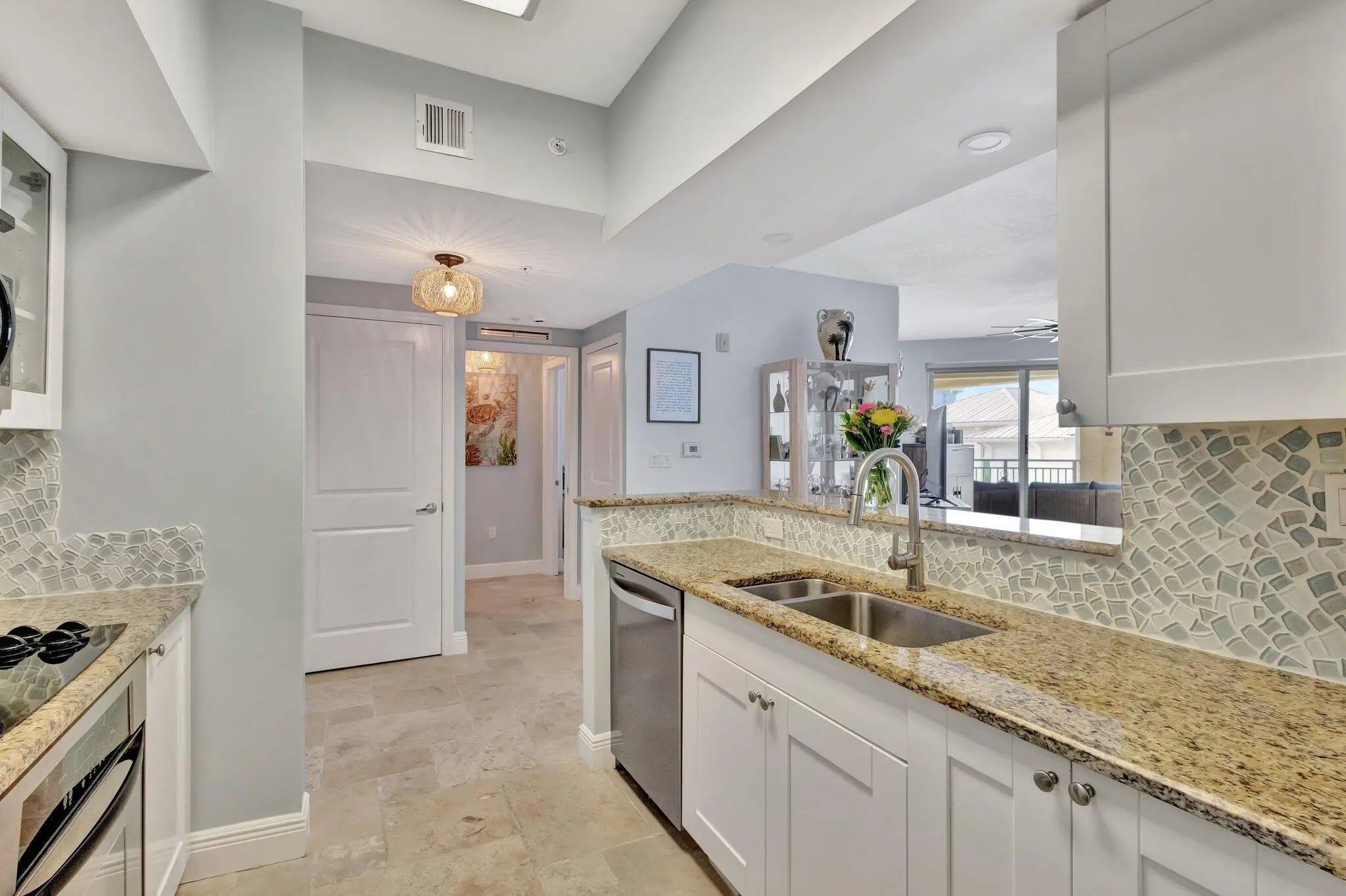 Enjoy elevated waterfront living at The Harborage Yacht Club & Condos in this beautifully furnished, turnkey 2-bedroom, 2-bath penthouse. Perfectly positioned in Building 1—just steps from the pool and clubhouse—this residence captures breathtaking sunrise views from its private balcony. Inside, you'll find a thoughtfully designed layout featuring a large walk-in closet in the primary suite, impact windows, a relaxing soaking tub, granite countertops, and stainless steel appliances. The secure, gated building offers covered parking and convenient elevator access. Indulge in a true resort-style lifestyle with amenities that include two pools, a hot tub, fitness center, sauna, steam room, billiards, a poolside café, and on-site dining at Tidehouse and Latitude 26.