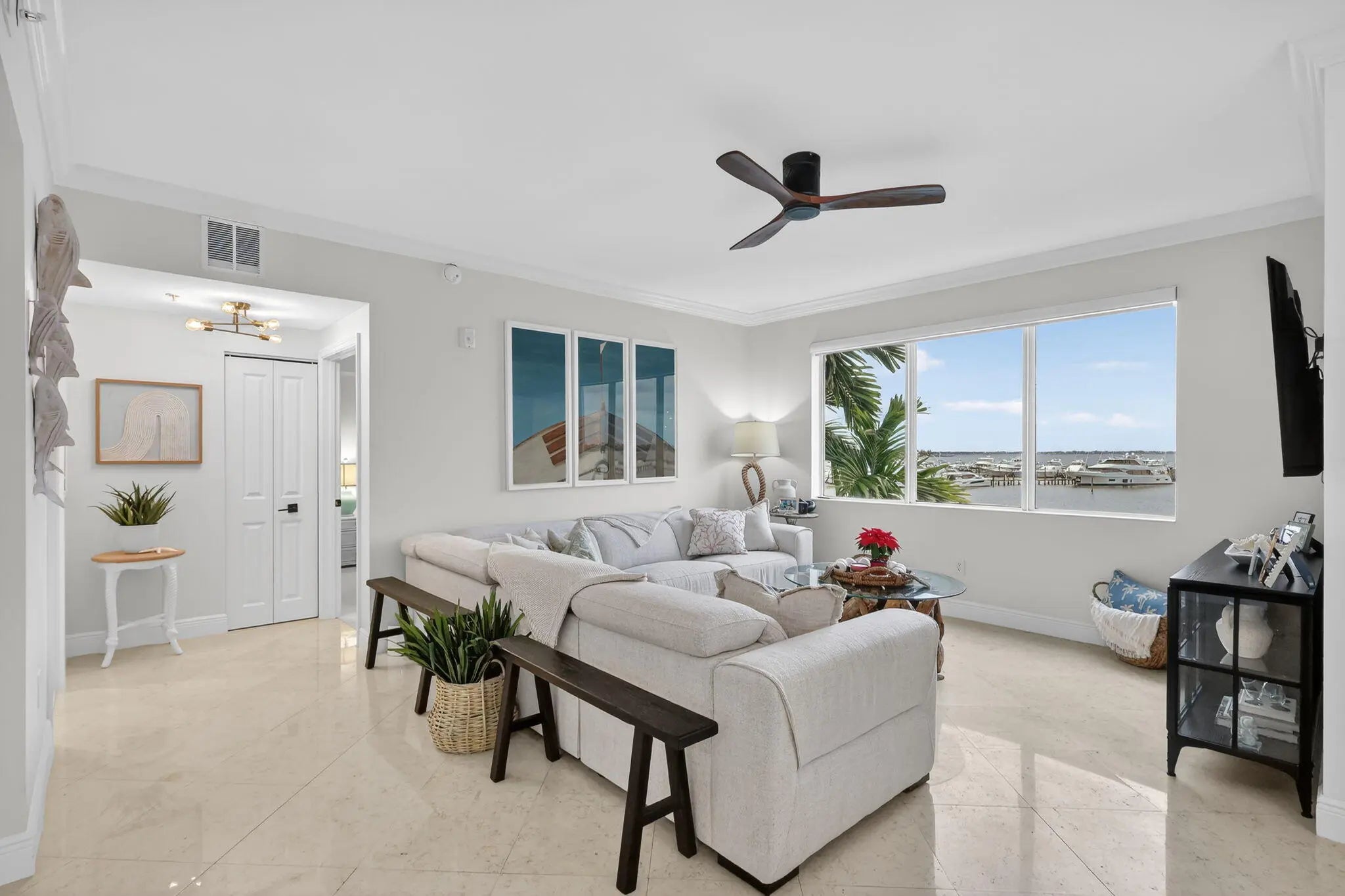 Live the ultimate boater's lifestyle at Harborage Yacht Club! This beautifully updated 2-bedroom, 2-bath rental condo overlooks the St. Lucie River and marina, offering stunning water views from your own private balcony. Perfect for boating enthusiasts, the community features a deep-water marina with ocean access and no fixed bridges, with slips available for lease. Inside, you'll find a bright, open layout with tile flooring throughout, quartz countertops, stainless steel appliances, and generously sized bedrooms. Enjoy resort-style living with access to two heated pools, a hot tub, fitness center, full-service spa, clubhouse, and an on-site waterfront restaurant. Conveniently located just minutes from historic downtown Stuart, shopping, dining, and beautiful beaches.