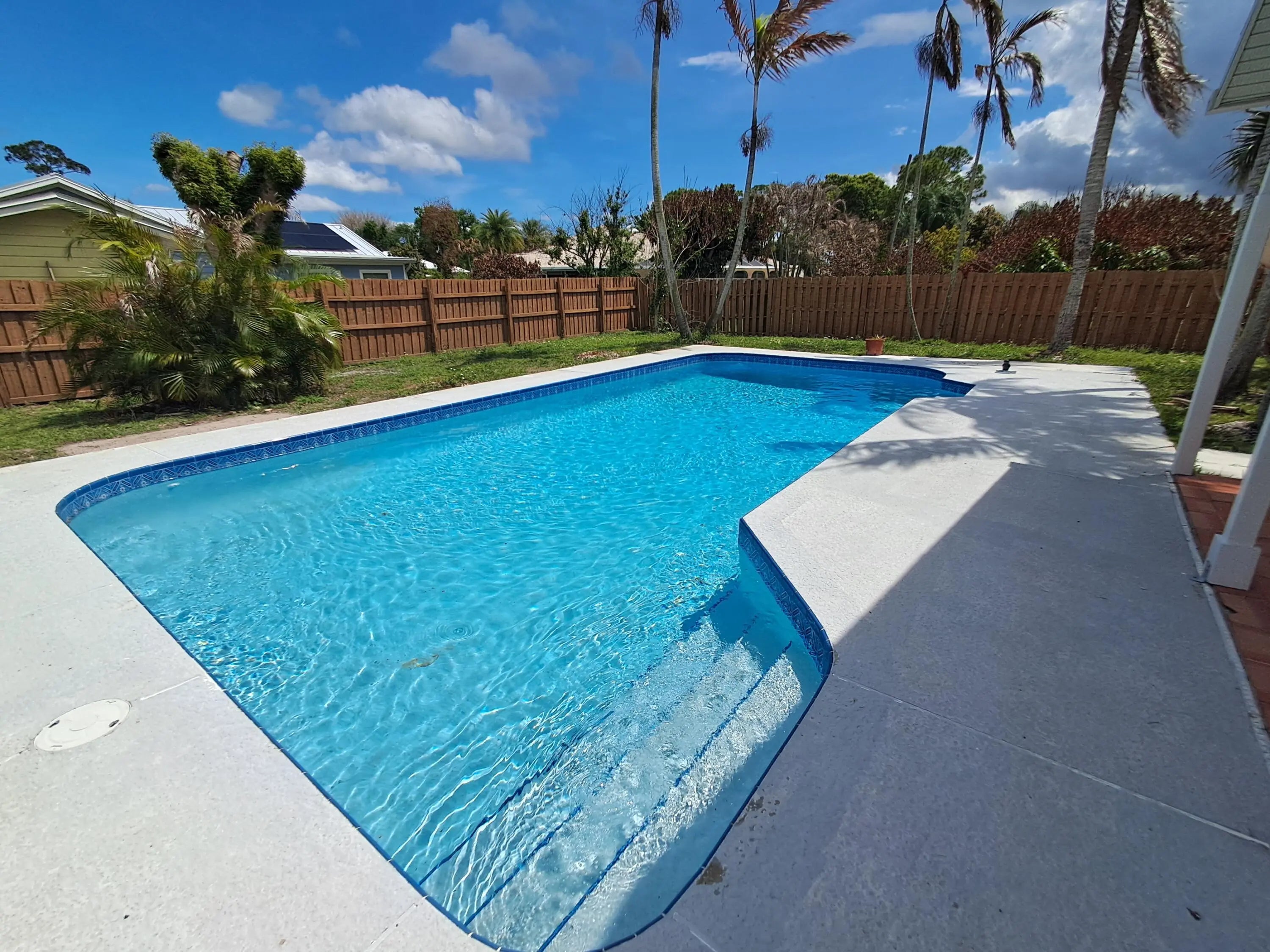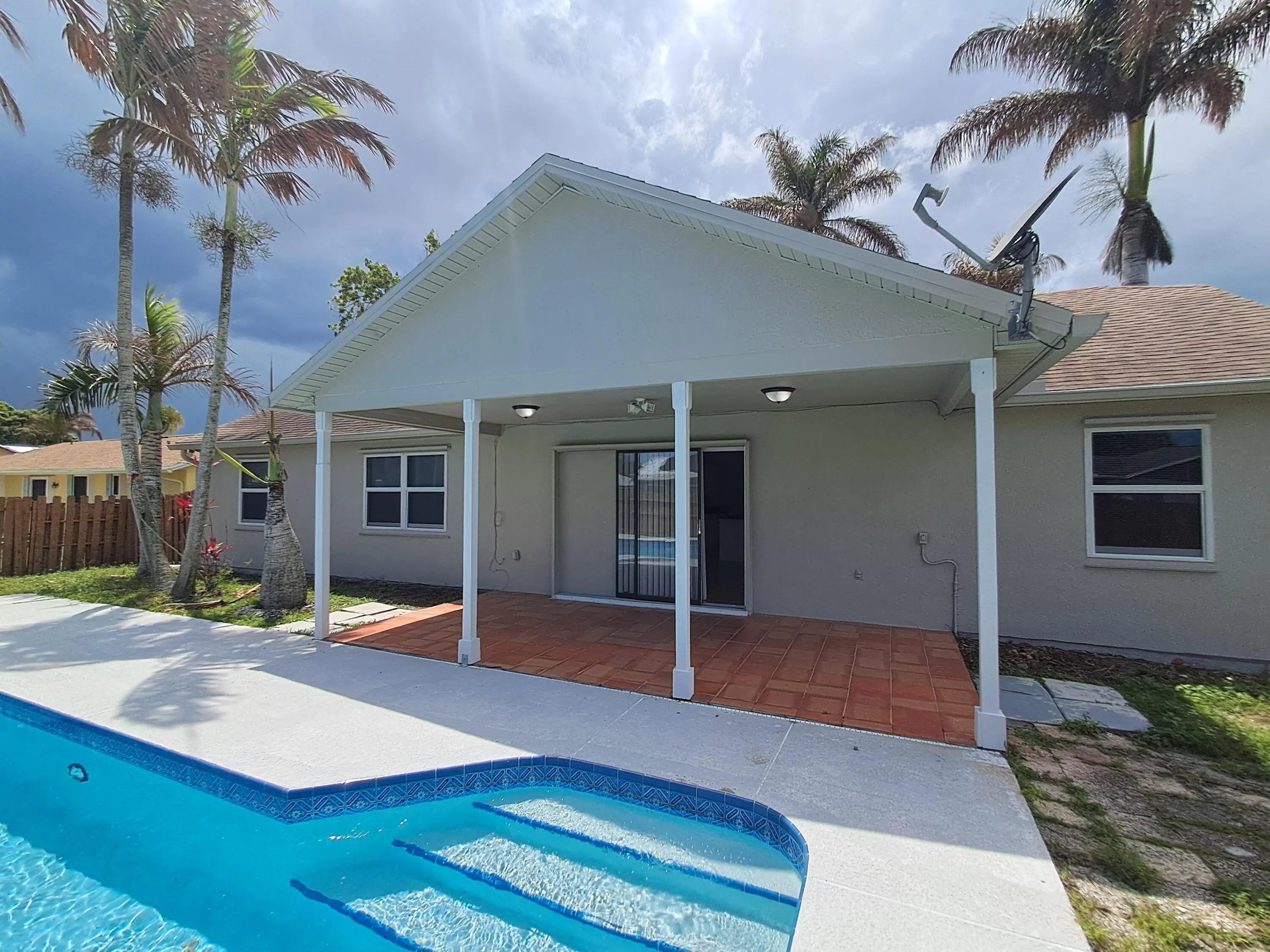 Lovely 3-bedroom 2 bath pool home with new exterior and interior paint. All floors are tile or vinyl wood planks. Spacious kitchen with stainless steel appliance, New Epoxy garage flooring. Large pool with fenced back yard. Hurricane panels newer AC and water heater. Ready for move in.