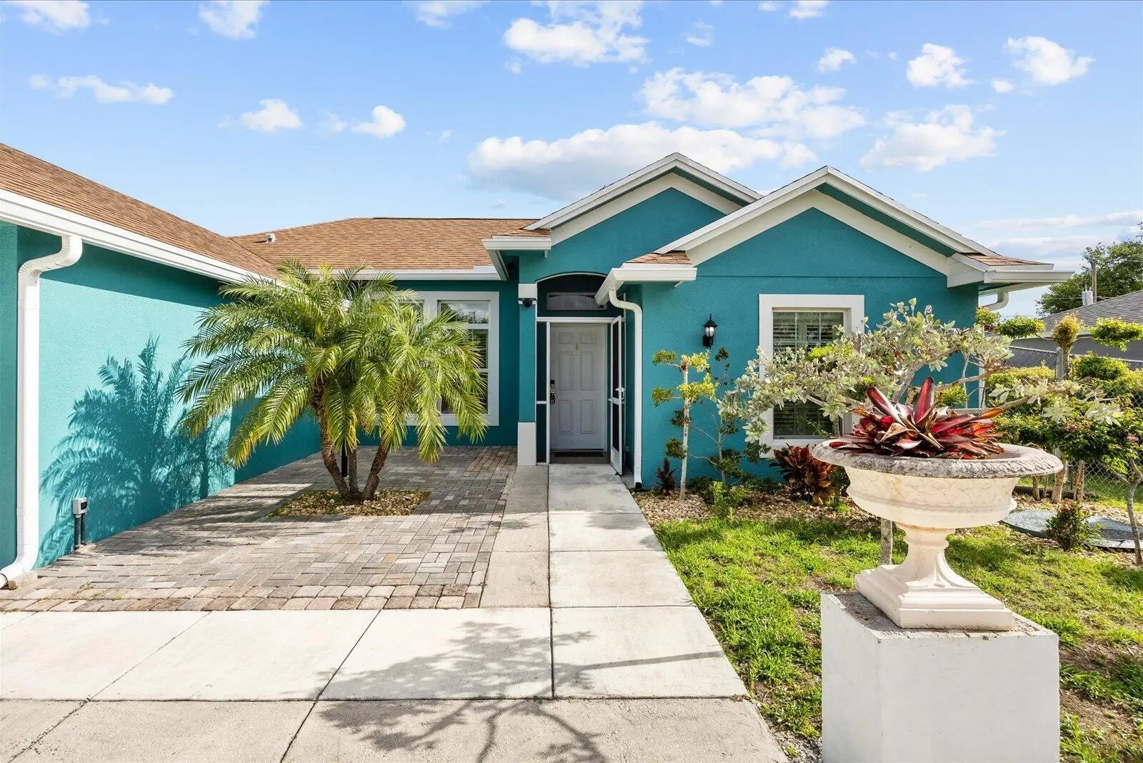 Welcome to this charming 3-bedroom, 2-bathroom home offering comfort, convenience, and great curb appeal. Featuring a spacious circular driveway, there's plenty of room for parking and easy access for guests. The home also boasts a fully fenced yard—perfect for pets, outdoor entertaining, or simply enjoying your own private space. Inside, you'll find a functional split layout with ample natural light, updated kitchen and baths, walk-in closet, covered patio and sink for barbecue or outside cooking and hurricane impact windows and doors throughout with plantation shutter for your protection. Located in a highly desirable area, this property is just minutes away from a wide variety of shopping, dining, and entertainment options, making daily errands and nights out a breeze. Don't miss out on this fantastic opportunity!