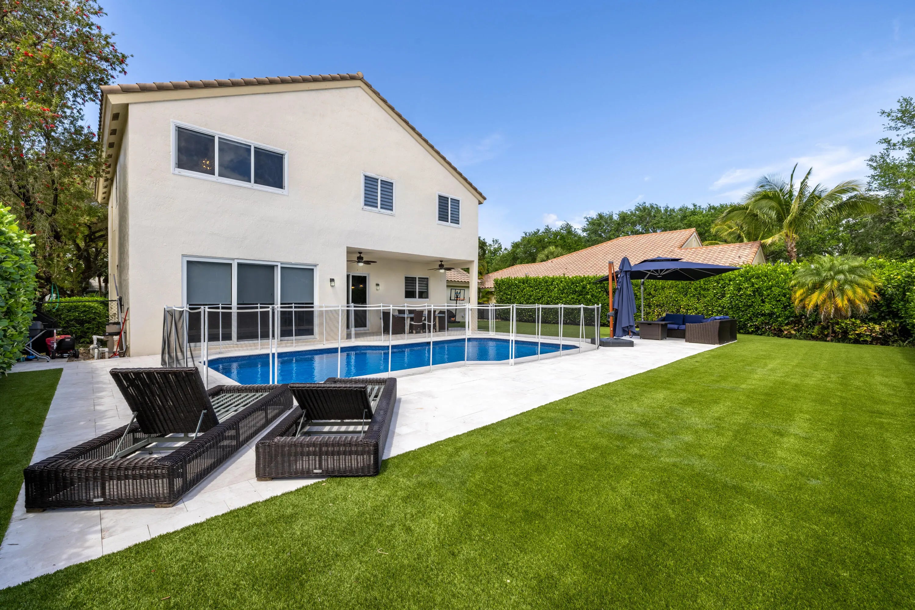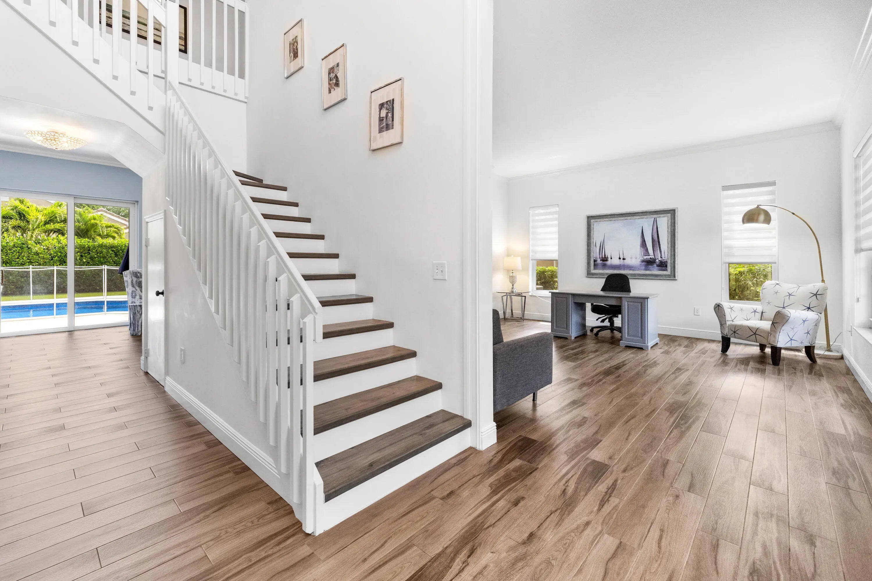 Welcome to 7380 NW 68th Way in Parkland, a home that has been beautifully reimagined with a focus on quality, comfort, and understated luxury. Every detail has been thoughtfully upgraded over the past few years, creating a refined yet livable space. New Impact windows throughout offering natural light and an expansive main level with elegant wood-tile flooring that brings warmth and continuity to the living areas. The updated kitchen flows effortlessly into an expanded laundry room, redesigned to include a custom mudroom and generous pantry, blending function with style in a way that truly enhances daily living. Upstairs, each bedroom is outfitted with custom closets, including an impressive, fully built-out primary suite closet that feels both spacious and tailored. The bathrooms have all been tastefully renovated with clean, modern finishes, giving the home a cohesive and elevated feel. Just outside you'll enjoy a private backyard retreat, where the pool and paver patio have been updated to create a clean, resort-like setting—perfect for quiet mornings or entertaining in the evenings. With a low HOA, which covers lawn care, and a long list of meaningful upgrades already completed, this is a rare opportunity to own a move-in-ready home that combines thoughtful design with effortless living in one of Parkland's most desirable areas.