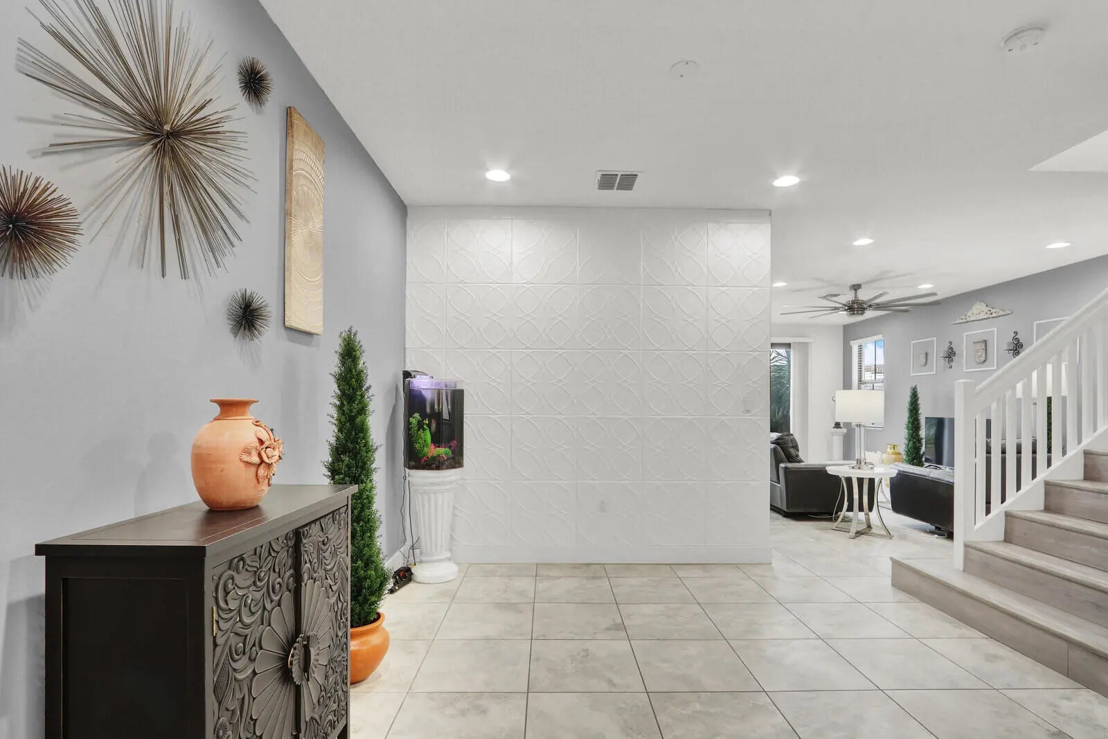 Located in a desirable gated community, this 5 year old lakeview home sits on a quiet cul de sac with no through traffic. Recent updates include fresh interior paint, a new A/C (2026), new appliances, and a 2019 roof. The home features full impact windows and sliders, an open concept layout with formal dining, tile flooring on the first floor, and a fully fenced backyard with no rear neighbors. Spacious upstairs bedrooms and a full size laundry add convenience. Furniture is negotiable. The low $230/month HOA covers lawn care, tree trimming, irrigation, and gate maintenance. Enjoy a resort style clubhouse with gym, pool, hot tub, walking trails, playground, on site management, security patrols, and ample guest parking. Close to top rated schools, major highways, the airport, shopping, dining, and beautiful beaches, this home offers comfort, convenience, and an exceptional lifestyle. Make it yours before someone else does.