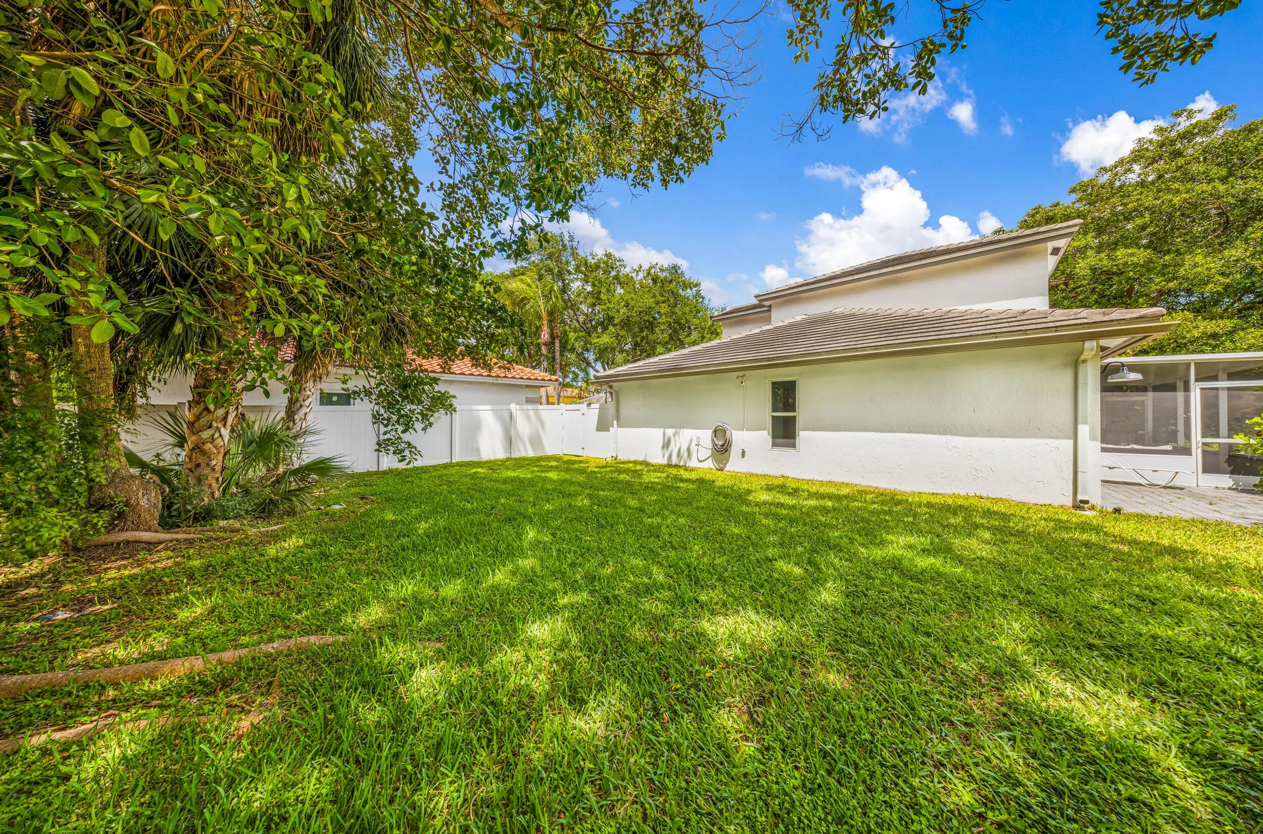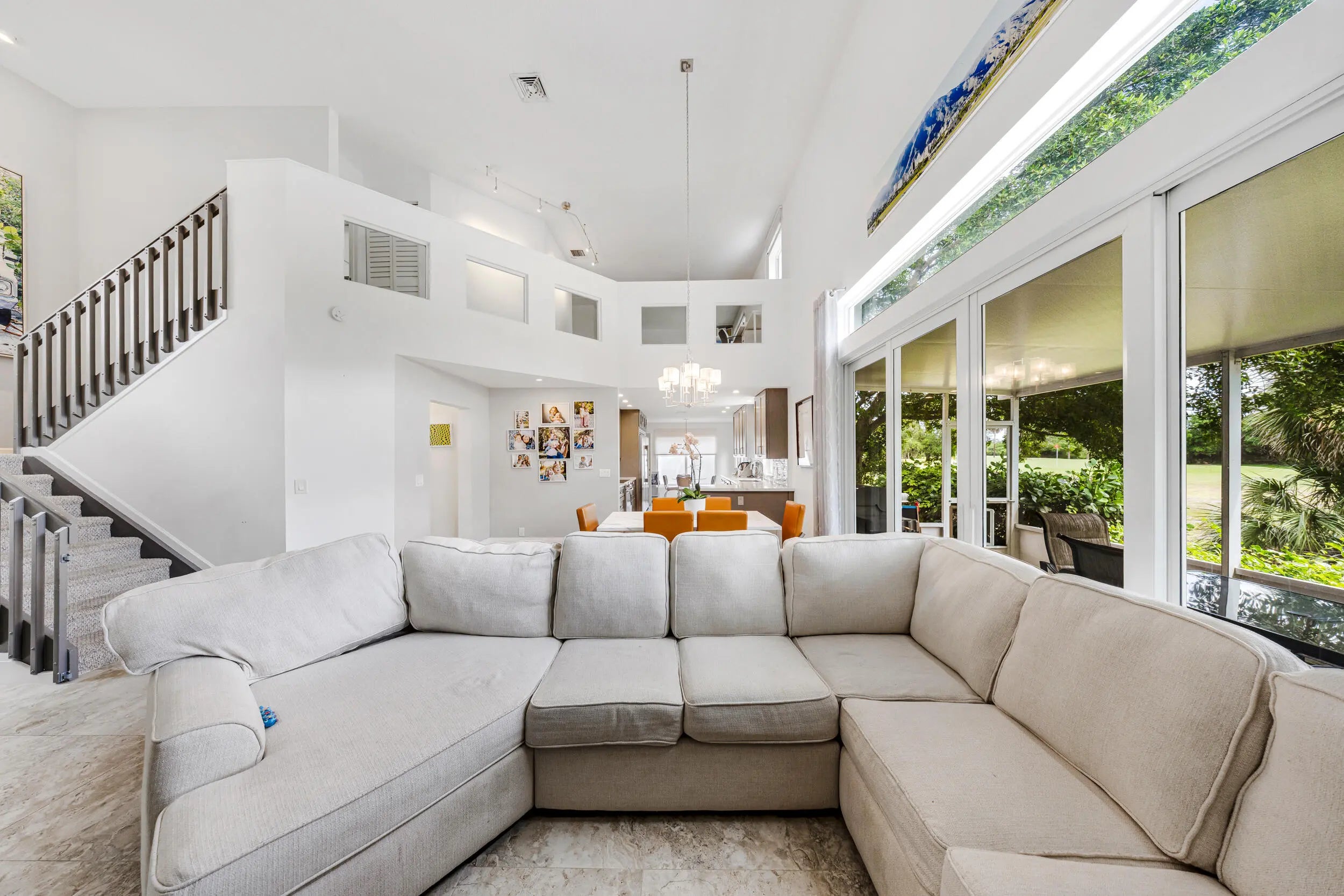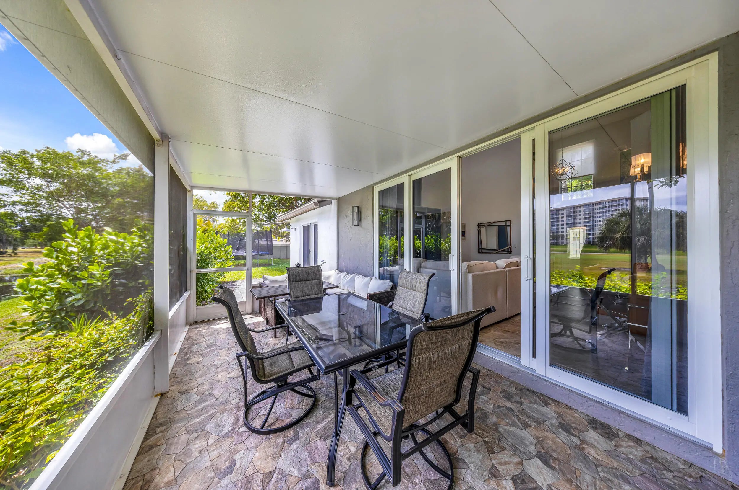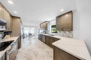 Beautifully remodeled home on a rare double lot in the gated community of Oasis at Palm Aire. Bright, open layout with soaring 17' ceilings and expansive golf views through wide impact glass doors. Updated kitchen features 42" cabinetry, quartz countertops, stainless steel appliances, and indoor/outdoor breakfast areas. The first-floor primary suite includes a spacious custom dressing room (converted 4th bedroom), dual vanities, Jacuzzi tub, and large shower. Upstairs offers a versatile family room with built-ins, plus two bedrooms and a full bath. Upgrades include concrete roof, impact windows and doors, 2021 A/C, porcelain flooring and kitchen remodel. Enjoy outdoor living with a screened porch, two patios, and oversized driveway. Prime double lot with creek and golf course front.