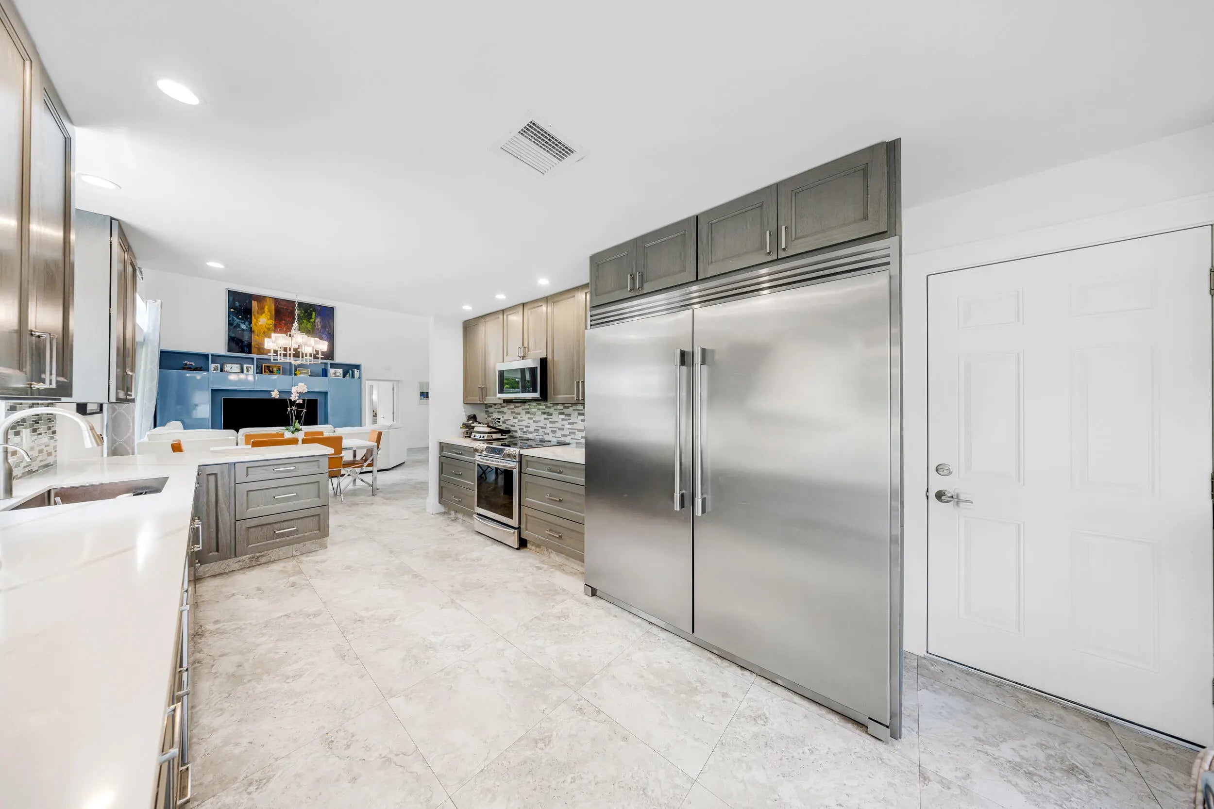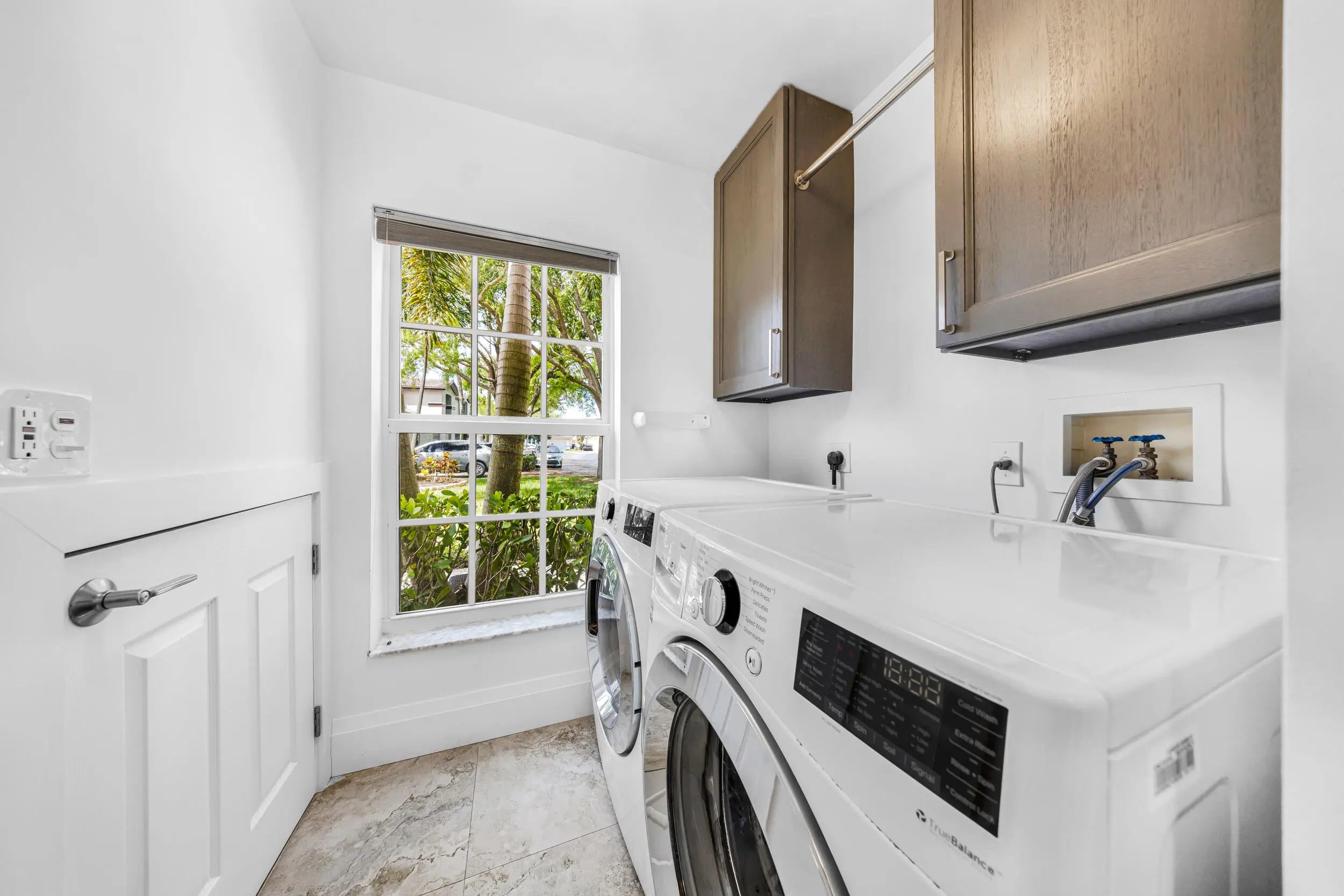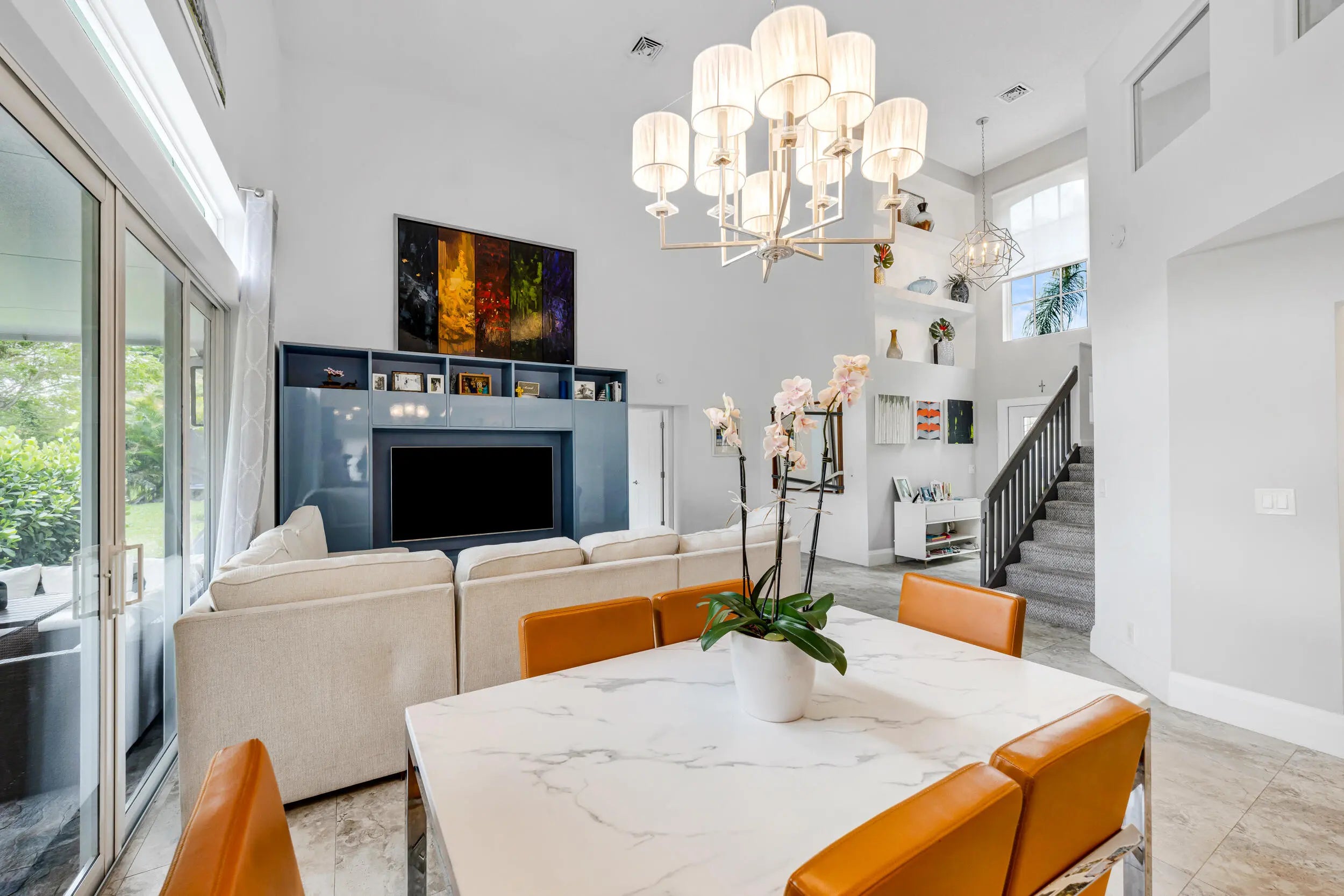 Beautifully remodeled home on a rare double lot in the gated community of Oasis at Palm Aire. Bright, open layout with soaring 17' ceilings and expansive golf views through wide impact glass doors. Updated kitchen features 42" cabinetry, quartz countertops, stainless steel appliances, and indoor/outdoor breakfast areas. The first-floor primary suite includes a spacious custom dressing room (converted 4th bedroom), dual vanities, Jacuzzi tub, and large shower. Upstairs offers a versatile family room with built-ins, plus two bedrooms and a full bath. Upgrades include concrete roof, impact windows and doors, 2021 A/C, porcelain flooring and kitchen remodel. Enjoy outdoor living with a screened porch, two patios, and oversized driveway. Prime double lot with creek and golf course front.