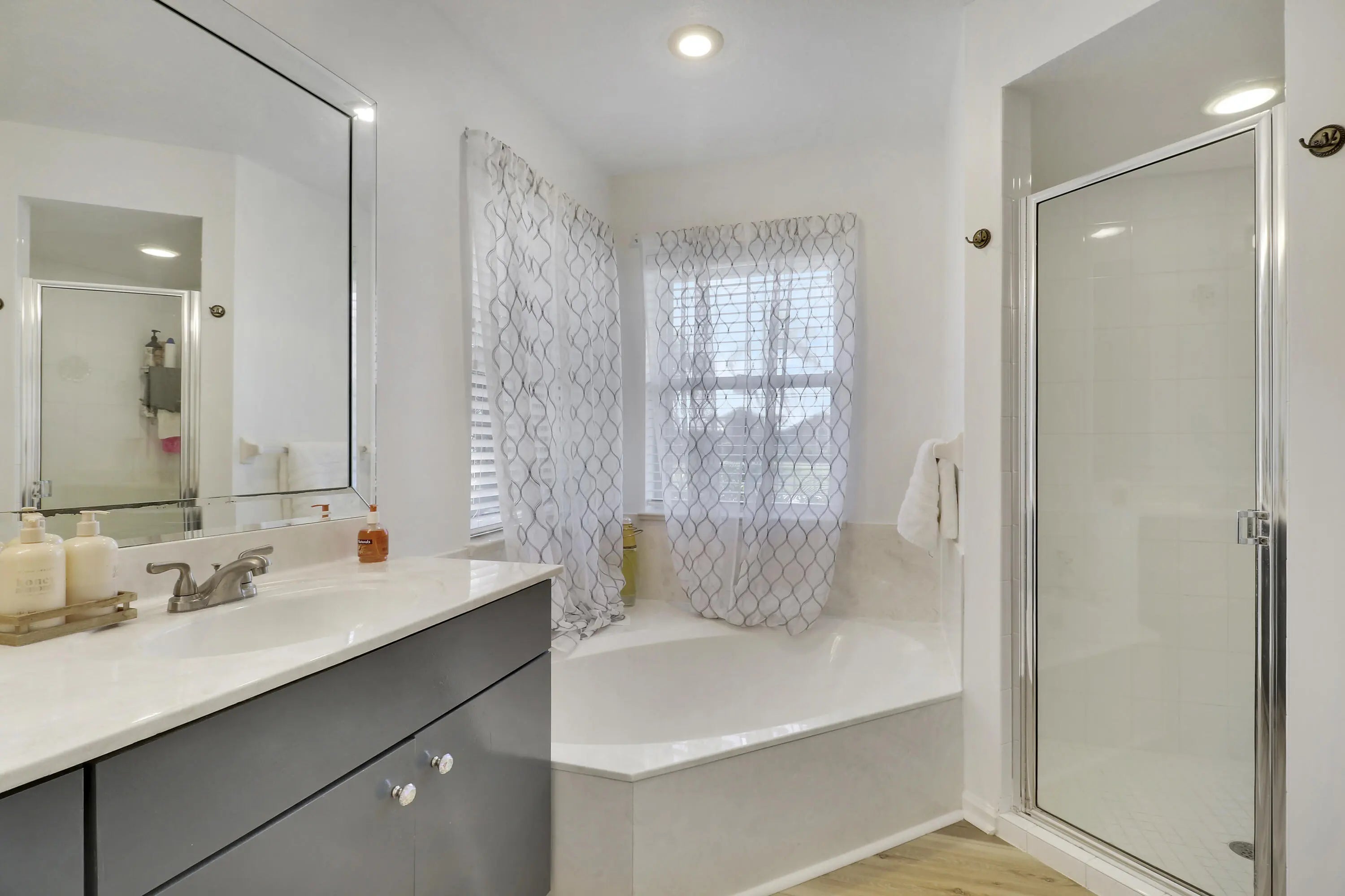High Ceilings, Walk-In Closet(s), Bedroom Layout - Split, Pull Down Stairs, Cabana Bath