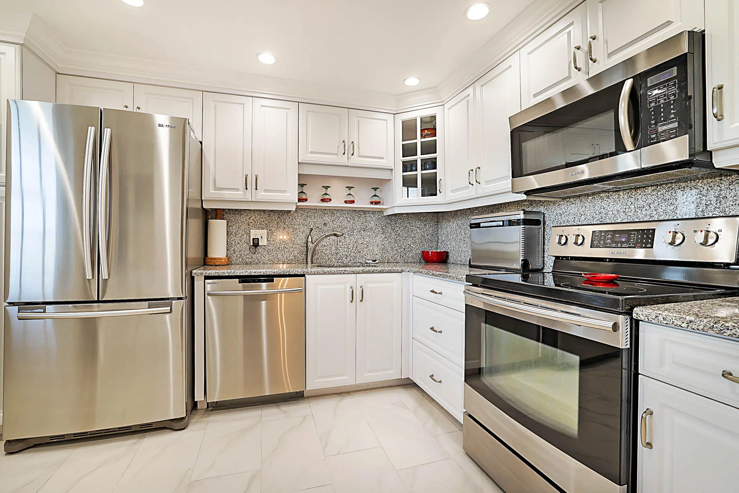 Dryer, Dishwasher, Electric Range, Microwave, Refrigerator, Washer