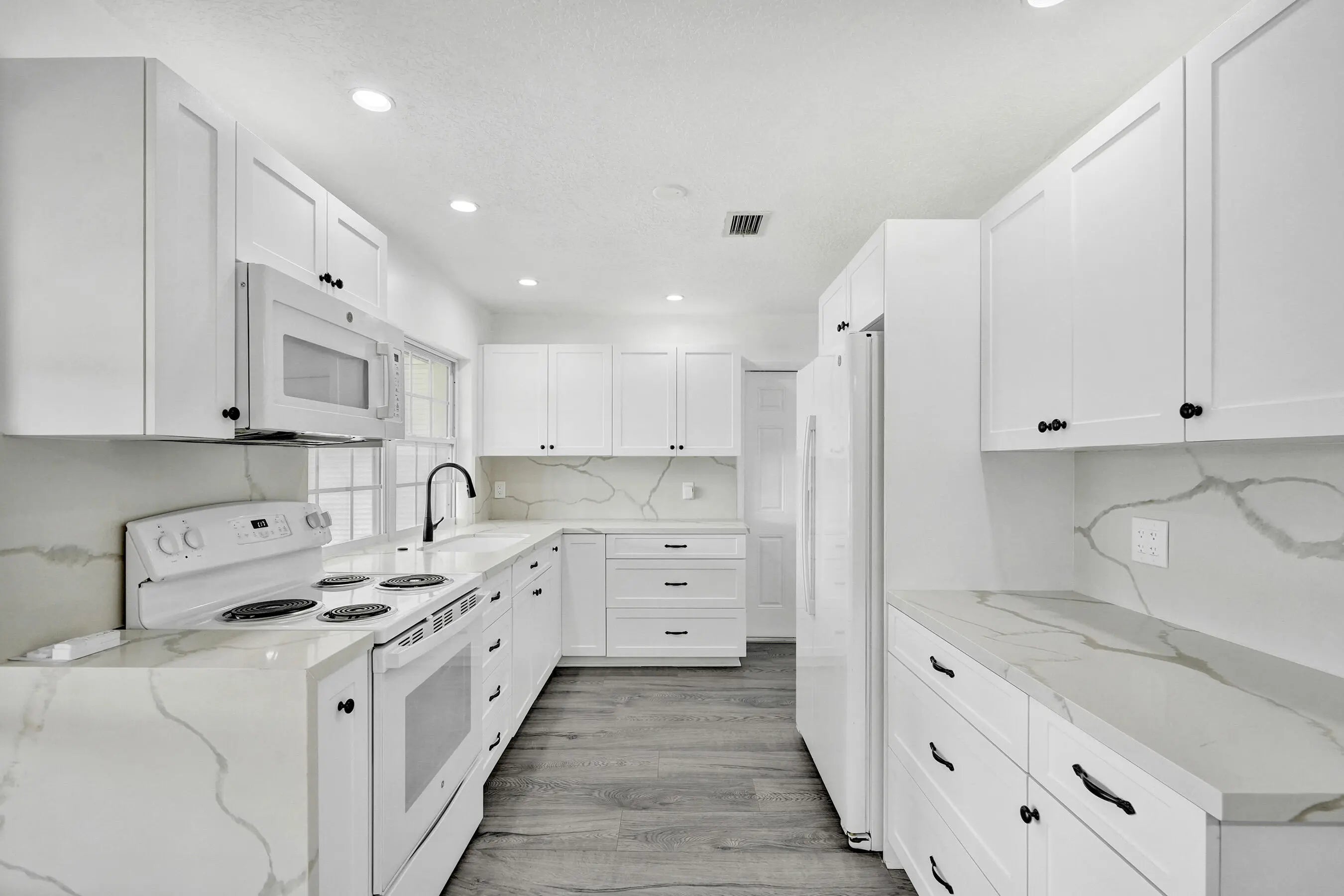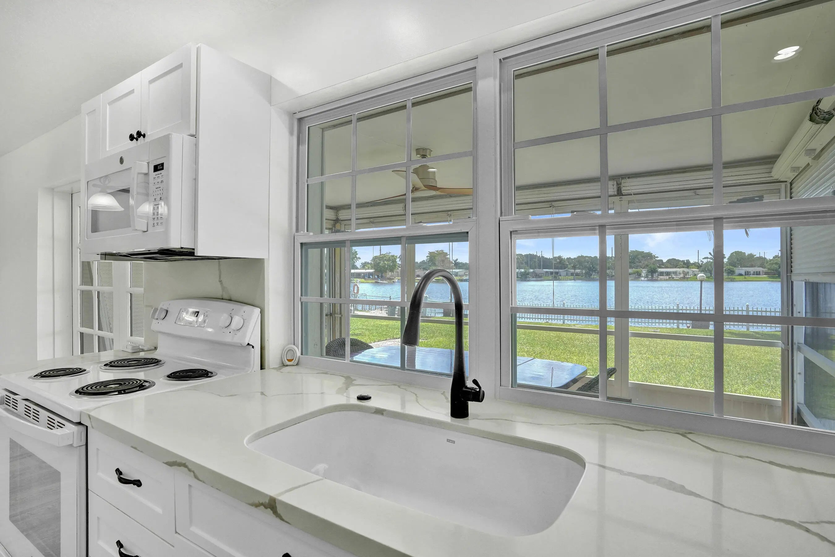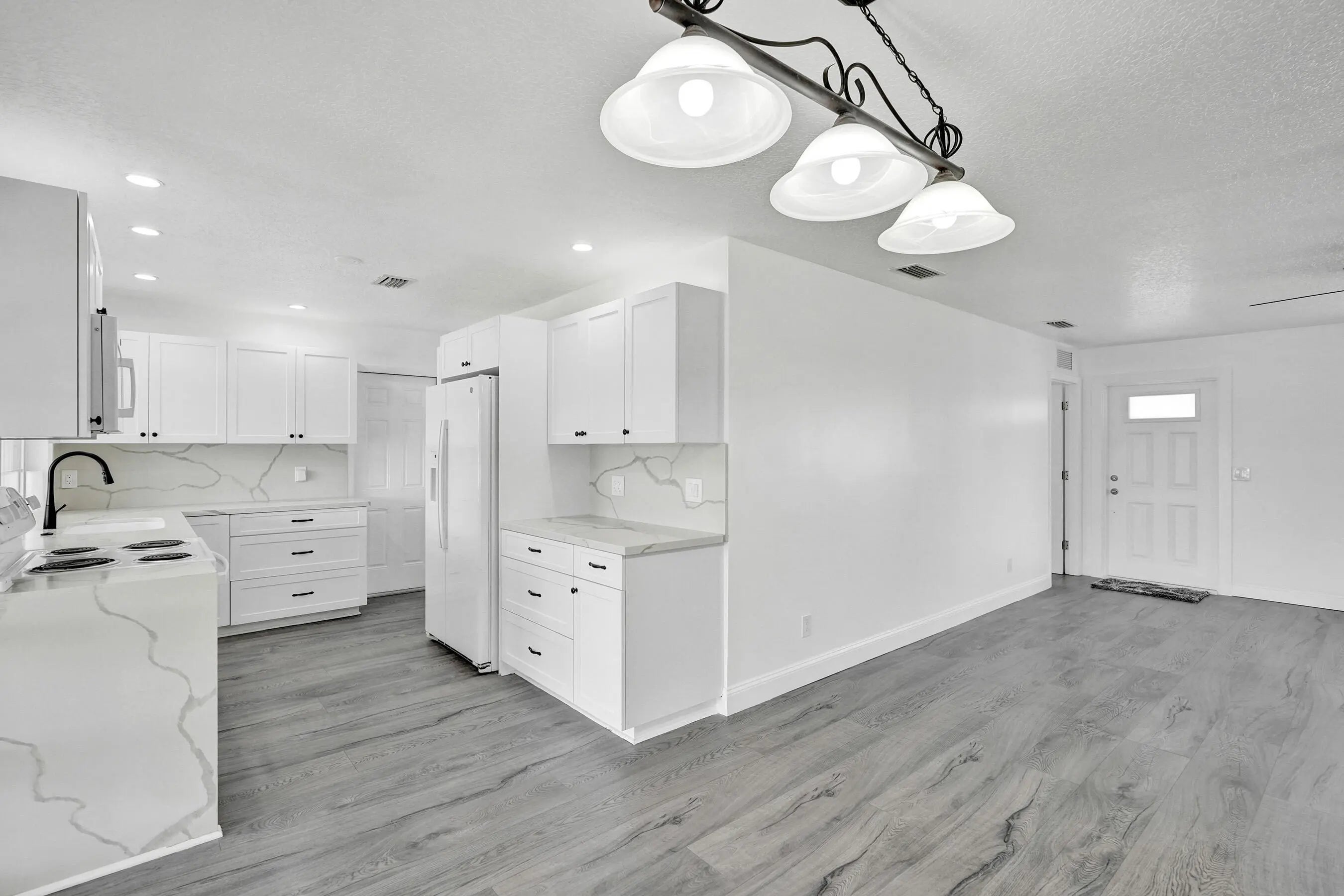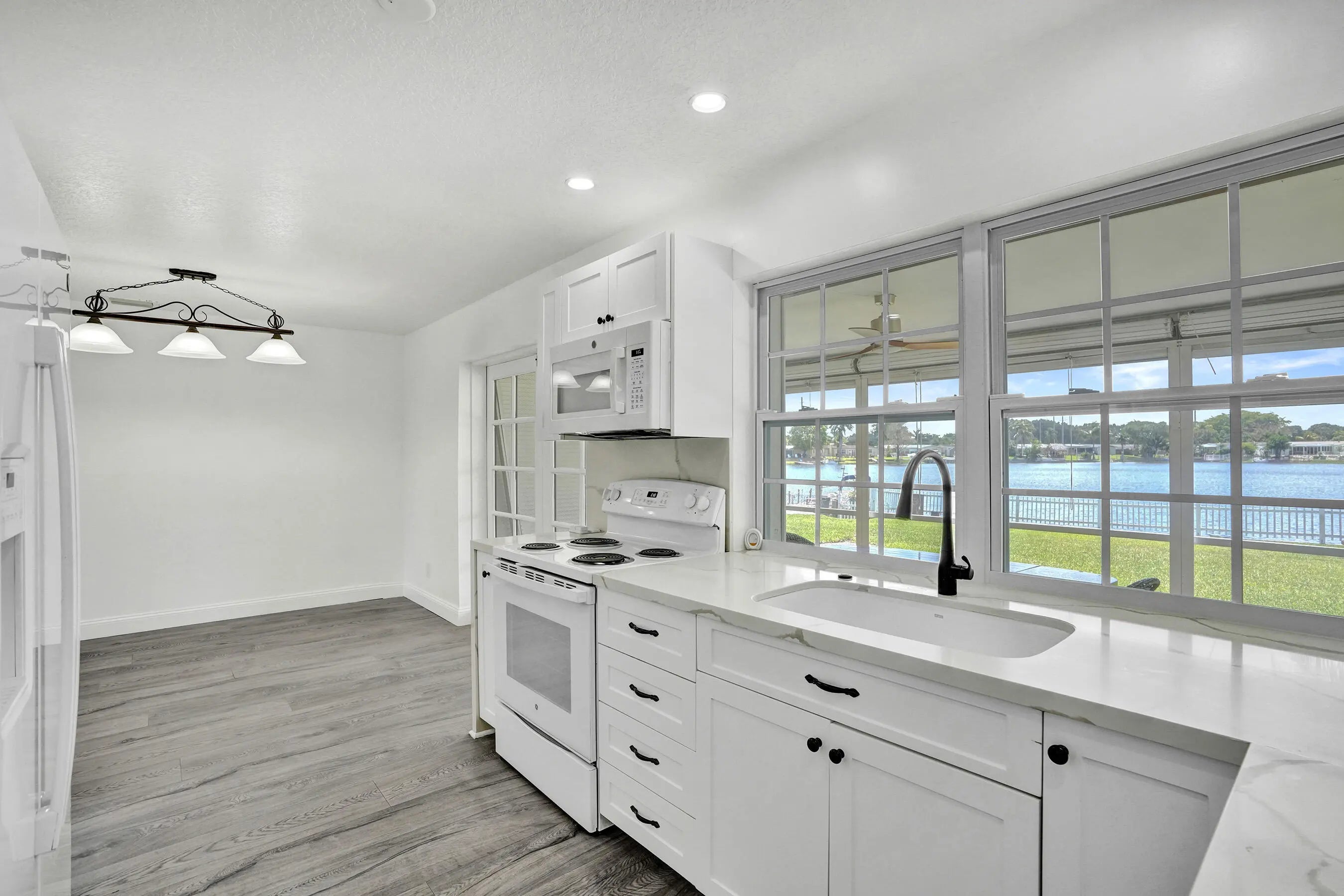 Stunning & completely remodeled 3-bed, 2-bath home in highly sought-after Rainbow Lakes of Pembroke Pines w/ breathtaking & expansive lake views. Beautifully updated, this home features modern kitchen w/ shaker cabinets & quartz counters opening to main living area—perfect for everyday living & entertaining. Spacious primary suite incl. walk-in closet & tastefully renovated bath. Recent upgrades incl. fresh interior & exterior paint, new landscaping & impact windows for added peace of mind. Wood-look vinyl flooring thru/out. One-car garage & extended driveway w/ parking for up to 5 vehicles. Enjoy serene outdoor living from screened & enclosed patio overlooking lake, w/ oversized, private backyard w/ room for a pool. This immaculate, like-new home truly has it all—don't miss it!