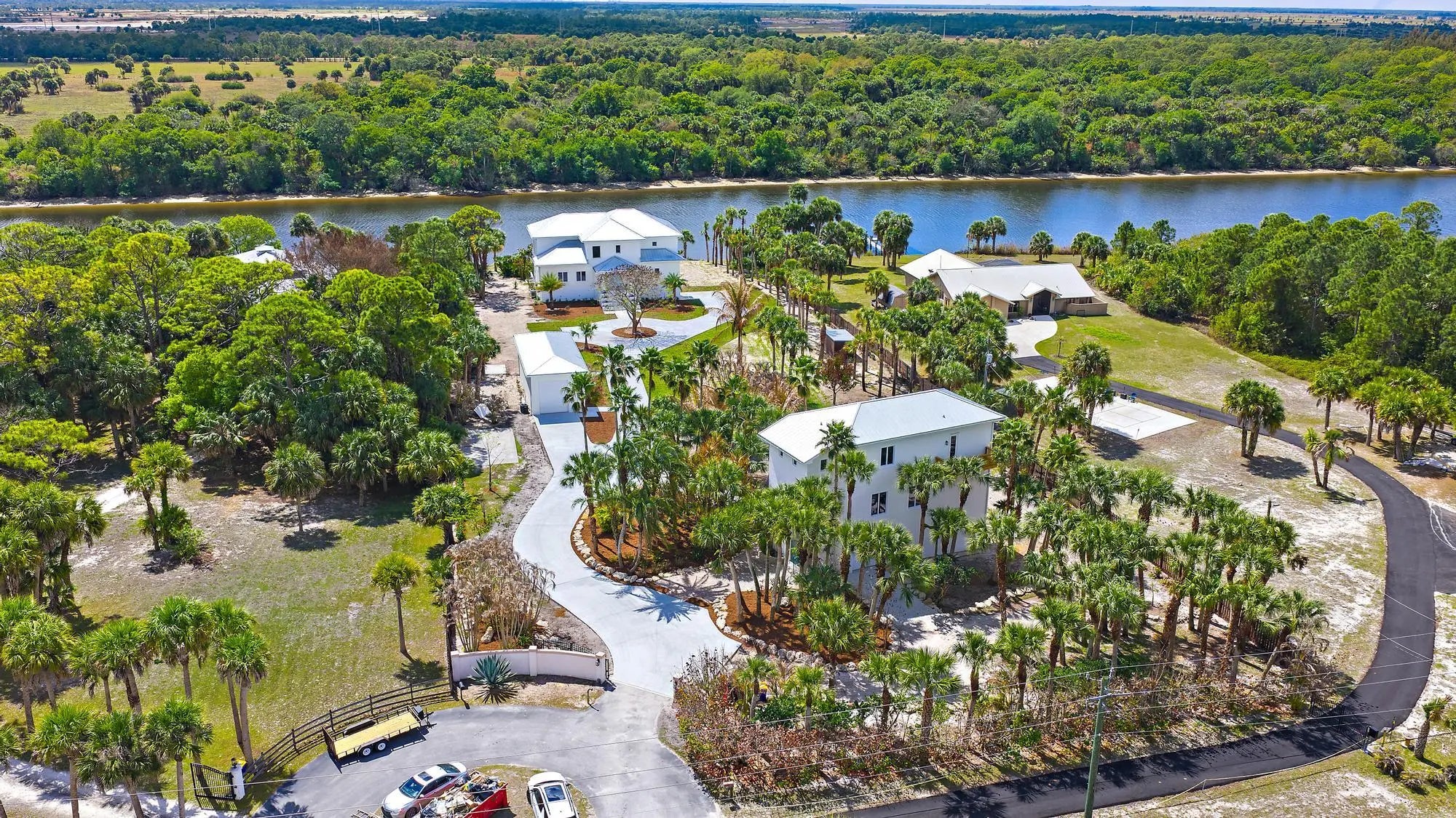 A rare offering in Palm City! Welcome to an exceptional Waterfront Estate, where privacy, space and coastal living come together on over 2 plus acres of Lush Tropical Beauty. This expansive residence offers more than 8,000 sf of living space, featuring 6 bed, 8.5 bath. The main home features 6,008 Living sf offering 4 bedrooms, 5.5 bathrooms plus a 3.5 garage. Home is designed for comfort and entertaining. The guest house featuring 2,197 Living sf offering 2 bed, 3 bath and a 1 car garage. Outdoors, enjoy a true Florida Lifestyle with a private dock with boat access to the Ocean and Gulf. A detached oversized 900 sq ft garage for boats and RVs. Home offers Luxury Bath Features, Custom Finishes, Elevator access for convenience, Luxury Kitchen Appliances. Pool not included but can be added. Final touches are still being completed.