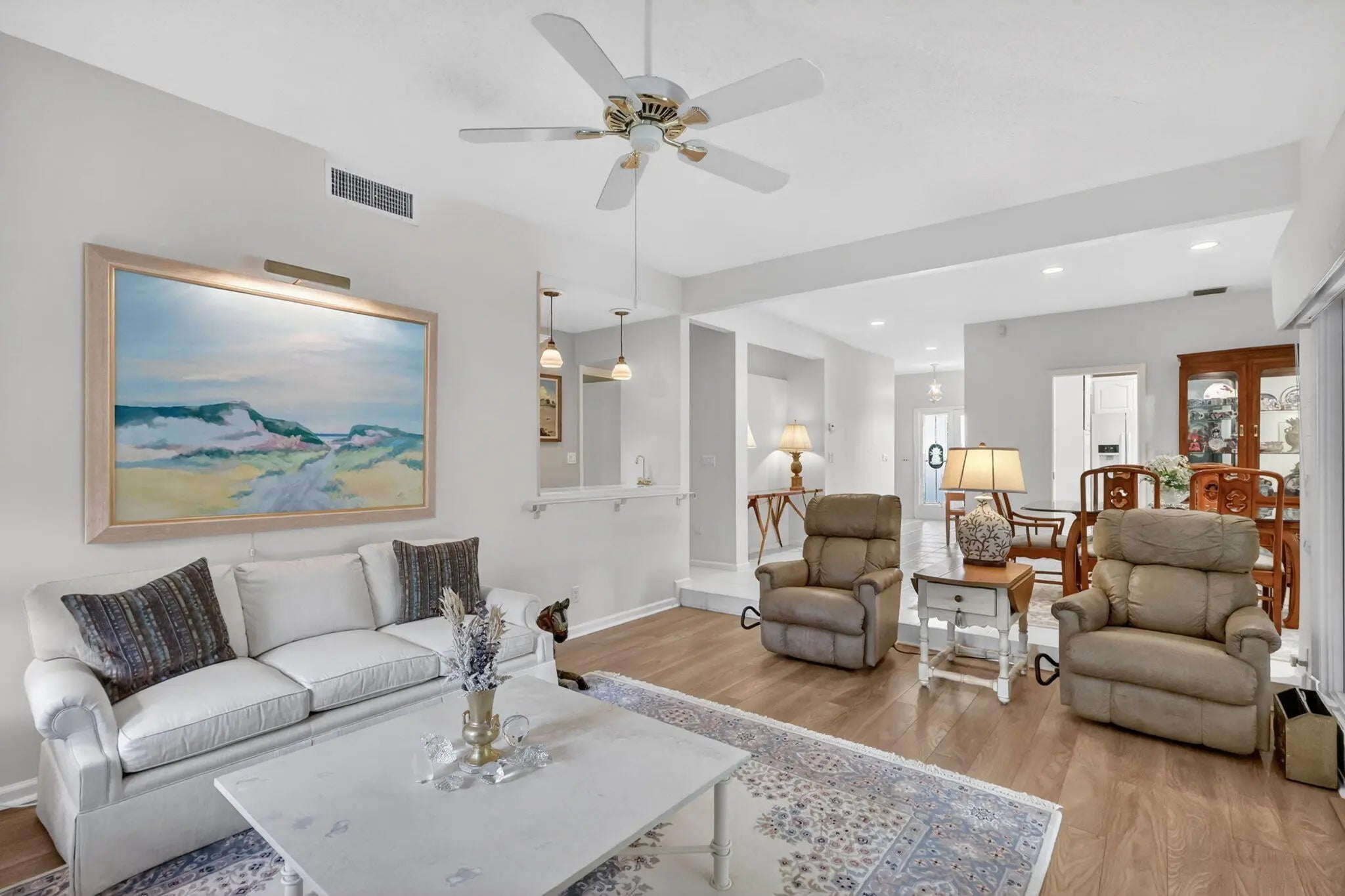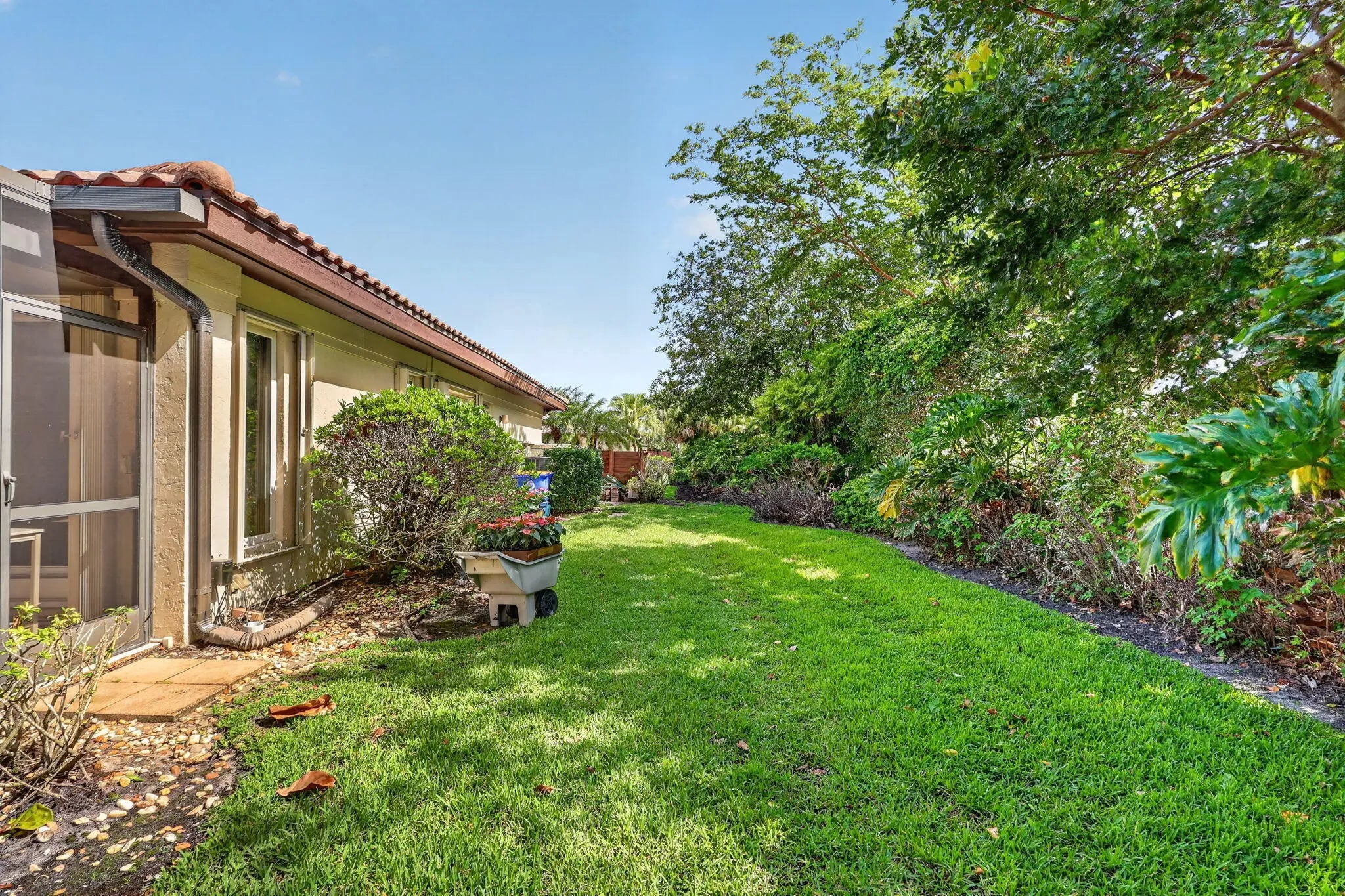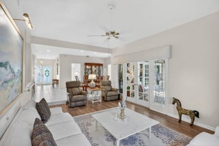 Concrete block 3-bedroom, 2.5-bath home situated on a desirable corner lot in the private golf course community of Mariner Sands. This charming residence offers a functional layout with a spacious family room featuring a built-in bar—perfect for entertaining—along with a separate dining room and an enclosed sunroom for added living space. The primary suite includes two walk-in closets and a well-appointed bath with double vanities and a large walk-in shower. A generous guest bedroom offers its own private bathroom, while the third bedroom is currently used as a den, providing flexibility for a home office or additional living area. The large kitchen offers abundant storage, and the expansive screened-in patio creates an ideal setting to enjoy the private backyard. Complete with a half bath and thoughtful layout throughout, this home is a wonderful opportunity to enjoy country club living in Mariner Sands. Residents enjoy two championship 18-hole golf courses, Har-Tru tennis courts, pickleball, croquet, and a state-of-the-art fitness center. The community also features a resort-style pool with a separate lap pool, along with the Sand Bar offering exceptional indoor and outdoor casual dining. The spectacular new clubhouse provides both fine and casual dining, along with weekly social events and happy hours. Additional amenities include a dog park, playground, spa, and nail salon—all just minutes from pristine beaches and charming downtown Stuart. Social membership is required with a one-time capital contribution of $50,000 due at closing. Golf membership is separate and optional.