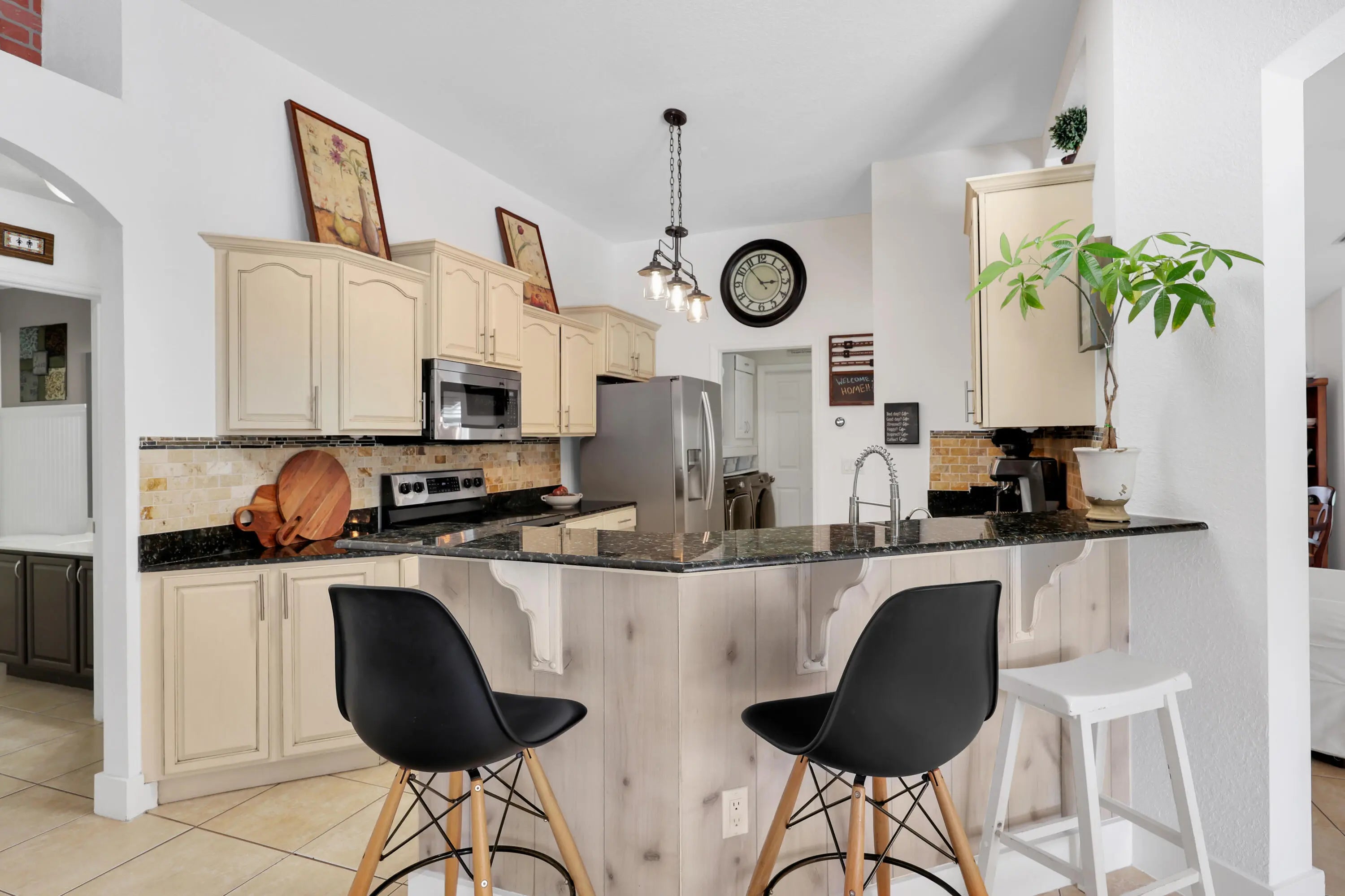 Beautifully maintained 4-bedroom, 3 full bath with salt water heated pool home offering a perfect blend of comfort, space, and style. This light-filled home features tile and wood flooring throughout, creating a warm and cohesive feel from the moment you walk in. The thoughtfully designed layout includes a formal dining room for special gatherings and a charming breakfast nook with a panoramic view of the pool perfect for starting your day with natural light and serene surroundings. The kitchen has granite countertops, ample cabinetry, and a functional layout ideal for both everyday living and entertaining. Step outside to your private backyard oasis, where lush landscaping, mature trees, and an extended patio create the perfect setting for outdoor enjoyment. Non HOA, close to Tradition.