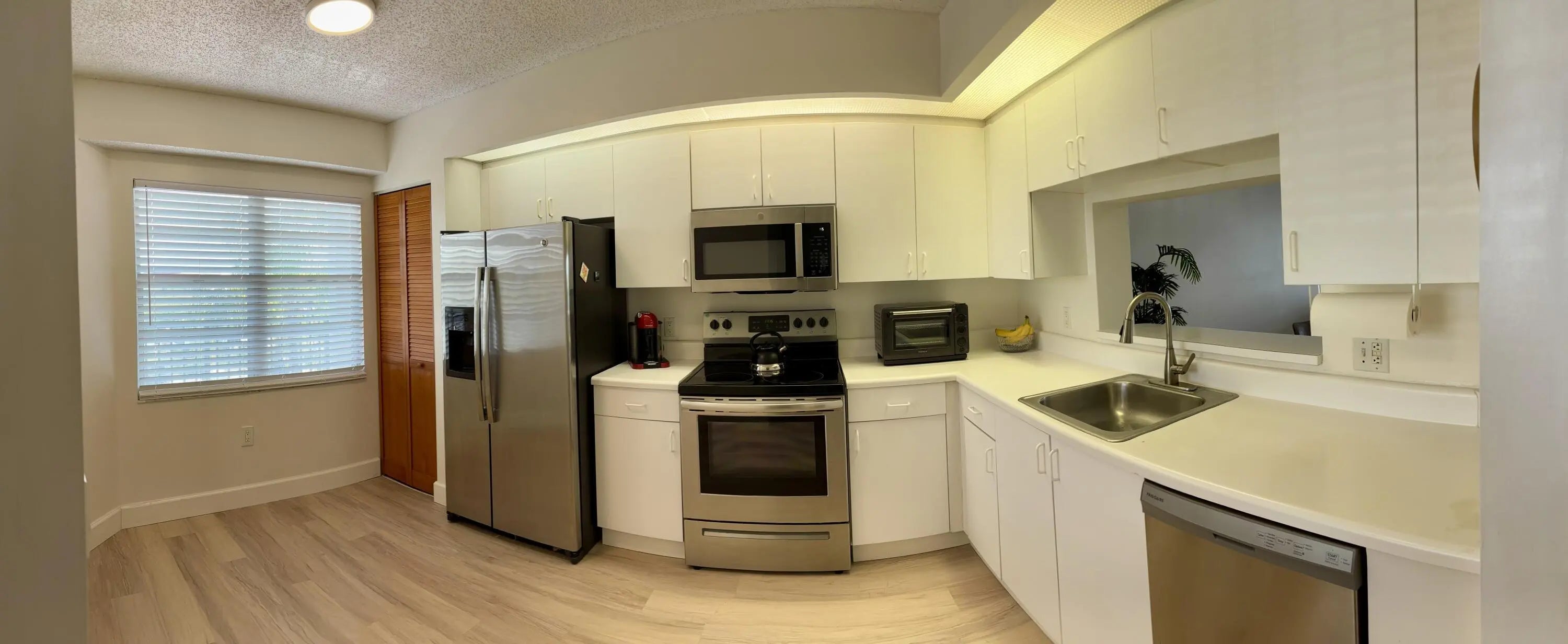 Come experience breathtaking lakefront living from this beautifully renovated 4th floor residence, perfectly positioned to capture serene water views and stunning sunset skies. Bright, open, and thoughtfully renovated, this condo features brand new flooring, baseboards, and modern lighting throughout. The refreshed kitchen showcases updated cabinets paired with sleek stainless steel appliances. Both bathrooms have been tastefully renovated, and with new A/C unit, new water heater, and a new in unit washer and dryer with additional storage for convenience. Residents enjoy an exceptional South Florida lifestyle with a clubhouse that has an impressive array of amenities: indoor and outdoor pools, theatre, billiards room, two fitness centers, tennis and pickleball courts, golf, a guarded gate with security patrol, and a complimentary community bus. Community is located close to shopping, major expressways, and airports, this community offers unmatched comfort and convenience. HOA fee of $680 includes water, cable, and internet, adding exceptional value to this move in ready home.