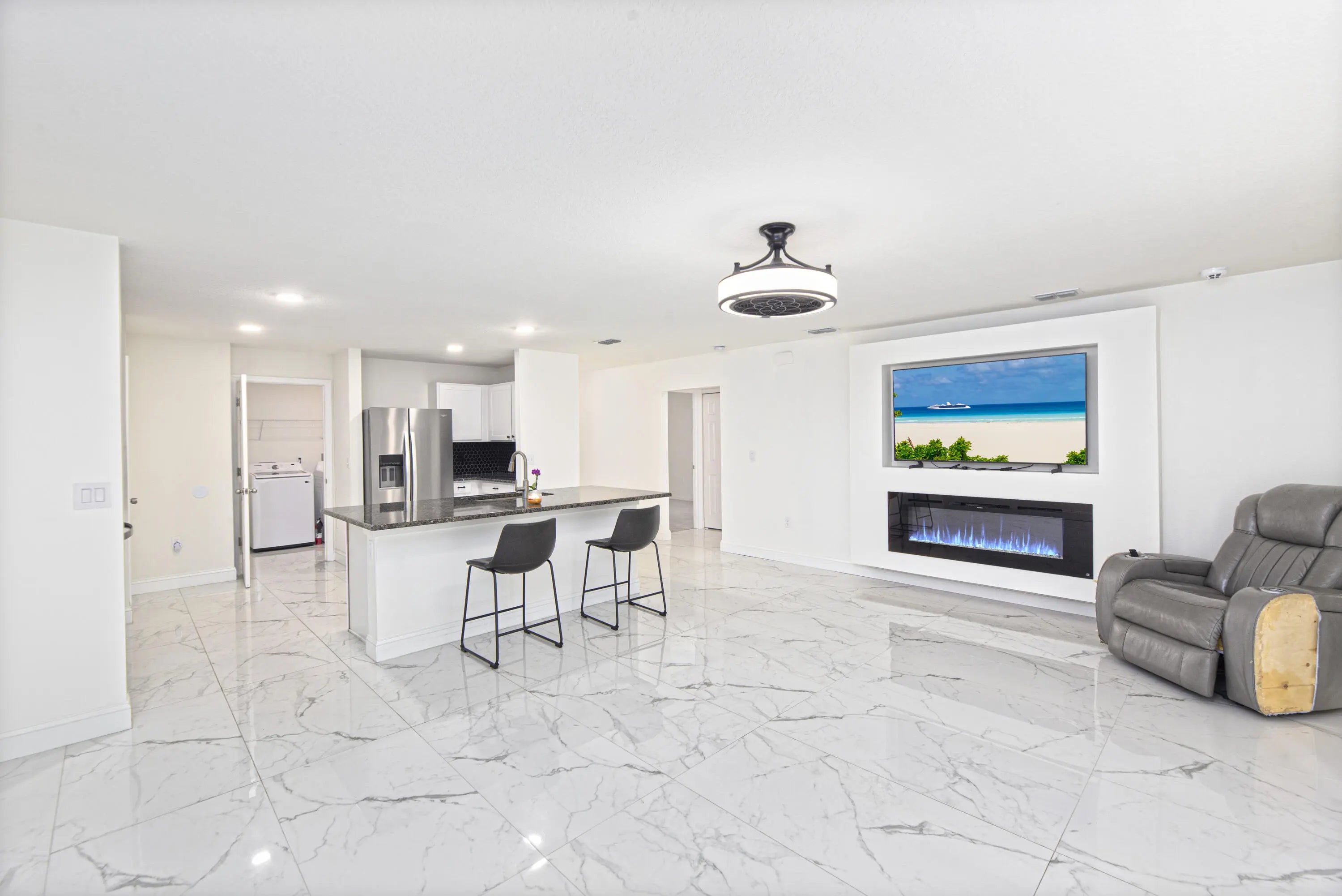 Beautifully maintained 4BR + den home in the heart of Port St. Lucie! This spacious layout features abundant natural light and a functional floor plan ideal for everyday living and entertaining. Tile throughout main living areas and vinyl flooring in the owner's suite. Kitchen has been updated with granite countertops and tiled backsplash, offering ample cabinetry and seamless flow into the main living space. Enjoy the cozy electric fireplace and a generously sized backyard with room for gatherings, pets, or future additions. Roof 2022, A/C and water heater recently updated. Conveniently located near shopping, dining, schools, and major highways schedule your showing today!