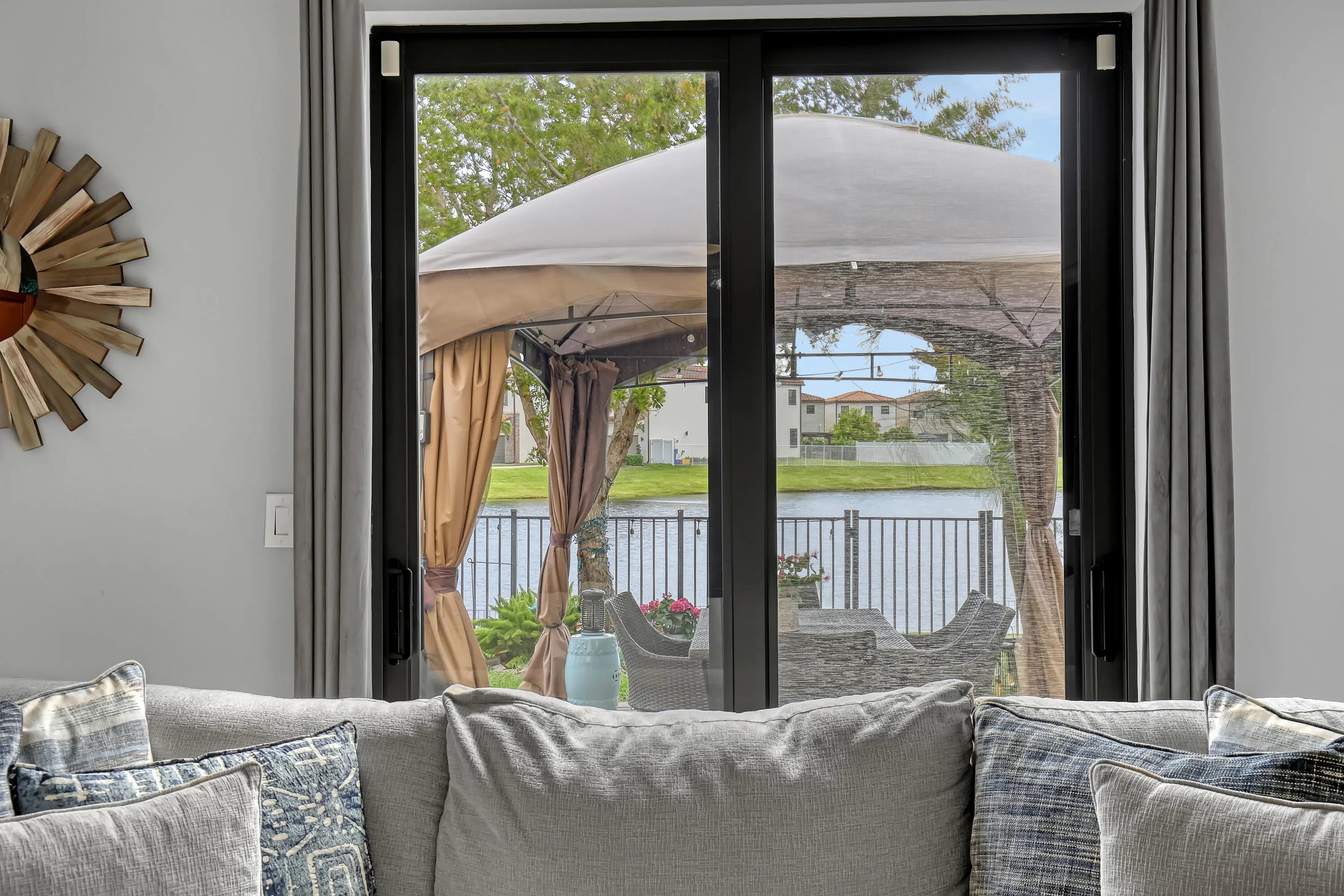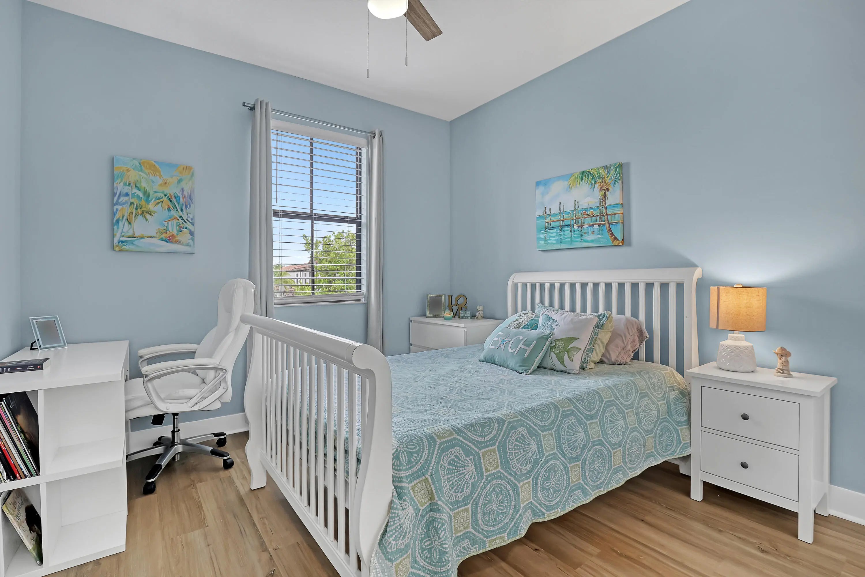 Built in 2019, this stunning 4-bedroom, 2.5-bathroom lakefront home combines modern luxury with an unparalleled location. The bright, open-concept interior features elegant tile flooring throughout the main level, while a beautiful hardwood staircase leads to a second floor finished entirely in wood. The chef-inspired kitchen is a standout, boasting an interactive Samsung refrigerator and upscale Whirlpool appliances. For ultimate comfort and health, the home is equipped with a premium Pentair whole-house water filtration system, ensuring purified water from every faucet. Efficiency and peace of mind are guaranteed with a high-quality Carrier AC unit and ADP security-ready infrastructure. The expansive master suite serves as a true retreat, offering a massive walk-in closet and a spa-like bathroom with a Roman tub, separate shower, and double vanity. Practicality meets style with abundant storage space and a 2-car garage. Step outside to your private back patio to enjoy serene lake views, or take advantage of the gated community's pool, fitness center and remarkably low HOA fees. Location is everything here—students have easy access to the prestigious Alexander W. Dreyfoos School of the Arts and Bak Middle School of the Arts, while professionals and students are minutes from Palm Beach Atlantic University, Jupiter FAU Campus, Palm Beach State College and Keiser University. You are perfectly positioned between the upscale shopping of Downtown Palm Beach Gardens and the vibrant dining and nightlife of Downtown West Palm Beach and Clematis Street. With quick access to I-95 and local beaches, this home offers the ultimate South Florida lifestyle.