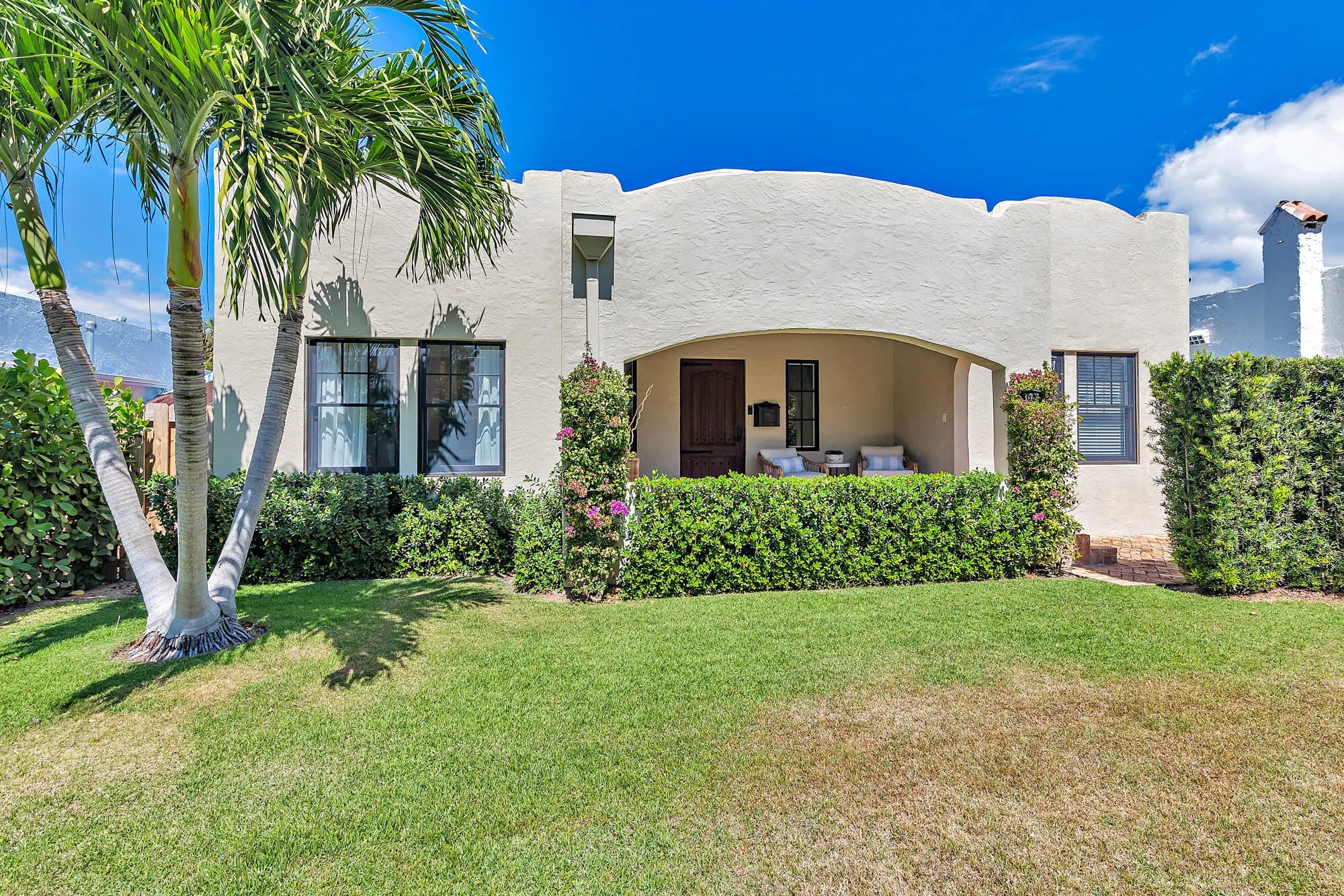 Located just south of Southern Blvd in the highly sought-after SoSo neighborhood, this historically designated property offers a beautifully renovated main residence along with a charming, detached guest cottage. The main home was completely renovated in 2016 and features a bright, open floor plan with 3 bedrooms and 2 bathrooms. Upgrades include all-new plumbing, electrical, and mechanical systems, engineered wide-plank oak flooring, and a stunning dual-sided wood-burning fireplace. The kitchen is thoughtfully designed with Carrara marble countertops, classic subway tile backsplash, and custom shaker-style cabinetry. Both bathrooms feature elegant marble vanities, adding a touch of luxury throughout. Outdoor spaces are equally impressive, with an Old Chicago brick driveway and walkways, a a fully integrated irrigation system, and a Sonos sound system for seamless indoor-outdoor living. A new roof was installed in 2021, and in 2022 a resort-style saltwater pool was added, complete with heater/chiller, spa jets, fountains, and ambient lighting—perfect for entertaining. The detached guest cottage offers 1 bedroom and 1 bathroom, featuring a wood-look tile living area and a Carrara marble bathroom—ideal for guests, a private office, or additional rental income. Rich in history, the home sits on land once part of Richard Hone's original pineapple plantation, later subdivided in the 1920s by Chicago developer and architect William Ohlhaber as part of the Belair tract—one of West Palm Beach's earliest subdivisions, designated historic in 1993. Currently operating as a successful short-term rental with strong financial performance, this property presents both a unique lifestyle opportunity and an excellent investment. Ideally located within walking distance to the Intracoastal Waterway and close to top dining, Antique Row, Palm Beach, CityPlace, and PBI Airport.