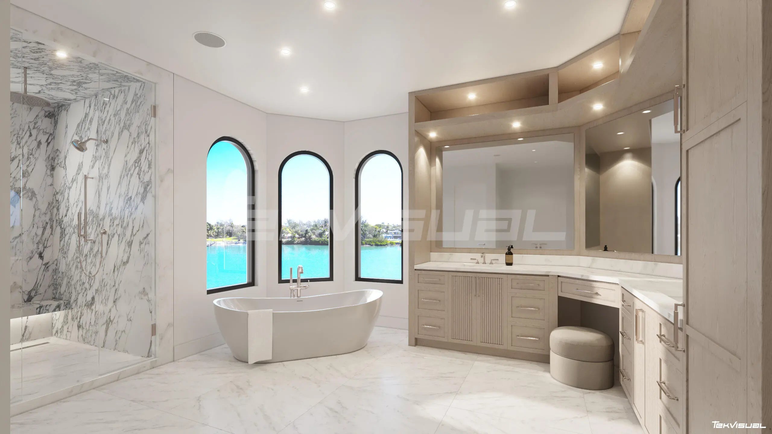 Set along a coveted stretch of blue-water frontage on the Intracoastal Waterway in Tequesta, Florida, in a tranquil no-wake zone with no fixed bridges, this fully reimagined estate presents a rare blend of scale, sophistication, and seamless ocean access. Encompassing 7,046 square feet under air (8,606 total) and currently under construction with completion anticipated in October 2026, the residence offers a unique opportunity to secure early and allowing a discerning buyer to thoughtfully curate and personalize select finishes, creating a truly bespoke waterfront masterpiece. Privately tucked within a private gated community, the home is ideally positioned at the end of a quiet cul-de-sac and elevated approximately 15 feet above the Intracoastal, delivering both commanding presence and peace of mind. Inside, luminous, design-forward interiors showcase soaring 11.5-foot ceilings on the main level, 9.5-foot ceilings above, and a striking 24-foot great room, all complemented by wide-plank wood flooring, marble accents, custom cabinetry, premium countertops, and bespoke closets throughout. A chef's kitchen appointed with Wolf and Sub-Zero appliances flows effortlessly into expansive living spaces designed for refined entertaining. Five generously proportioned bedrooms, five full baths, and two half baths include dual primary suites on both levels, each capturing sweeping water views, alongside a private office, elevator, and dual laundry rooms. Outdoors, a resort-inspired setting unfolds with a pool, summer kitchen, extensive hardscape, new driveway, and professionally curated landscaping, while a private dock with a lift ensures direct ocean access for the avid boater. A three-car garage completes this exceptional waterfront sanctuary.