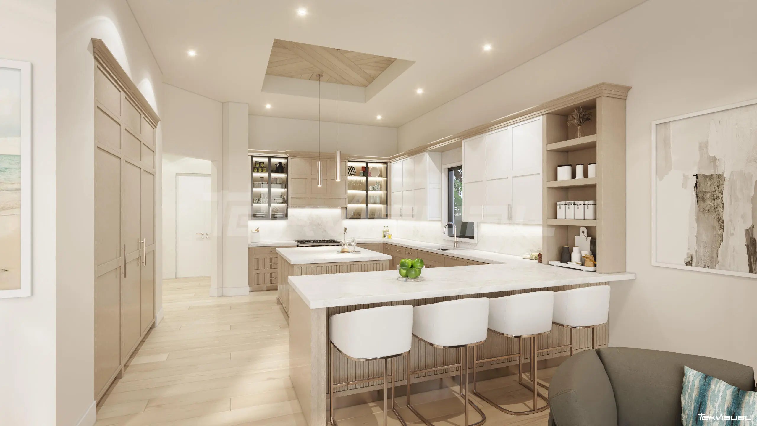 Bar, Entrance Foyer, Elevator, High Ceilings, Kitchen Island, Pantry, Vaulted Ceiling(s), Wet Bar, Walk-In Closet(s), Bedroom Layout - Split, Closet Cabinetry, Custom Mirrors, Dome Kitchen, Roman Tub, Upstairs Living Area, Cabana Bath, Storage